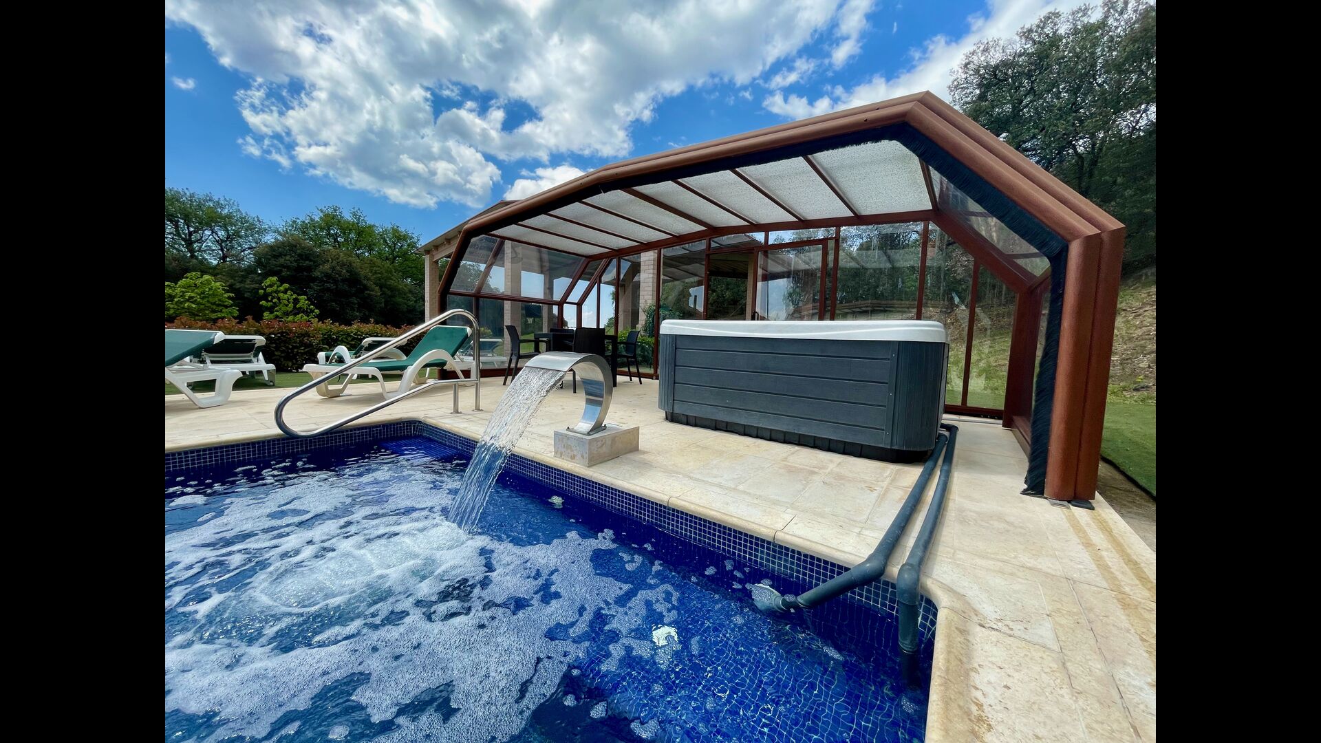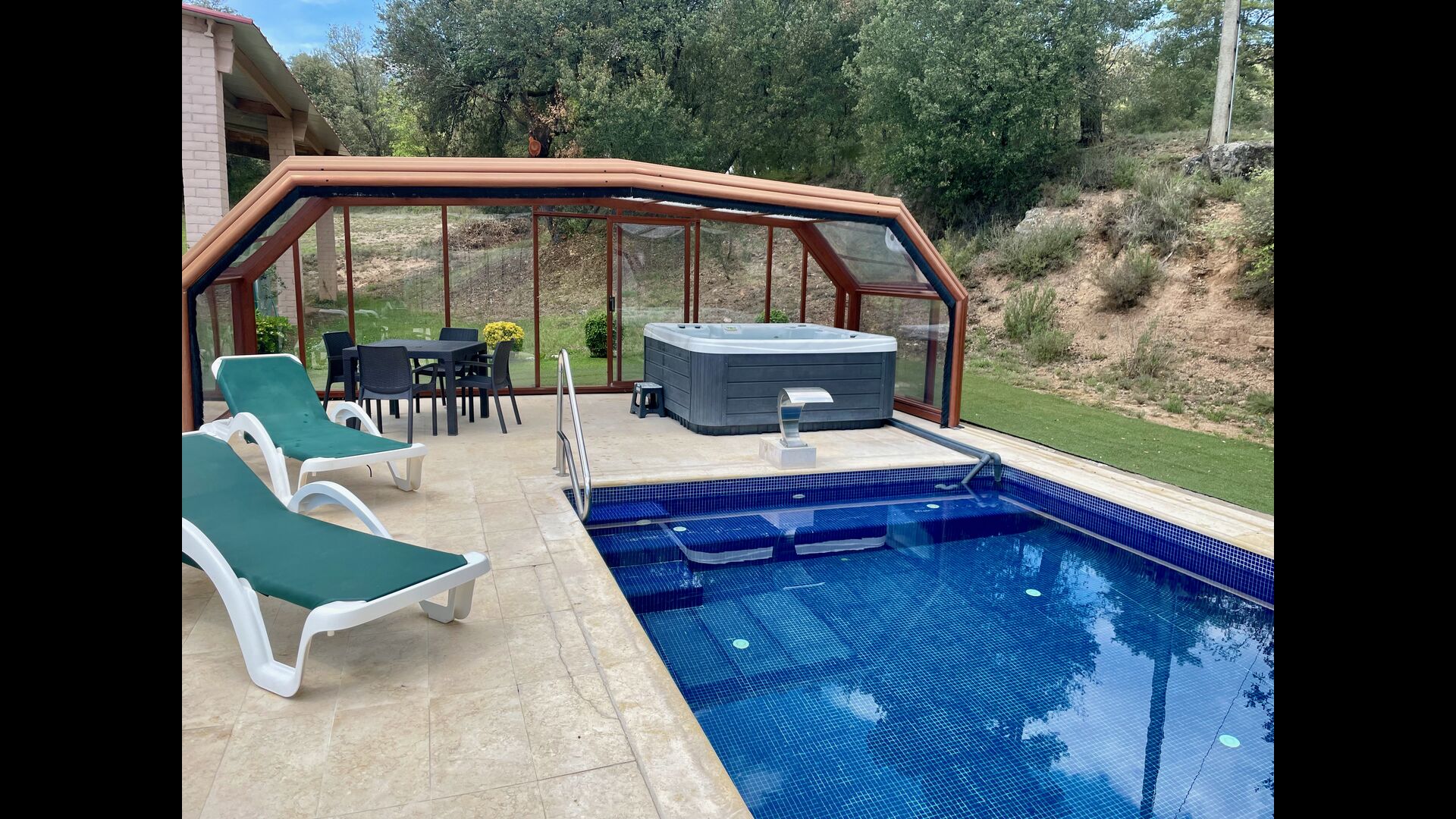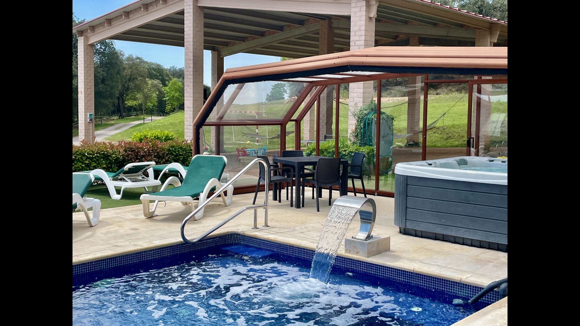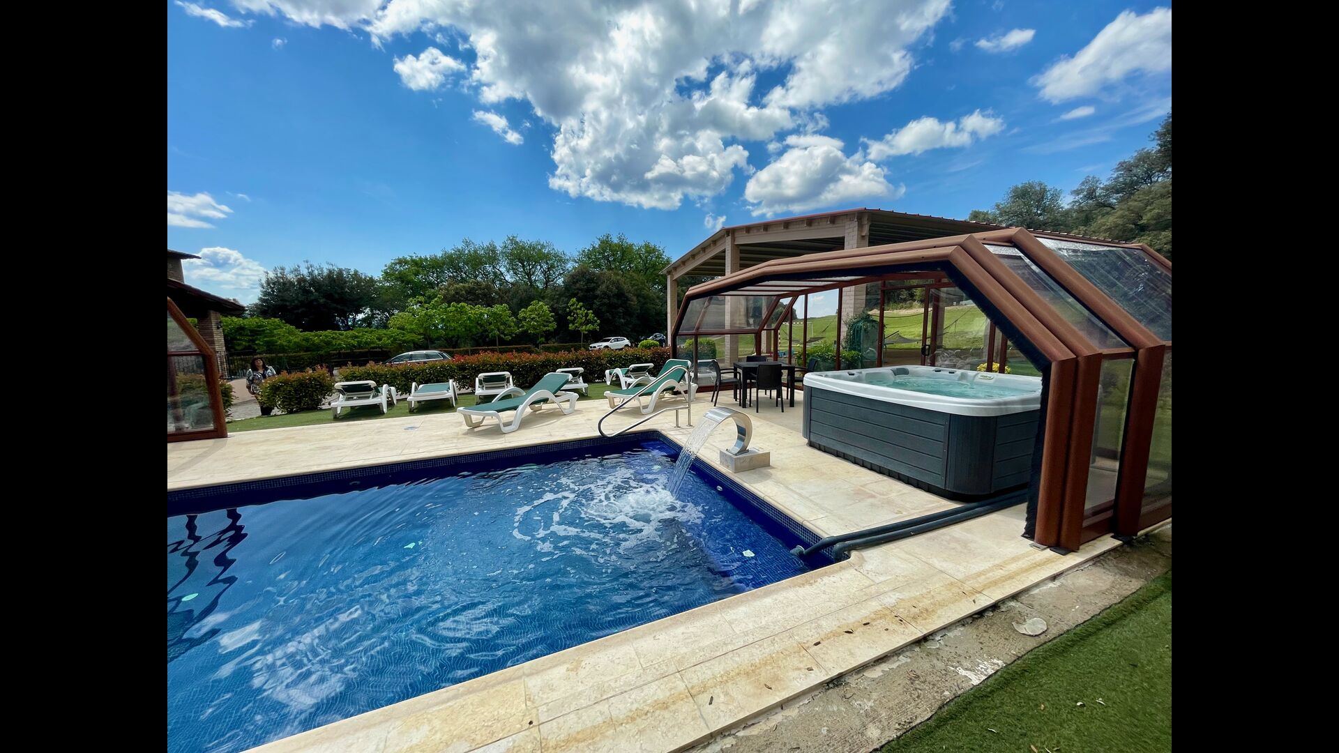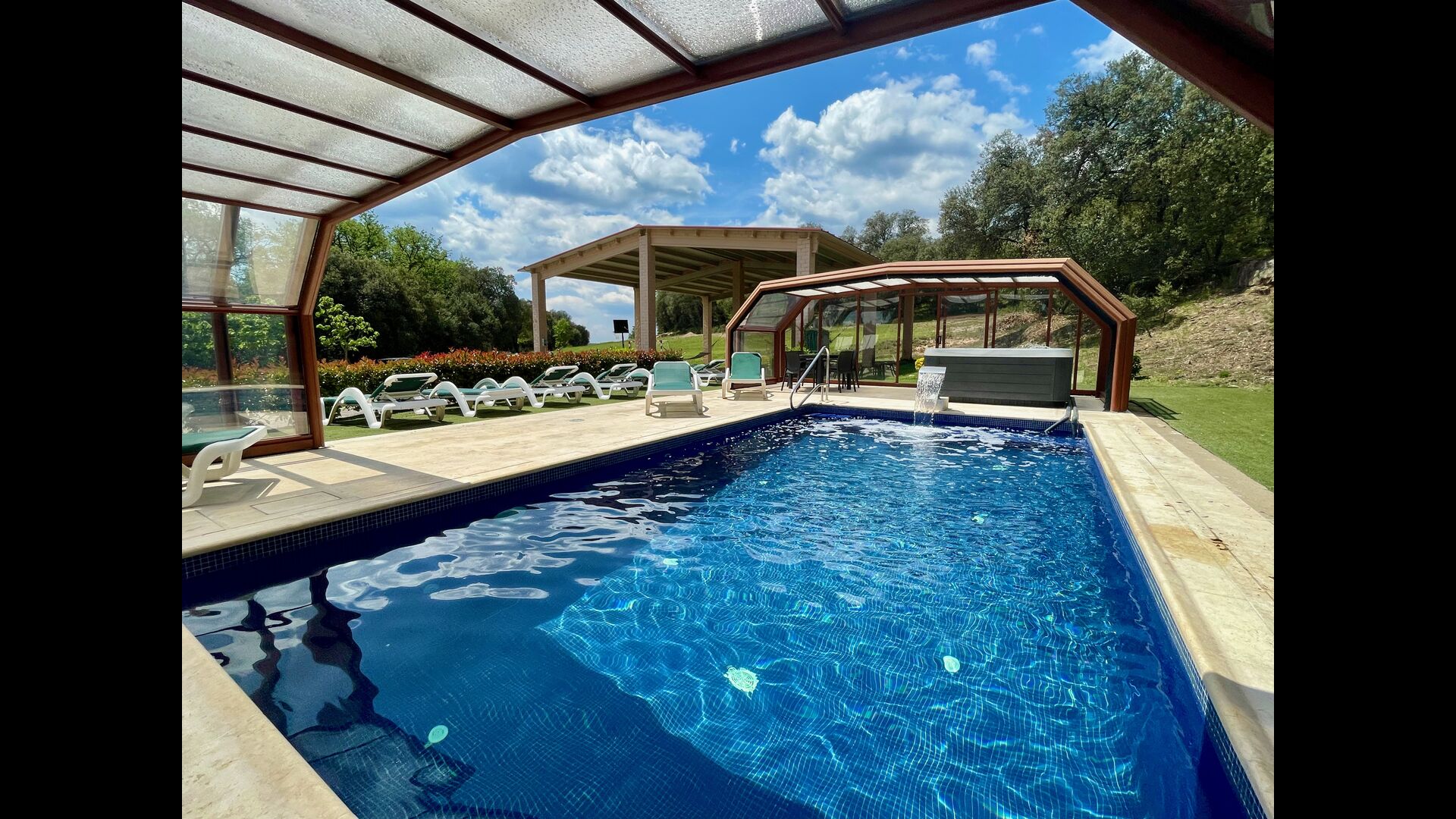 • Belle piscine chauffée avec jacuzzi qui peut être tout découvert pendant l’été