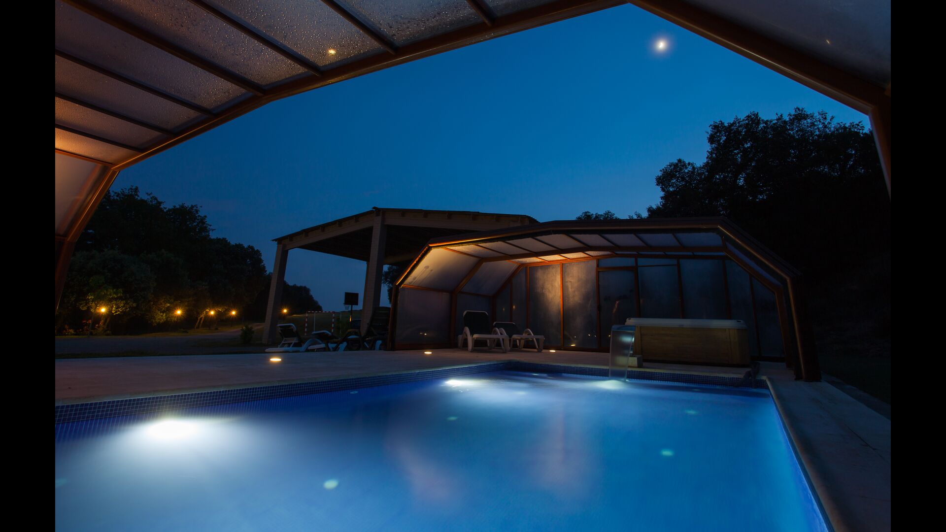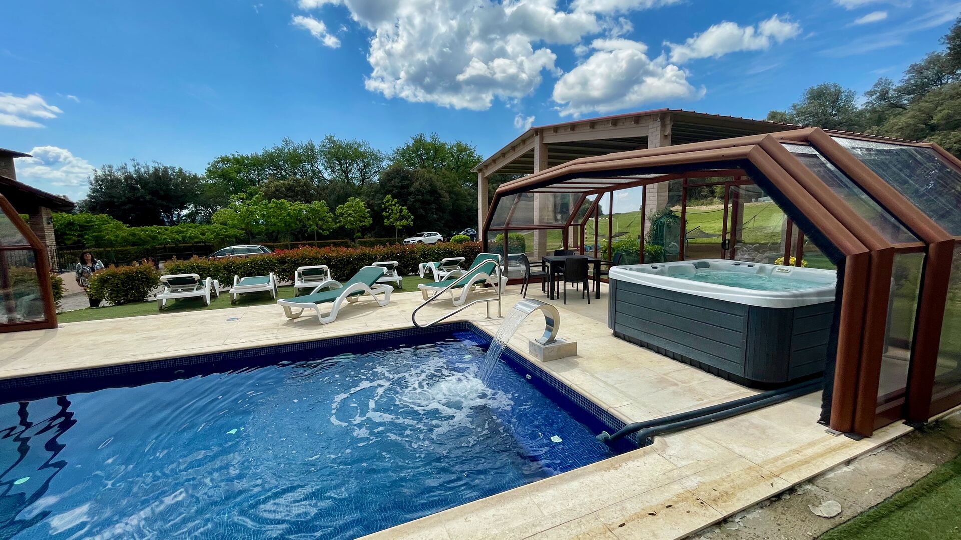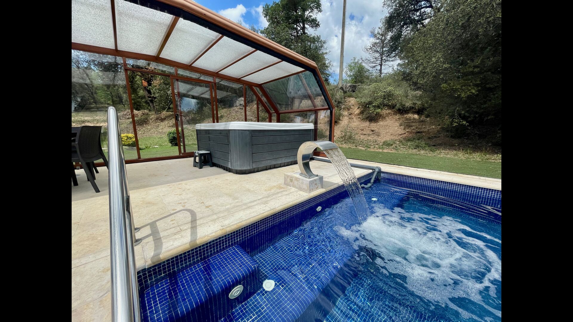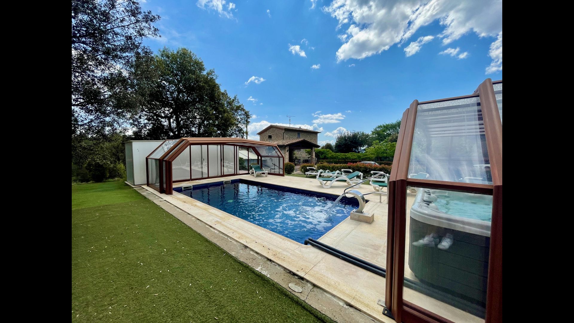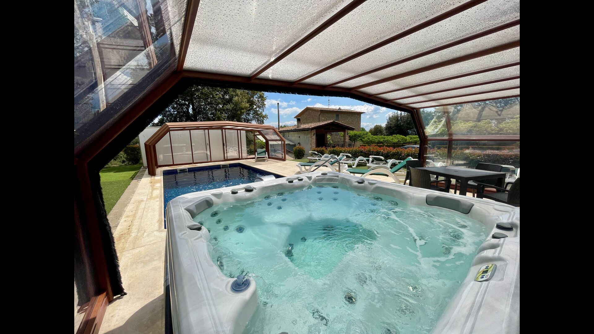 • Belle piscine chauffée avec jacuzzi qui peut être tout découvert pendant l’été