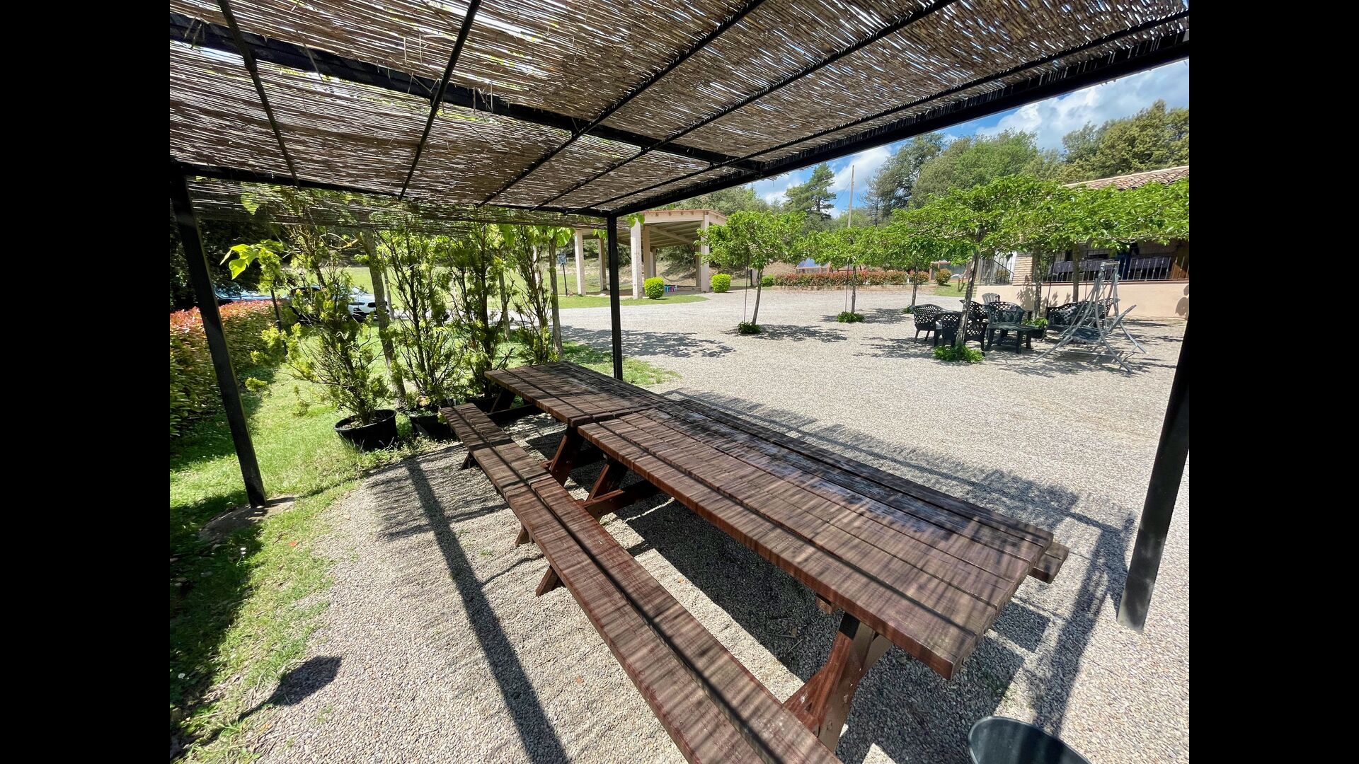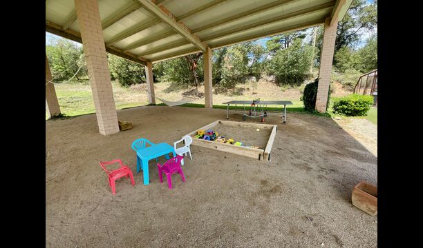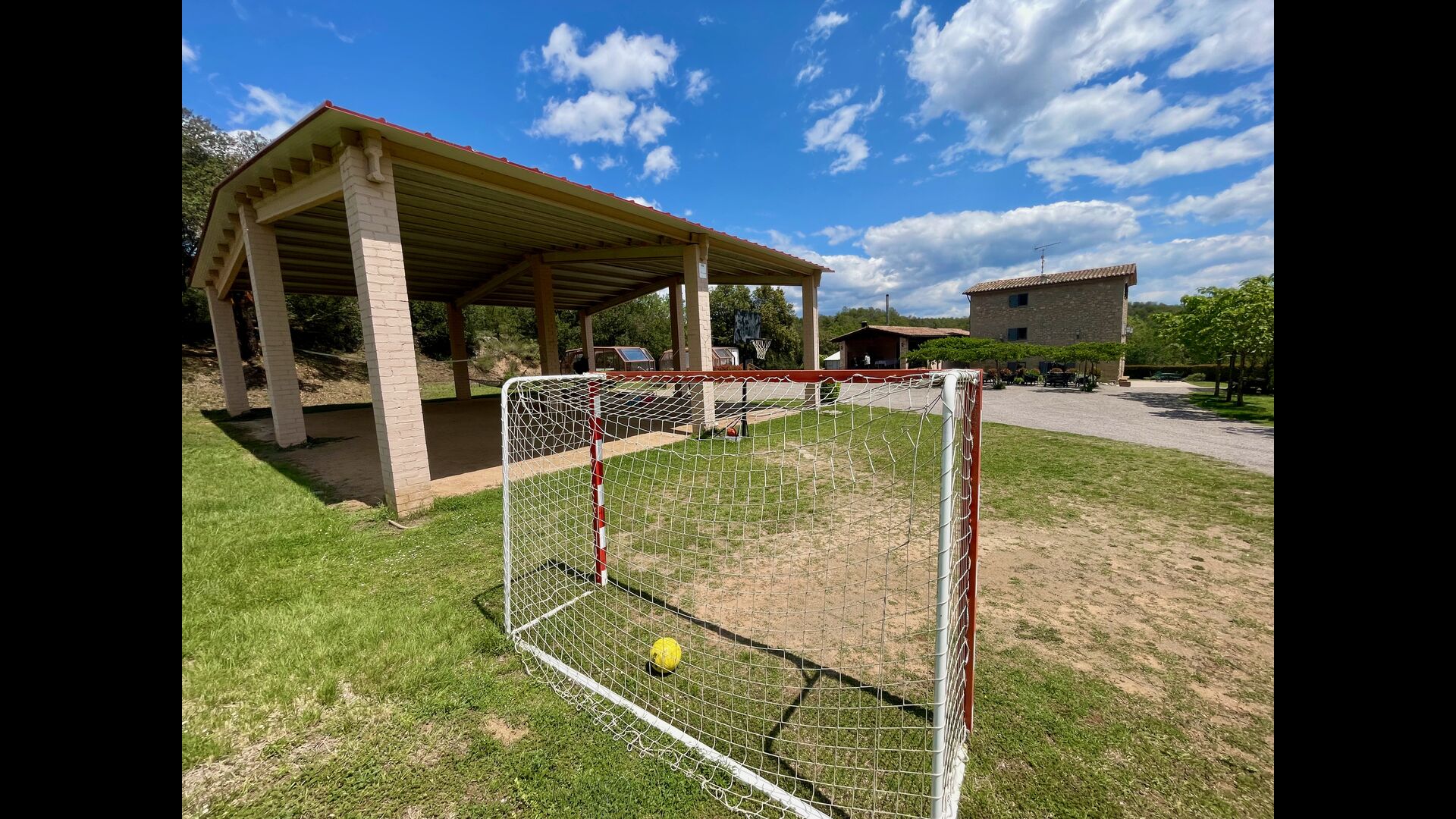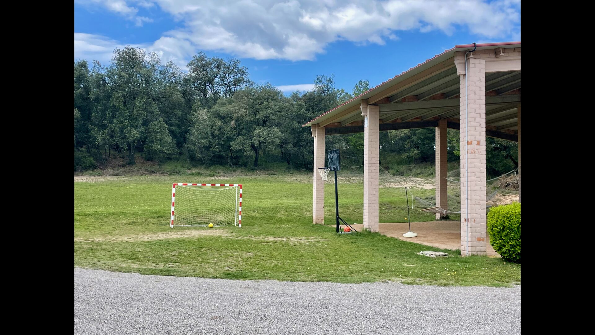 En plus de cette terrasse, il y a un autre patio et des hamacs à l'arrière de la maison où vous pouvez vraiment profiter de la vue. Le jardin a également un terrain de basket couvert. Le pool house est un véritable espace de détente où vous pourrez vous détendre dans le jacuzzi et les enfants adoreront la grande fontaine dans la piscine, qui crée une petite "cascade" dans la piscine. Pour votre confort, il y a maintenant des douches et des toilettes à côté de la piscine.