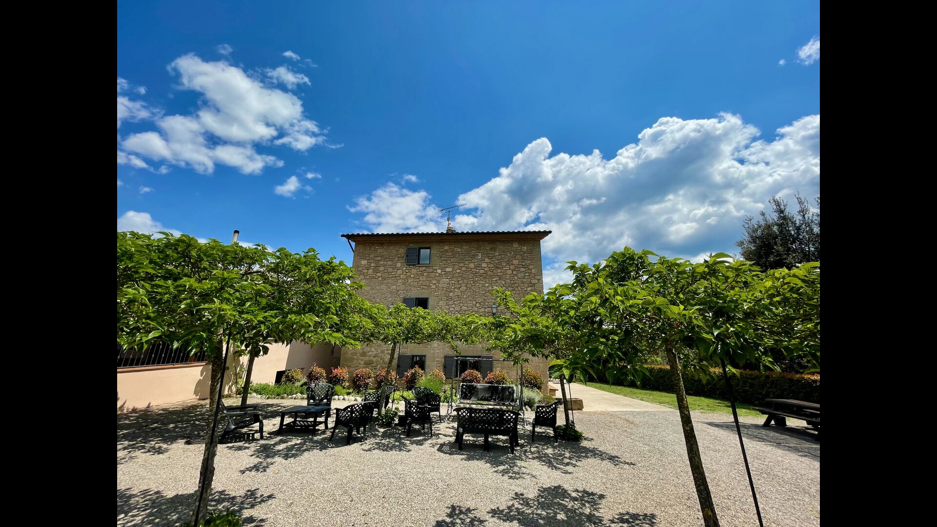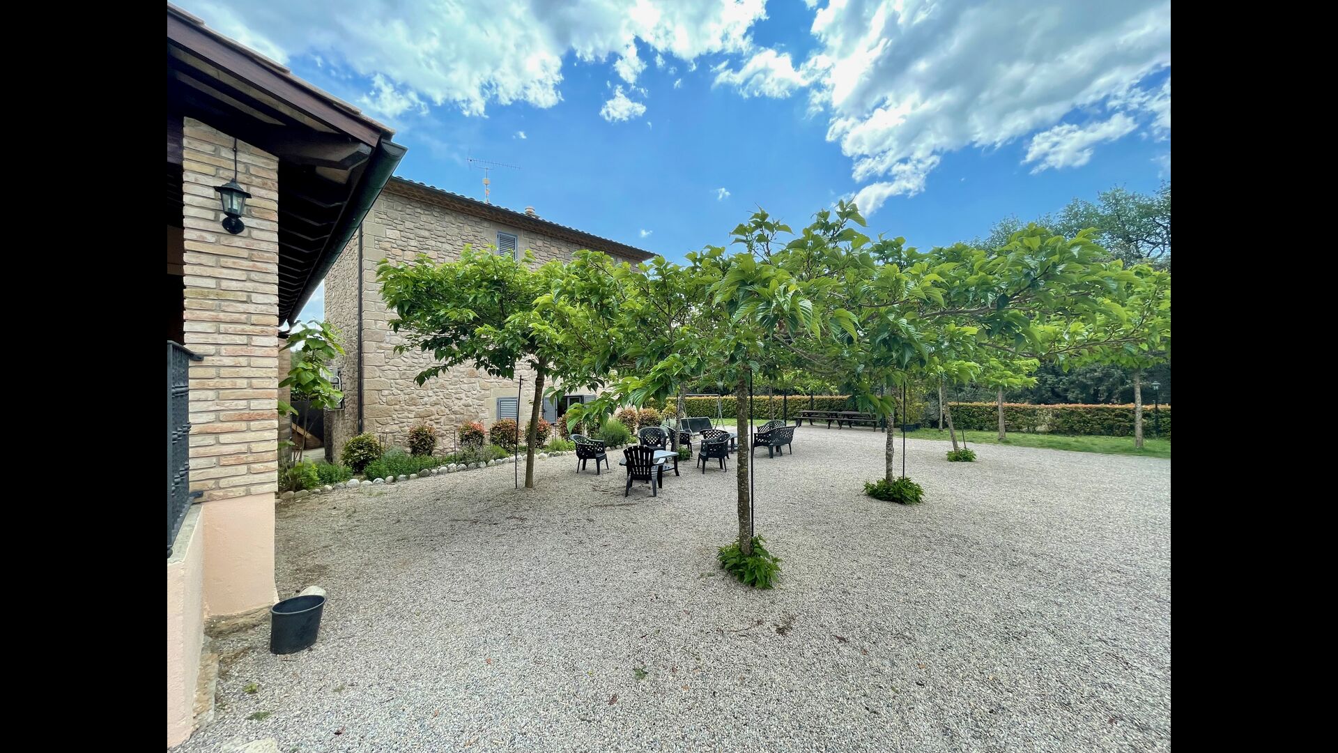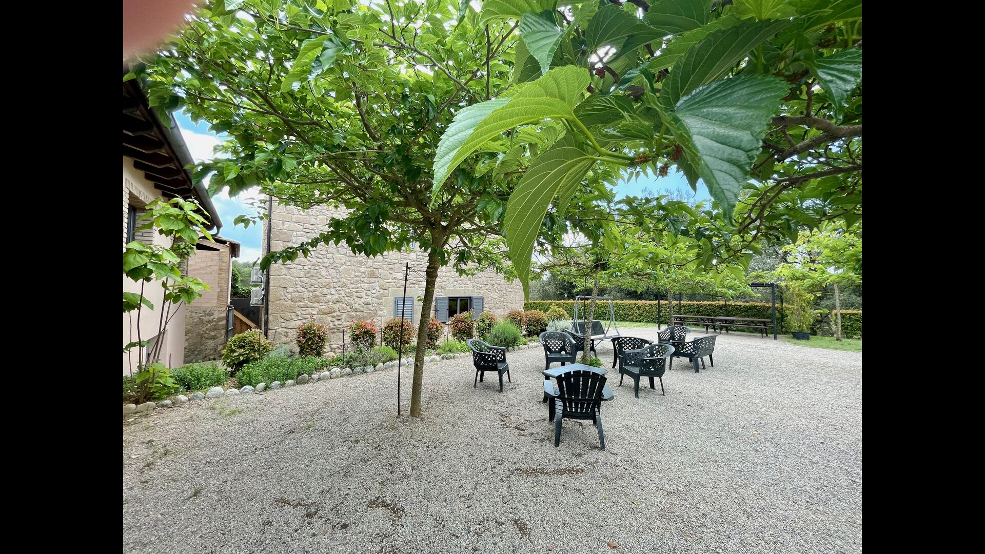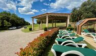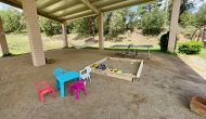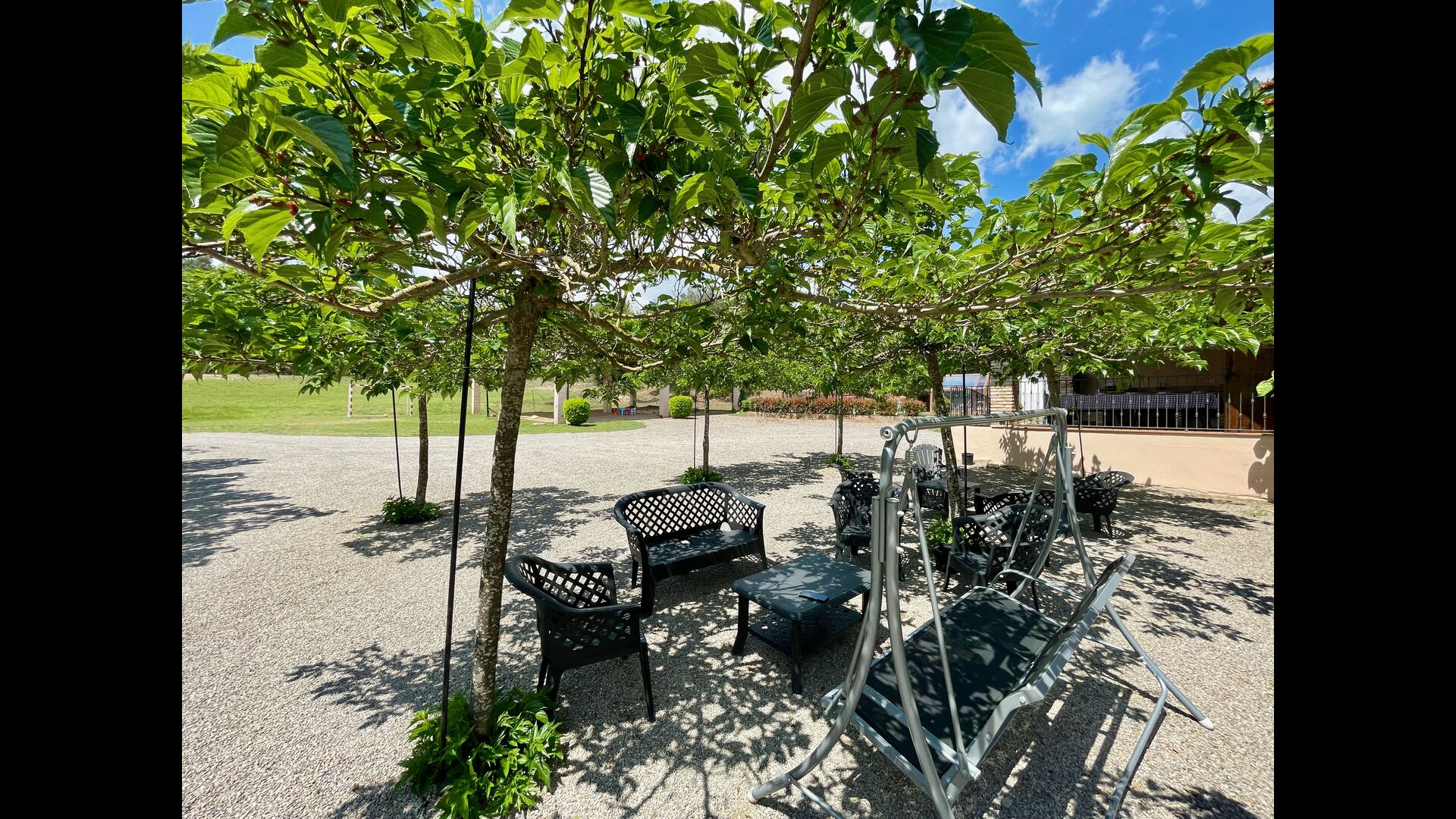 En plus de cette terrasse, il y a un autre patio et des hamacs à l'arrière de la maison où vous pouvez vraiment profiter de la vue. Le jardin a également un terrain de basket couvert. Le pool house est un véritable espace de détente où vous pourrez vous détendre dans le jacuzzi et les enfants adoreront la grande fontaine dans la piscine, qui crée une petite "cascade" dans la piscine. Pour votre confort, il y a maintenant des douches et des toilettes à côté de la piscine.