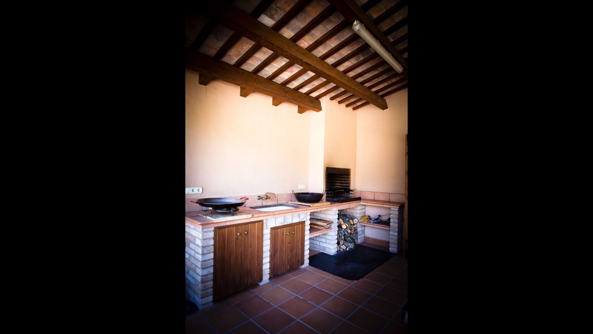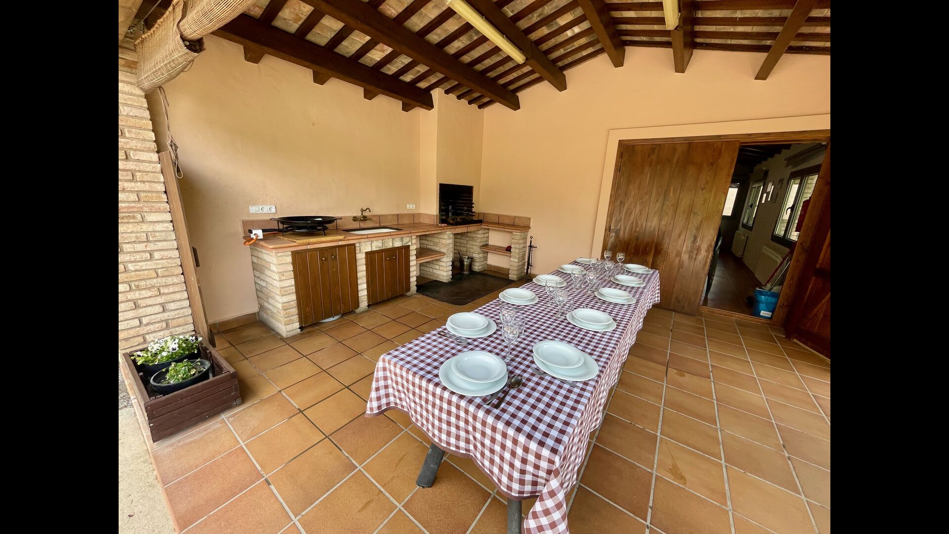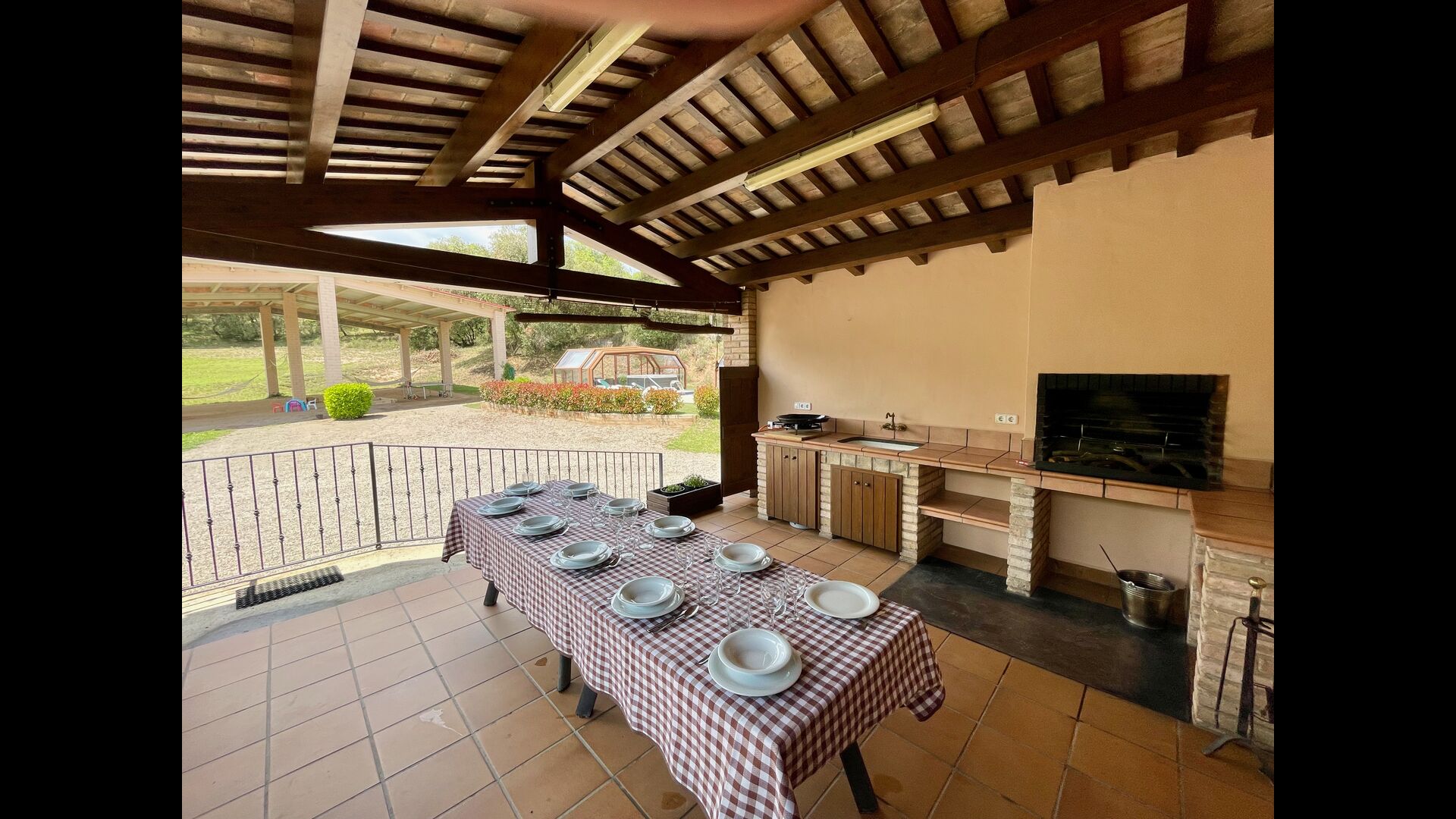 • terrasse couverte avec barbecue et cuisine extérieure