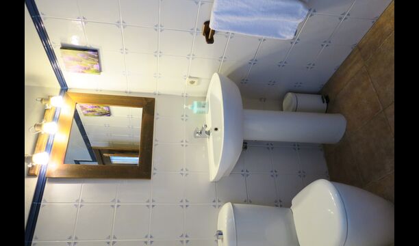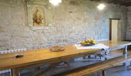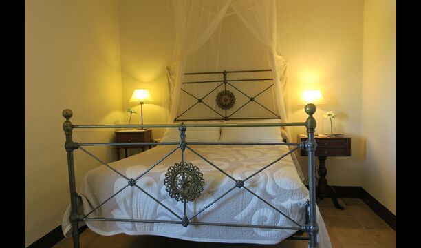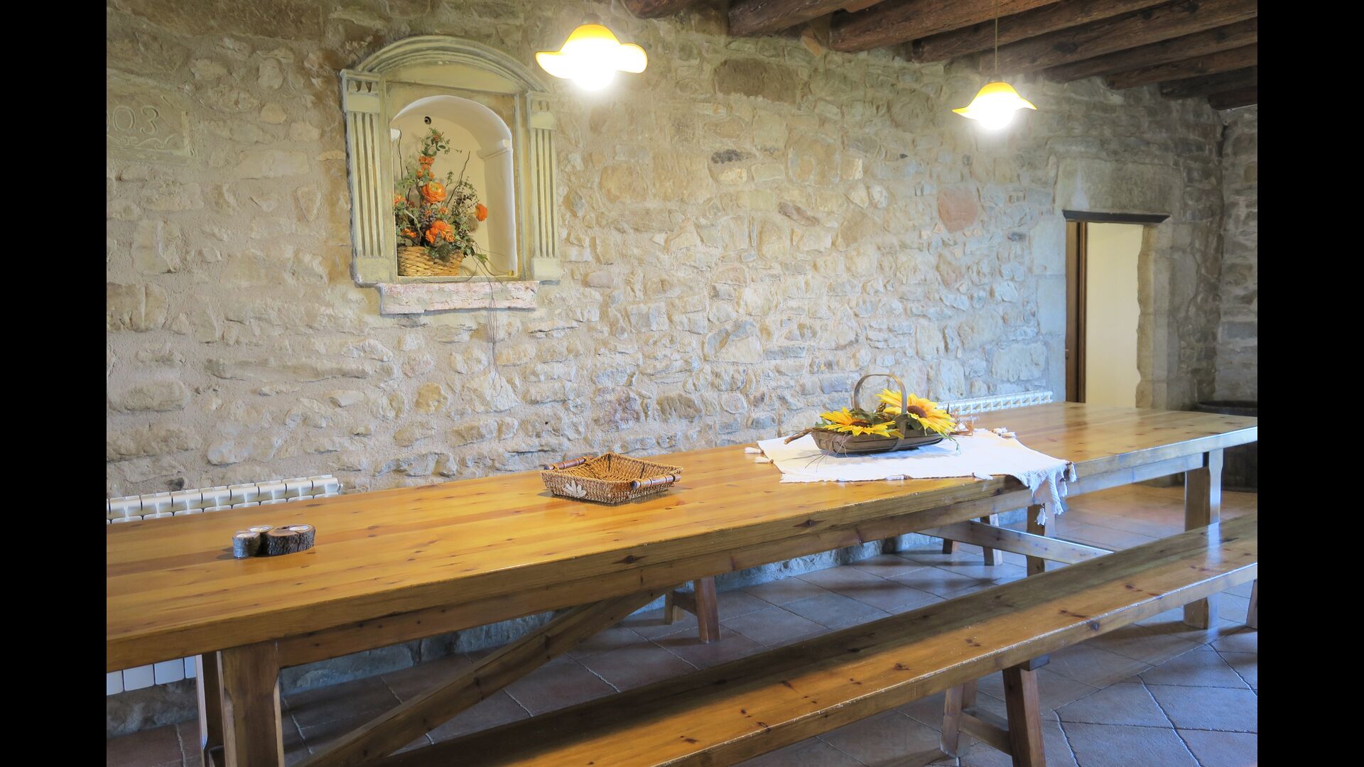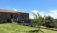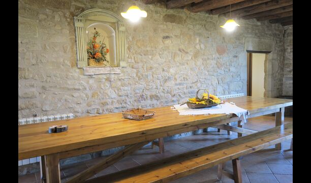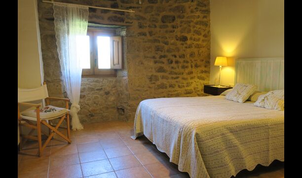 L'entrée de la maison est à quelques pas, où il y a une terrasse plus petite. La maison a un grand salon avec une longue table et une cuisine entièrement équipée. Il y a 4 chambres doubles avec lits doubles et une chambre avec 3 lits simples. Deux lits supplémentaires sont disponibles pour accueillir jusqu'à 13 personnes dans la maison. Il y a 2 salles de bains communes. Au rez-de-chaussée, vous trouverez un coin canapé avec une télévision à écran plat et une vue sur la campagne.