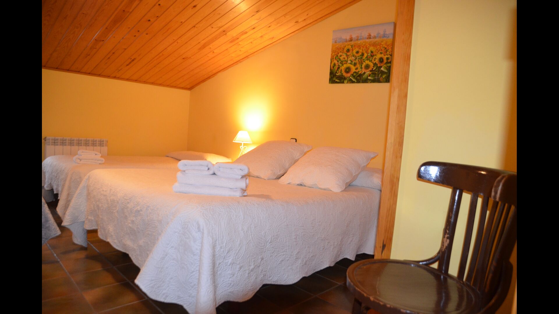 Au deuxième étage, il y a 8 chambres doubles plus petites, 2 d’entre elles avec salle de bain et le reste se partageant avec 2 salles de bain supplémentaires.