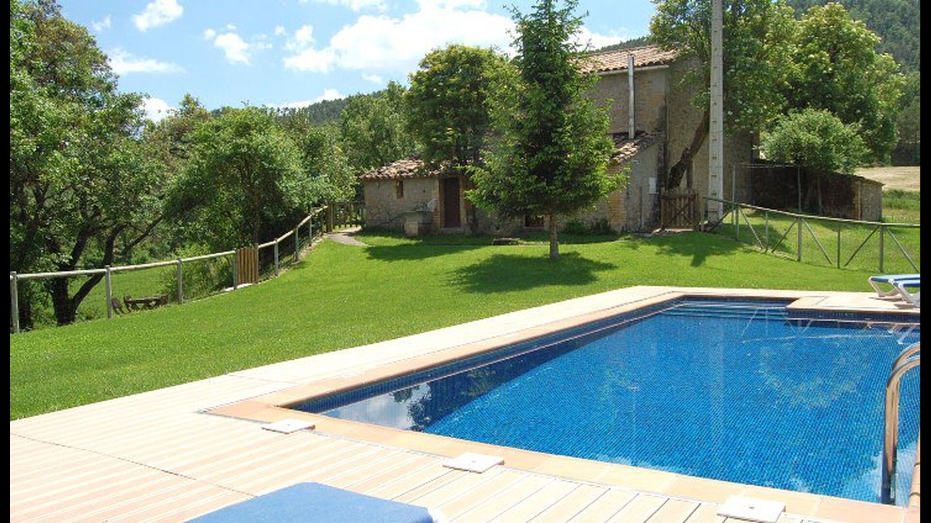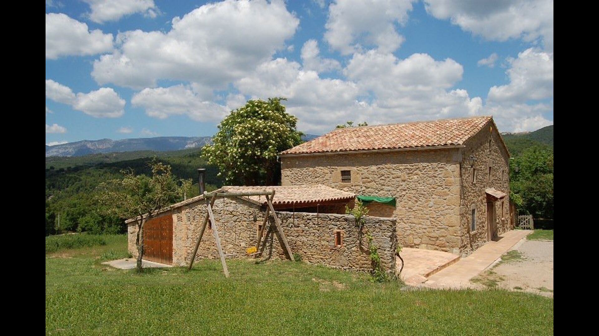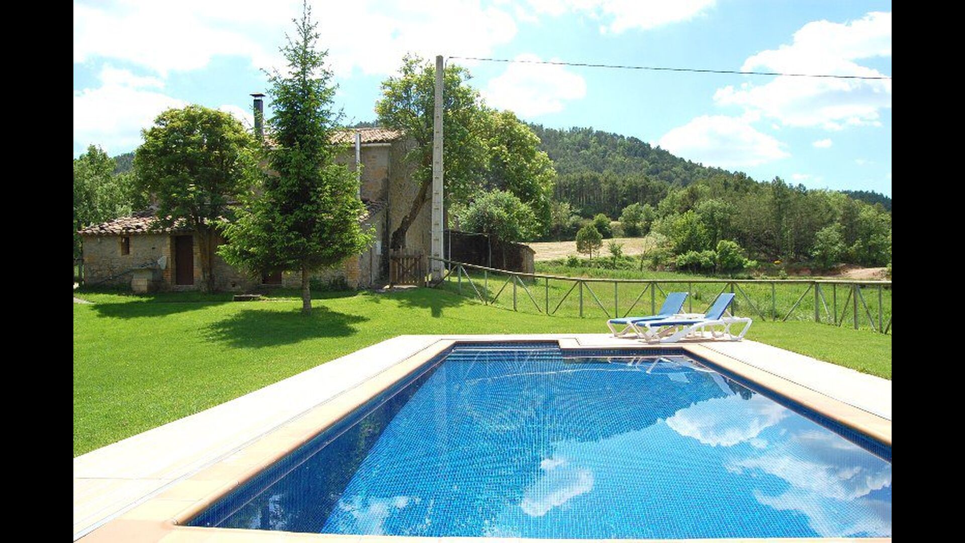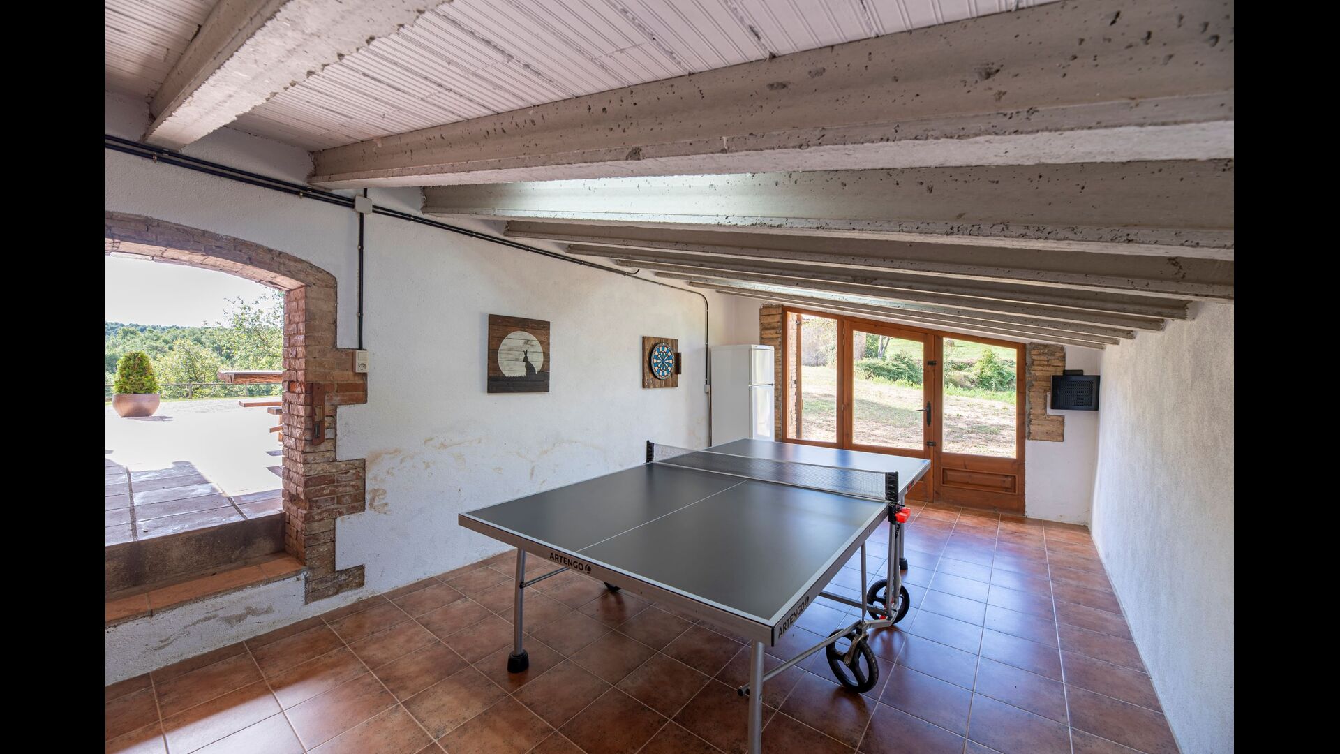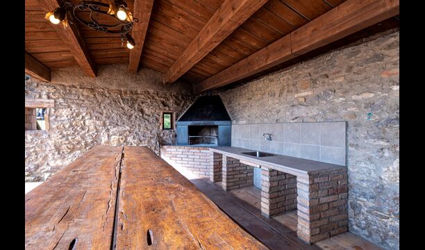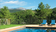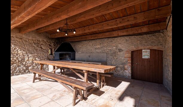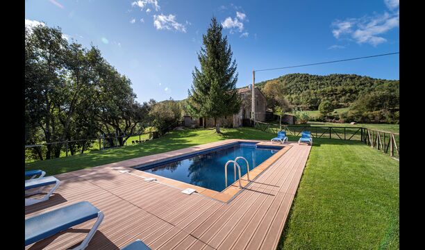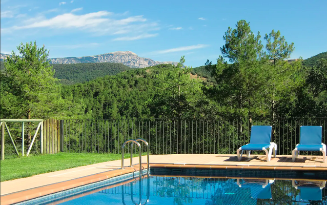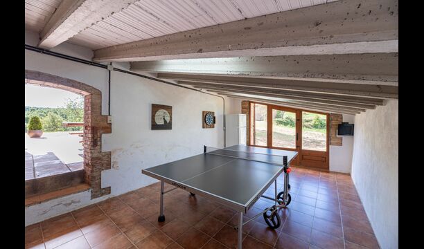 Dehors, il y a des balançoires, une salle d'activités avec tennis de table et des jouets pour les plus petits. La maison dispose d'une terrasse couverte où vous pourrez prendre vos repas et peut-être un verre de vin lors des chaudes soirées catalanes. Au-dessous de la maison, la piscine avec pelouse, chaises longues et la piscine adaptée aux enfants constitue le point de départ idéal pour se détendre en journée. La vue sur la forêt et les montagnes est excellente.