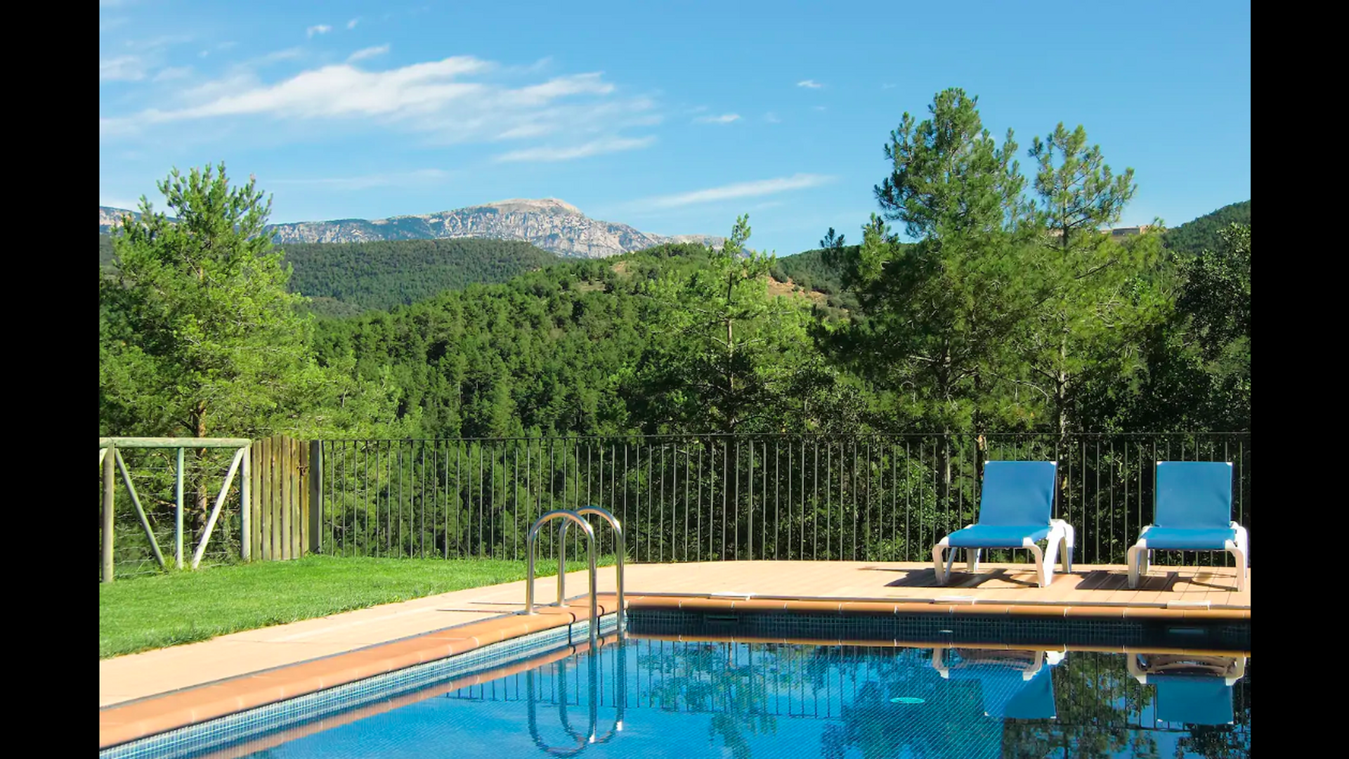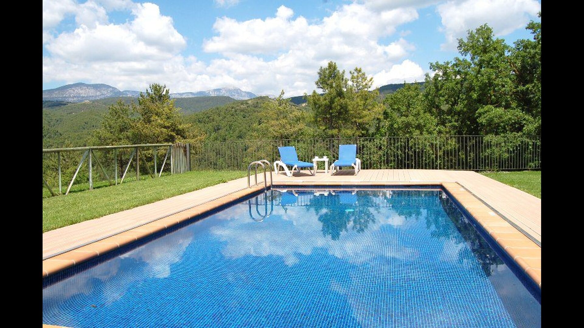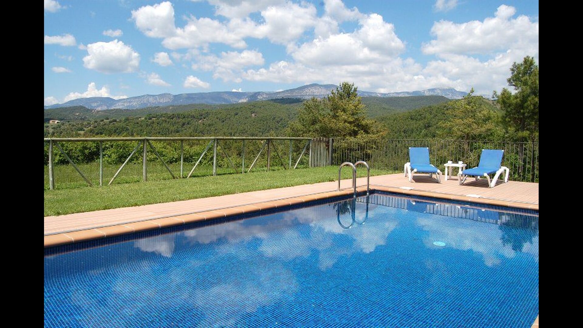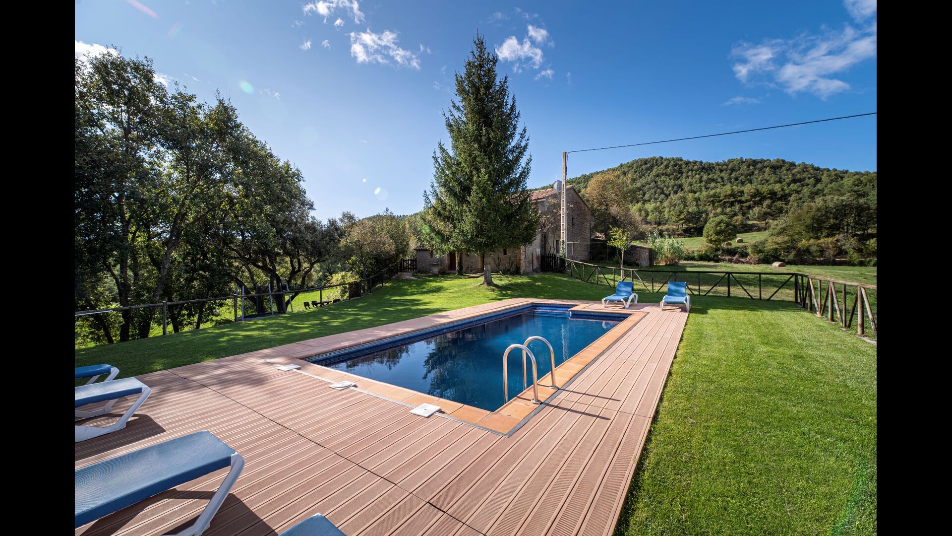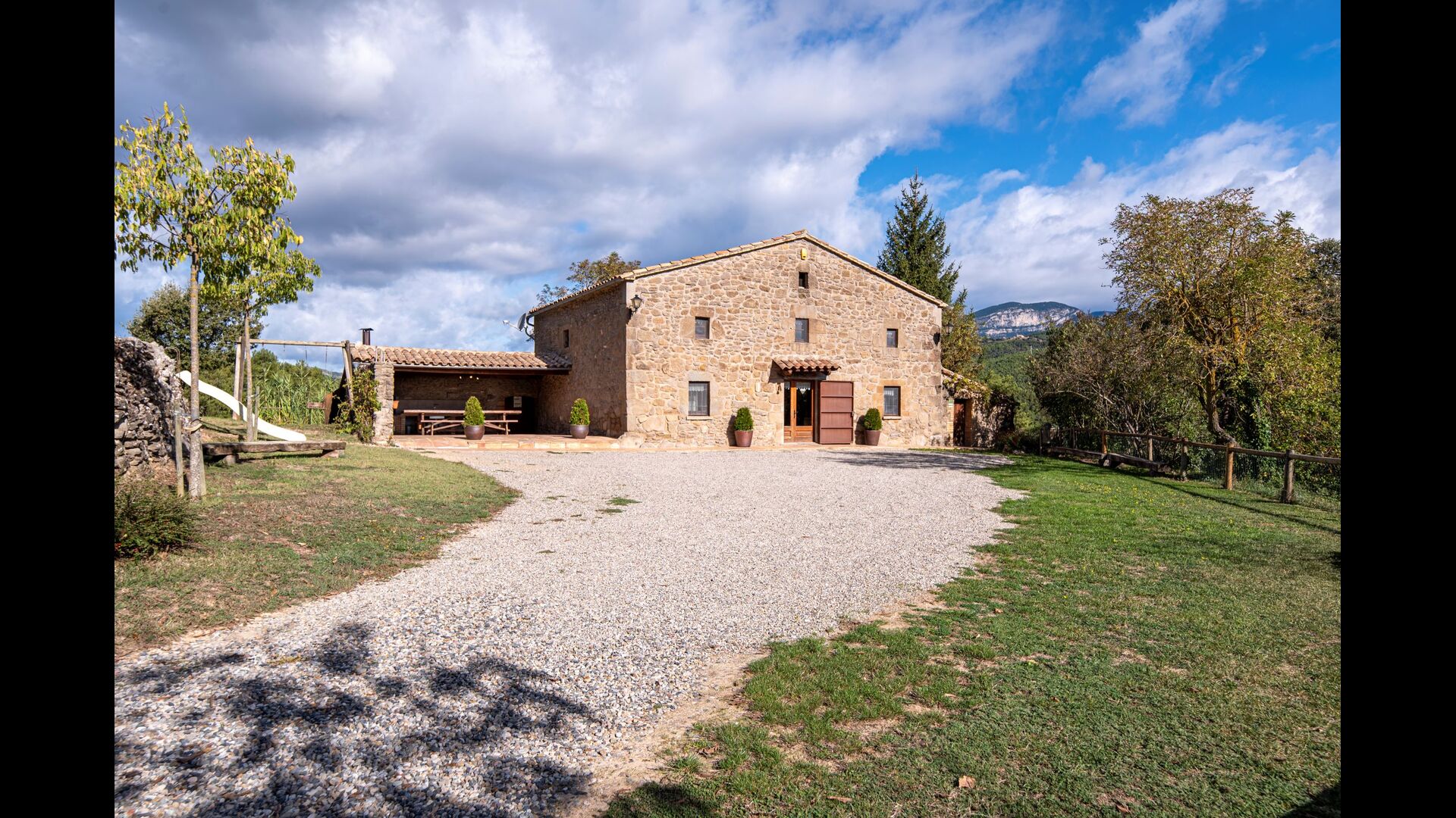 Dehors, il y a des balançoires, une salle d'activités avec tennis de table et des jouets pour les plus petits. La maison dispose d'une terrasse couverte où vous pourrez prendre vos repas et peut-être un verre de vin lors des chaudes soirées catalanes. Au-dessous de la maison, la piscine avec pelouse, chaises longues et la piscine adaptée aux enfants constitue le point de départ idéal pour se détendre en journée. La vue sur la forêt et les montagnes est excellente.