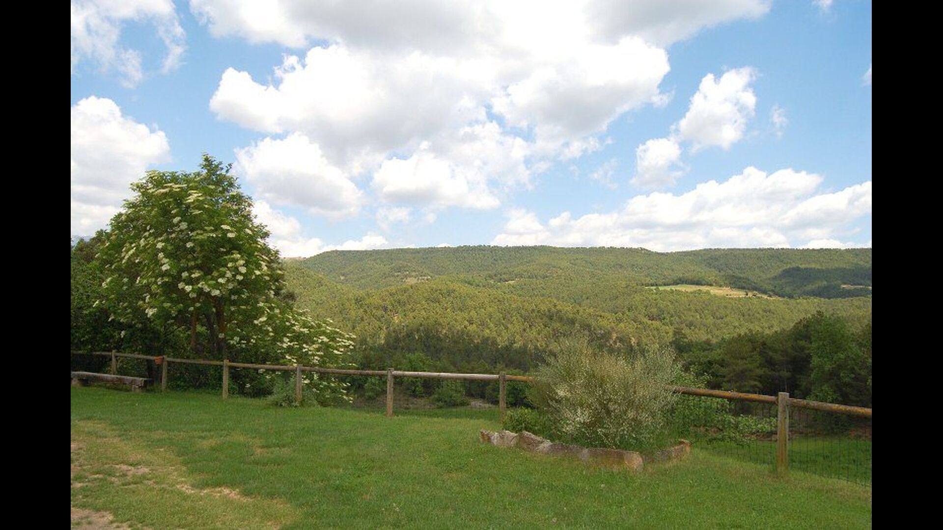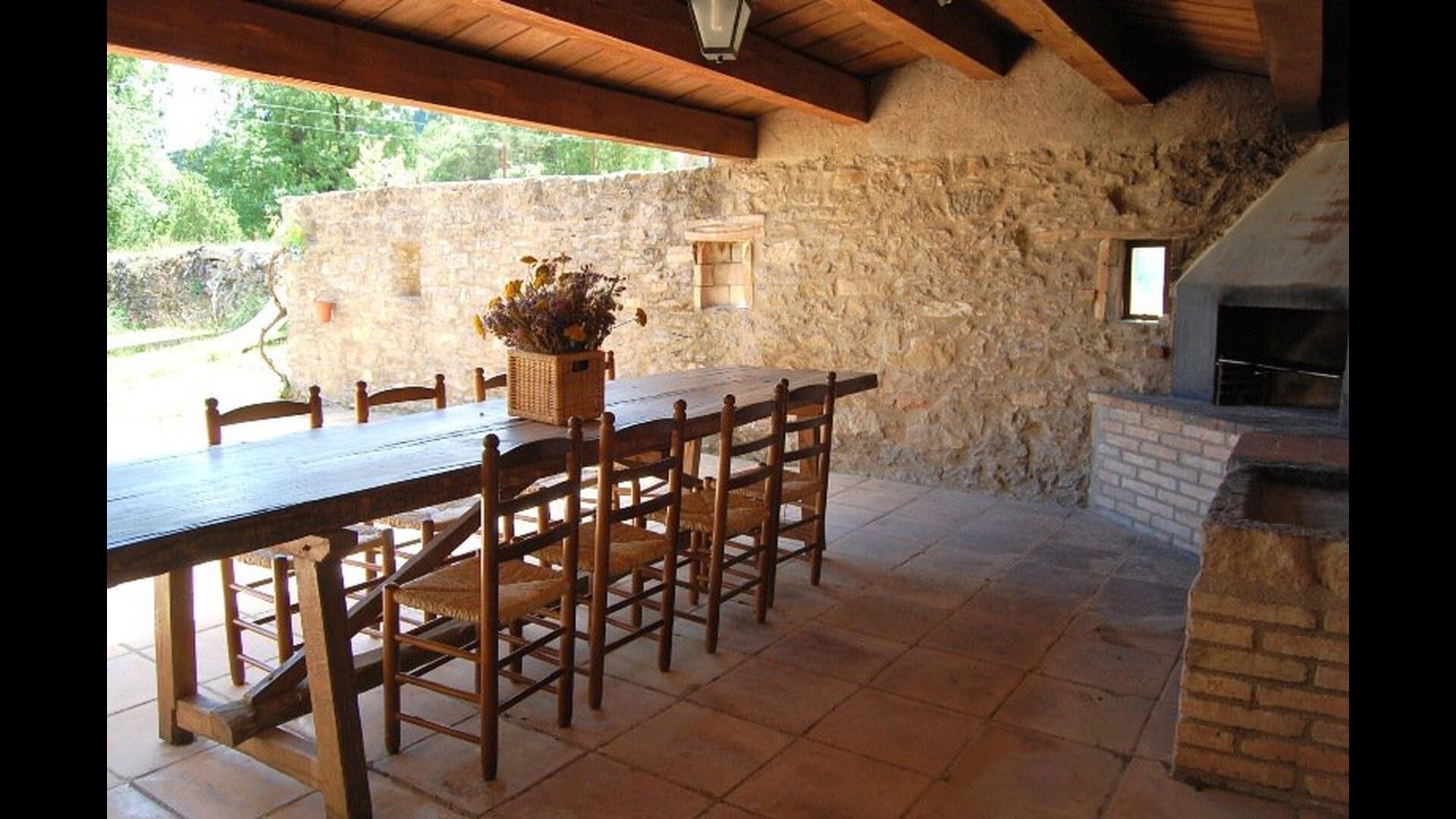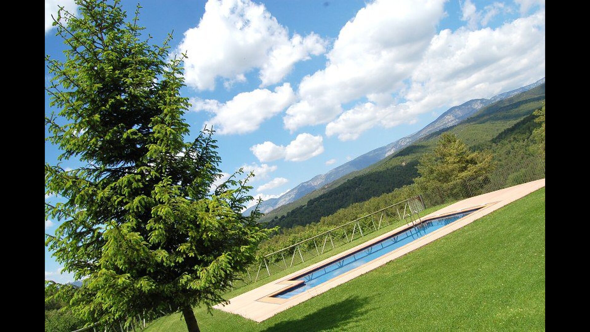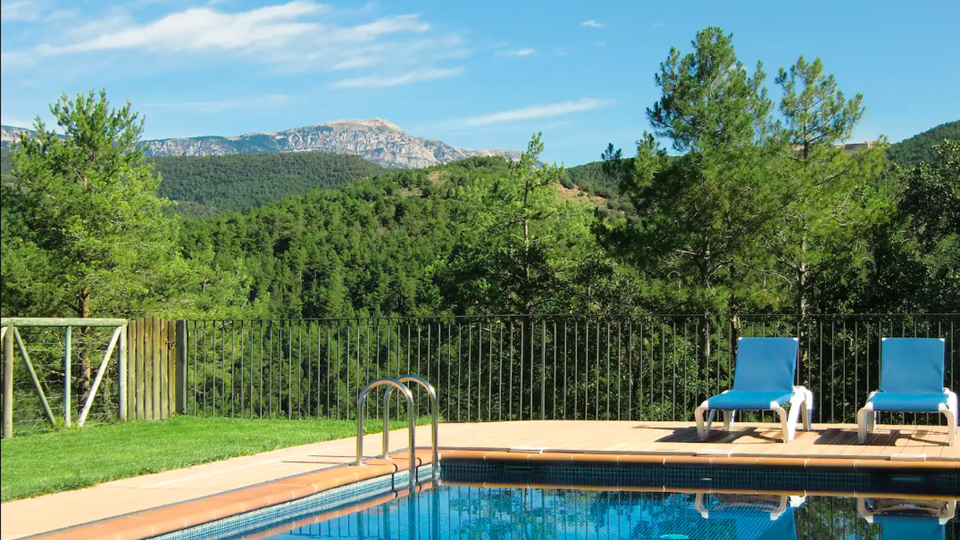 Dehors, il y a des balançoires, une salle d'activités avec tennis de table et des jouets pour les plus petits. La maison dispose d'une terrasse couverte où vous pourrez prendre vos repas et peut-être un verre de vin lors des chaudes soirées catalanes. Au-dessous de la maison, la piscine avec pelouse, chaises longues et la piscine adaptée aux enfants constitue le point de départ idéal pour se détendre en journée. La vue sur la forêt et les montagnes est excellente.