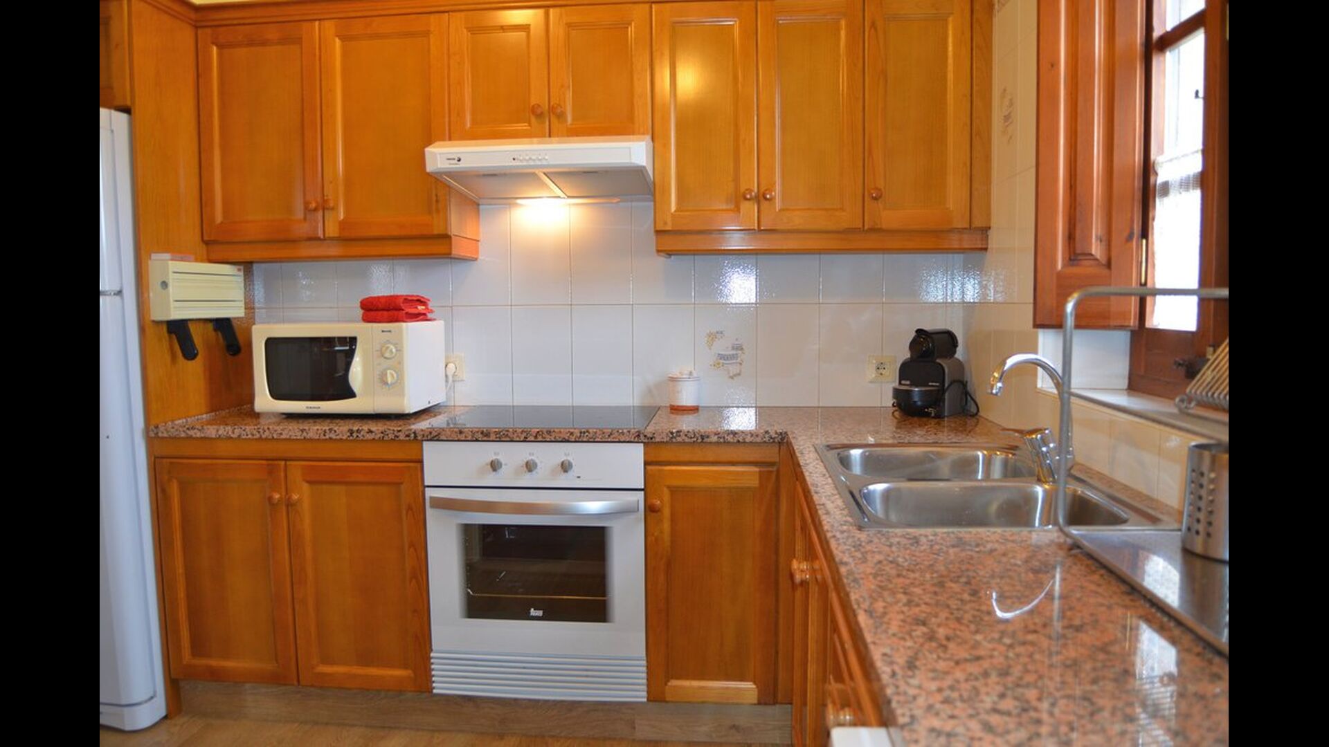 - KITCHEN: vitroceramic hob, oven, microwave, dishwasher, washing machine, coffee machine (12 services), all the necessary cooking utensils and also for laying the table(dishes, glasses, cutlery, etc). Cupboard with cleaning utensils (broom, mop, bucket, etc). Iron and ironing board.