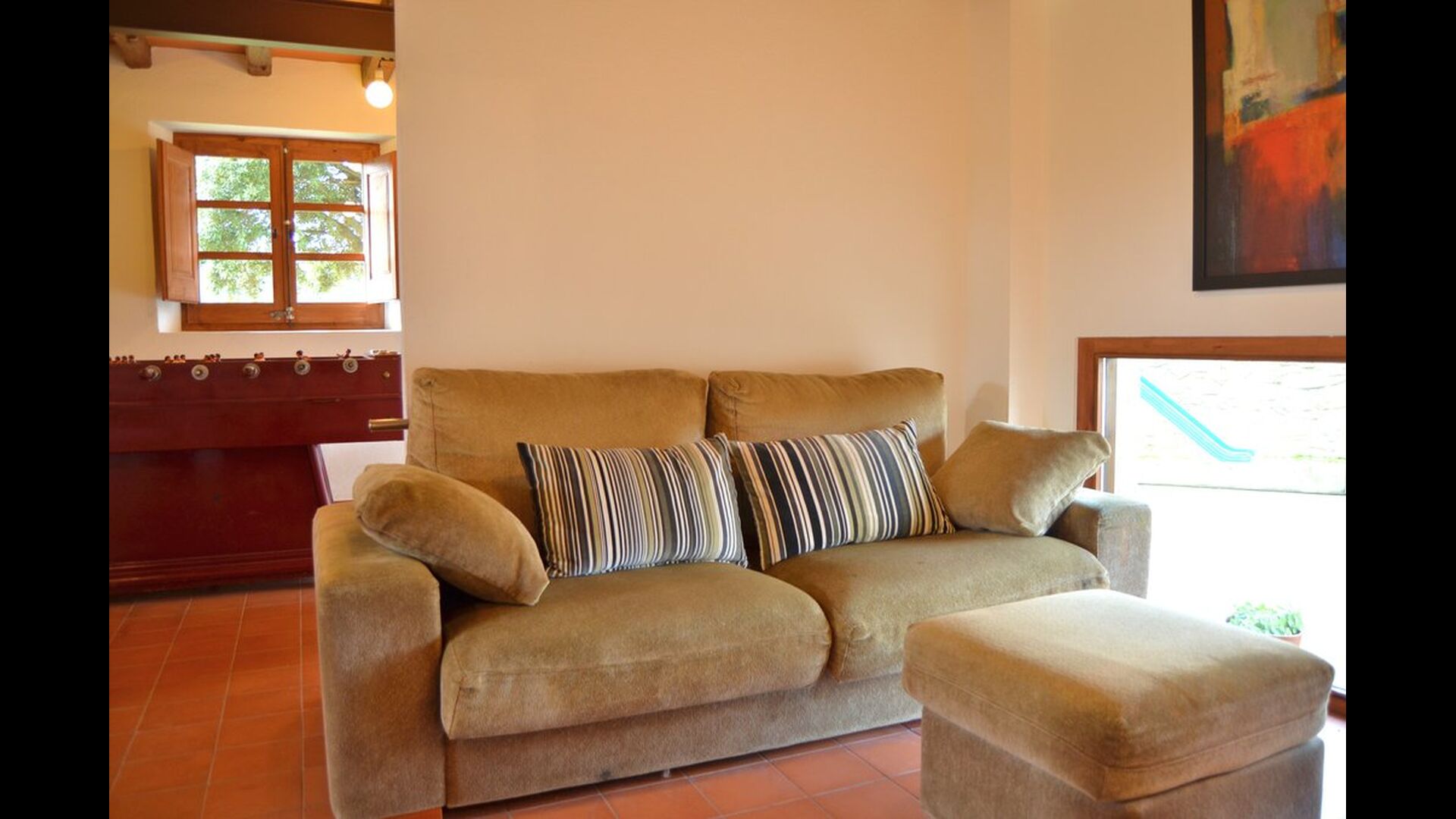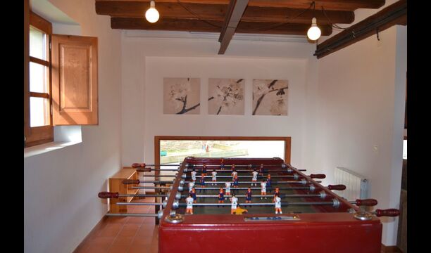 The ground floor has a game room with a table football, and corner with children furniture and games for children and a lounge area with TV and DVD. There is also a bathroom with shower, which can also be used to change for the pool.
