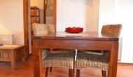 On the first floor you find a lovely dining/living room with a long traditional dining table and a cozy sofa corner with two sofas.