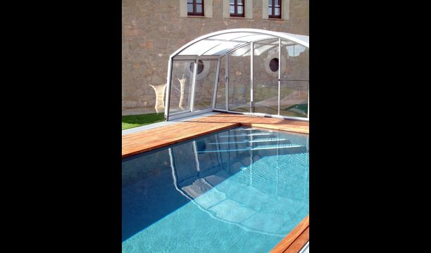 The garden is equipped with a small playground for the youngest, also with sandpit and the big attraction is of course the swimming pool, which is functional all-year round, as it is covered and heated in the off season. In the summer it is open. With direct access from the house, the outdoor terrace gives you the perfect place to relax and eat out. There is also a BBQ installed.