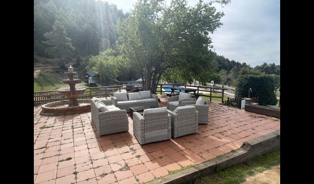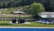 L'immense propriété est située sur une pente, donc Jordi et Constanca ont accès à leur terrasse et jardin derrière la maison, tandis que les trois maisons de vacances font face au jardin avec toutes les installations vues dans le photos.