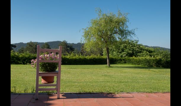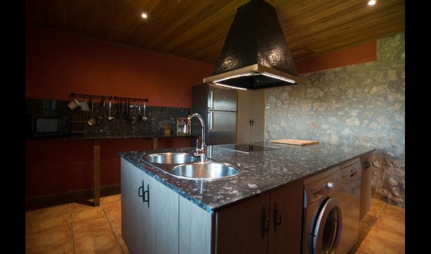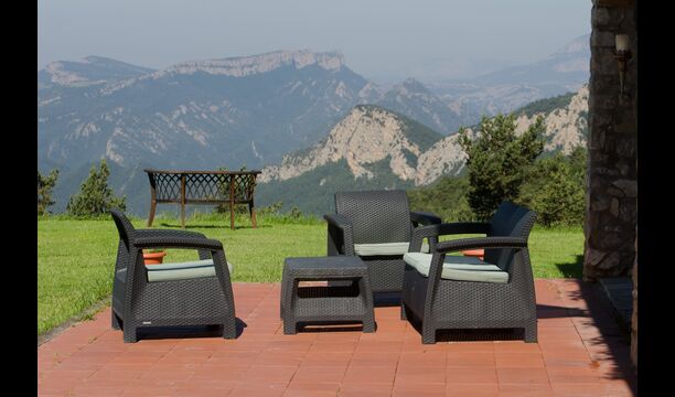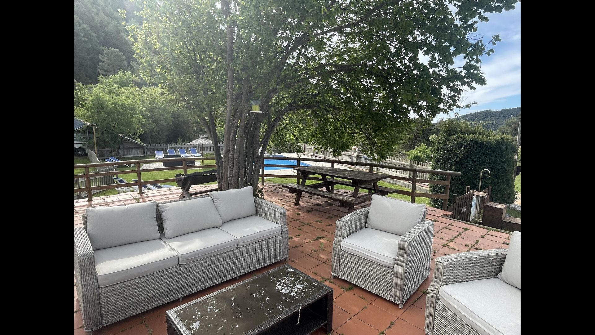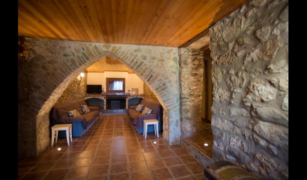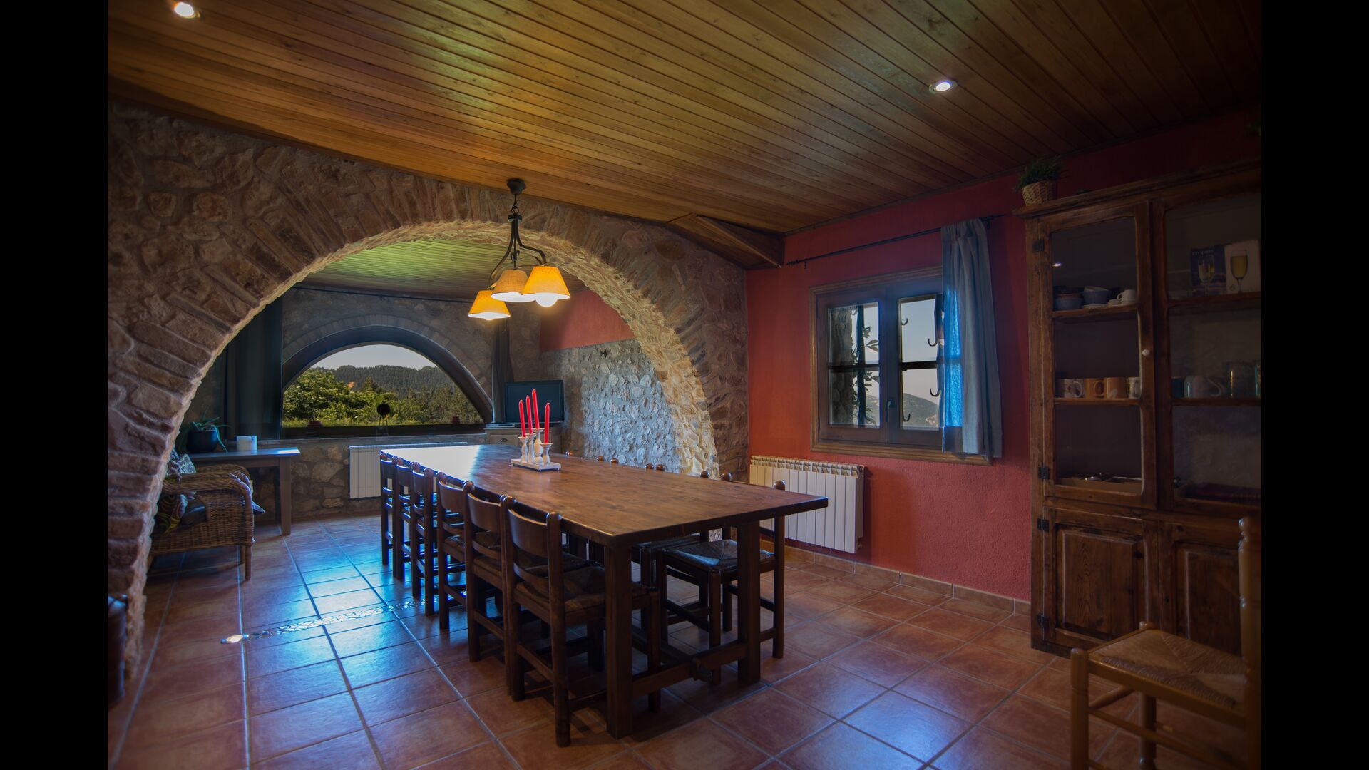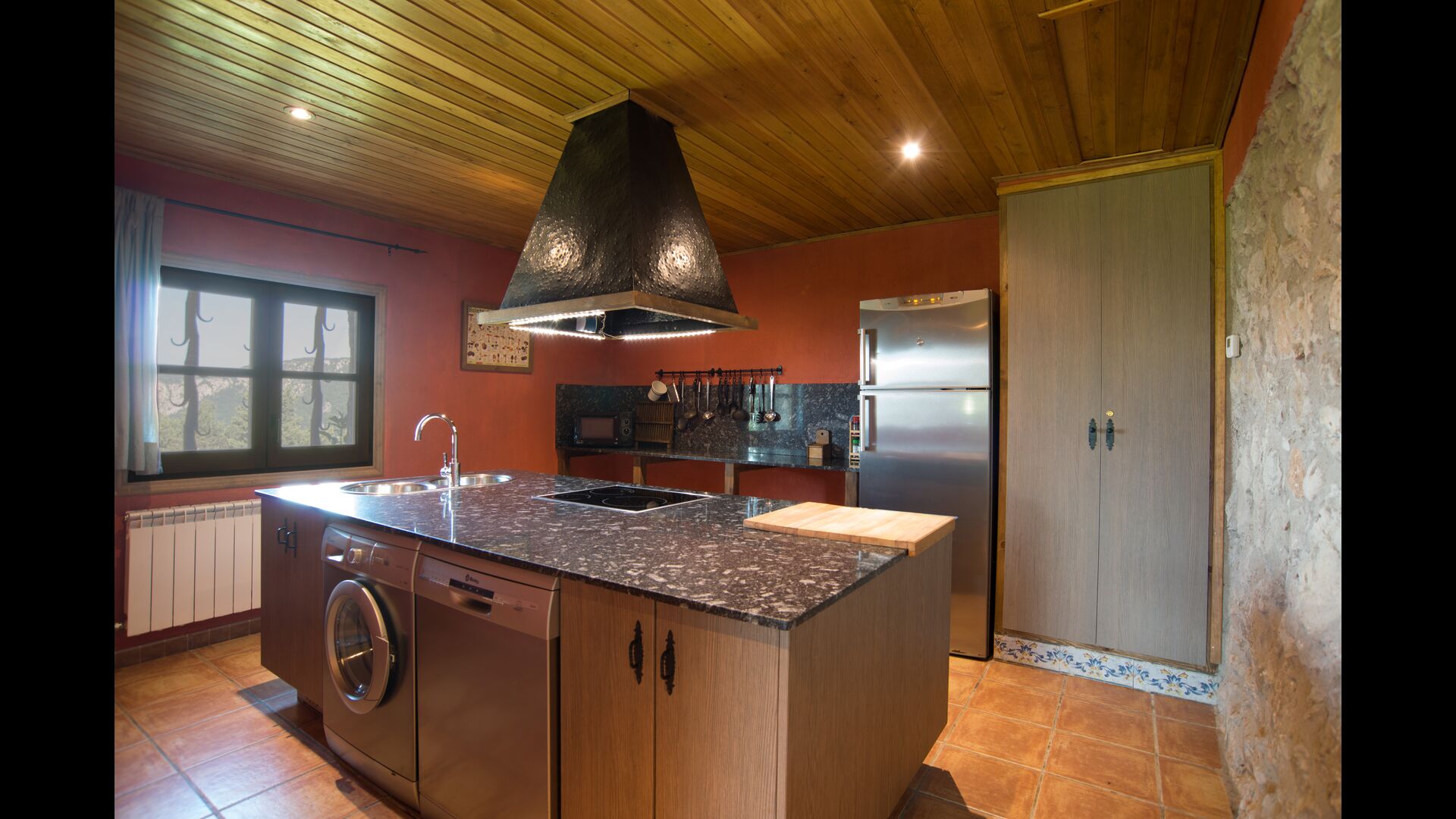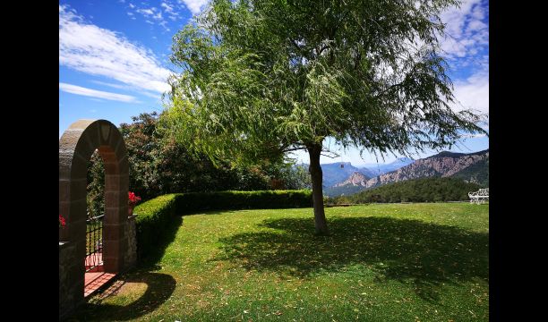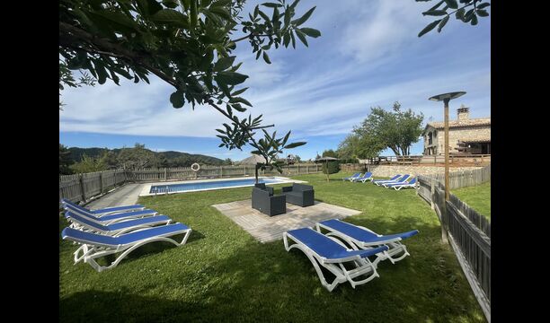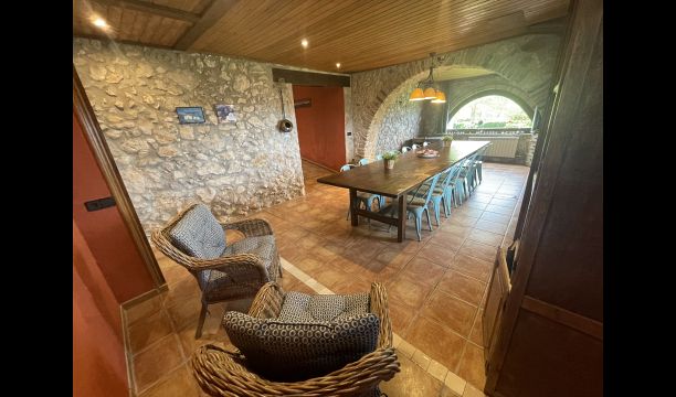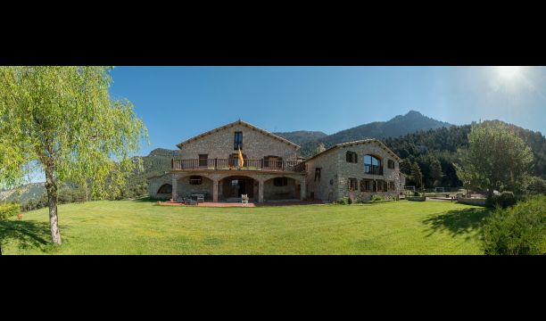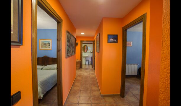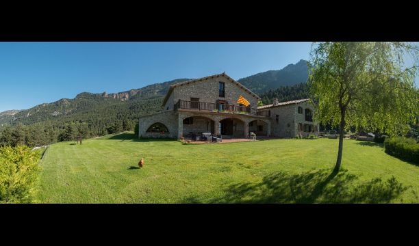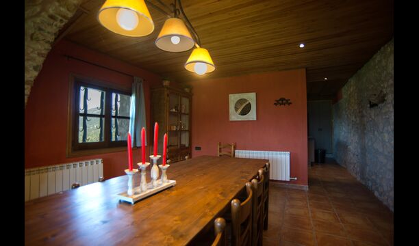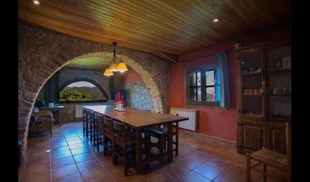 Le grand appartement "Casa Grande" dans la maison principale et dispose d'une grande terrasse donnant sur la propriété et avec les Pyrénées qui s'élèvent en arrière-plan. Cet appartement dispose de quatre chambres doubles, dont trois avec lits doubles, ainsi qu'une chambre à quatre lits avec quatre lits simples. La première partie de l'appartement est divisée en un salon avec vue, une salle à manger très authentique et une grande cuisine avec, entre autres, un lave-vaisselle et lave-linge.