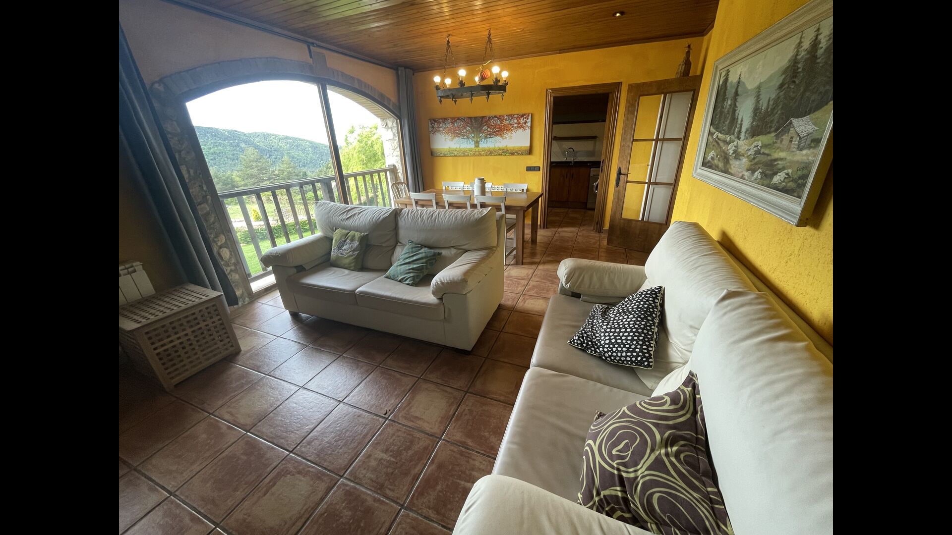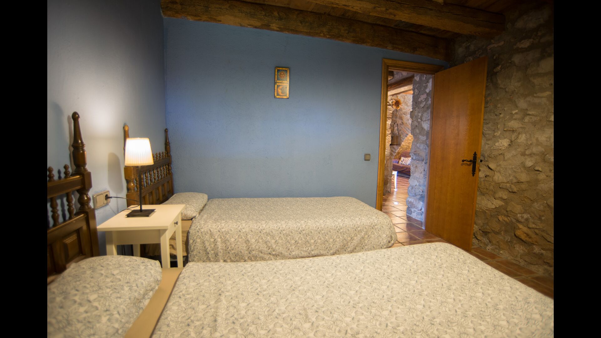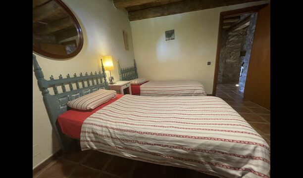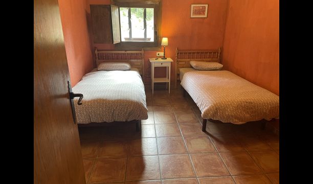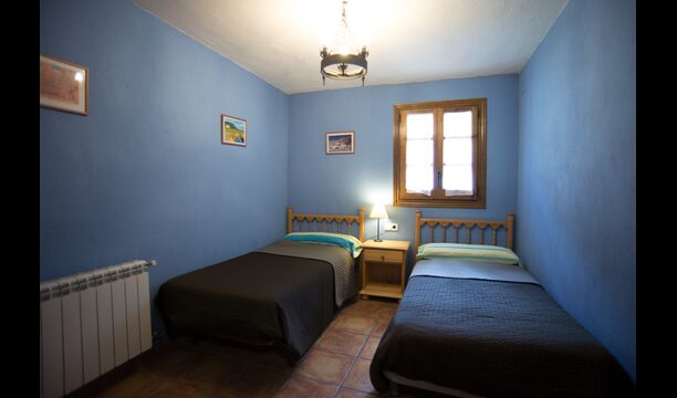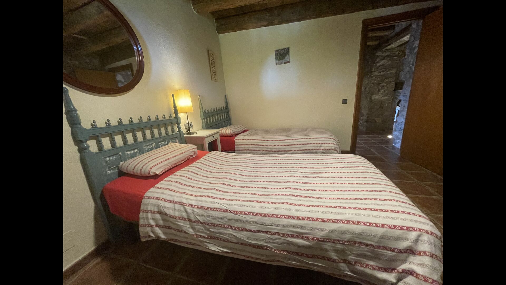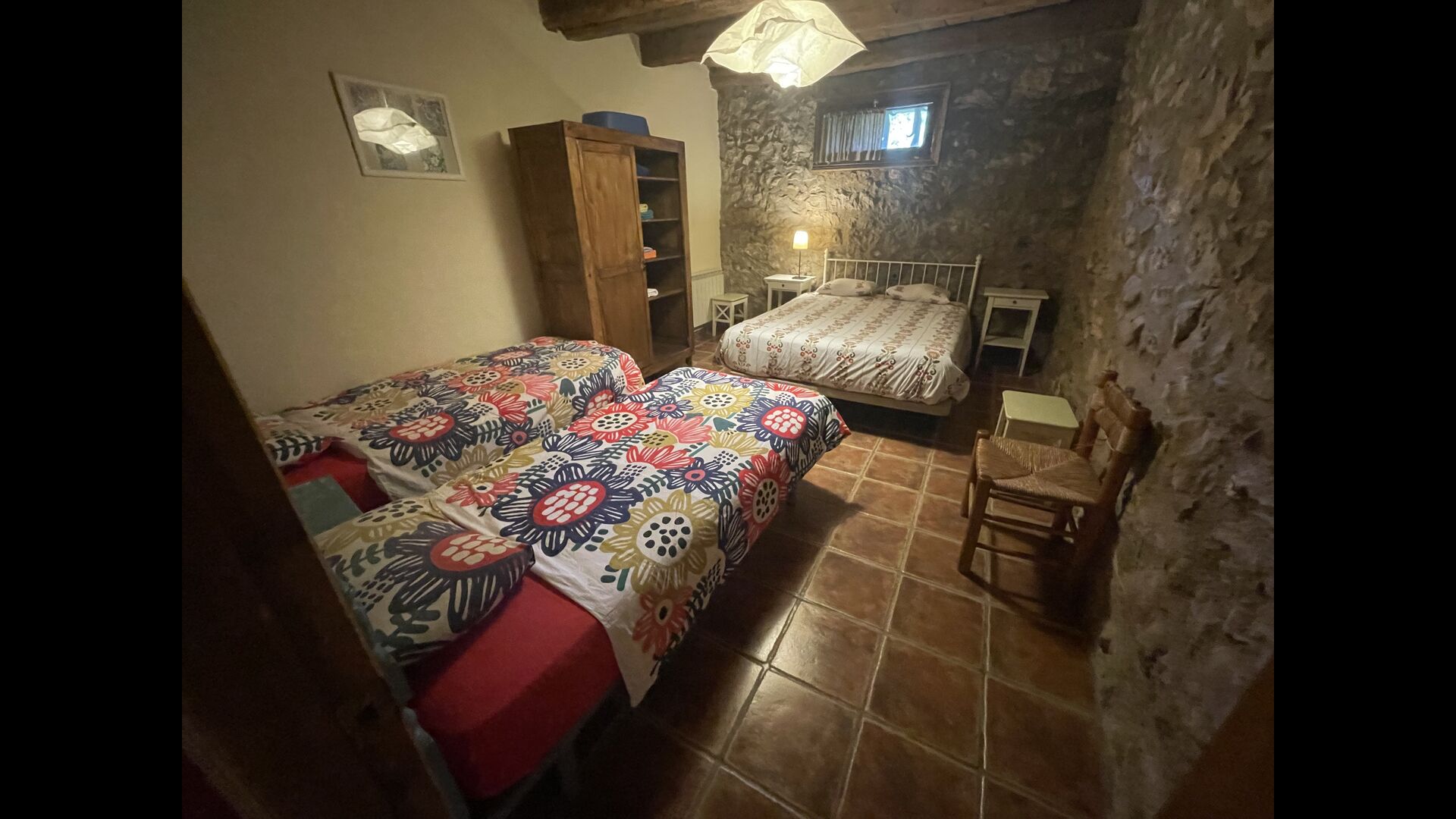 L'appartement est au premier étage et se compose d'une chambre double avec 1 lit double, une chambre double avec 2 lits simples et une chambre en bois avec lits simples. De plus, il y a 2 salles de bains, une cuisine et un salon avec une table à manger et coin canapé et une vue fascinante sur les Pyrénées. La vue depuis les fenêtres est magnifique, à tout moment de la journée – matin, midi, soir et nuit.