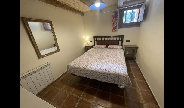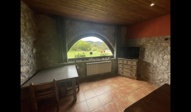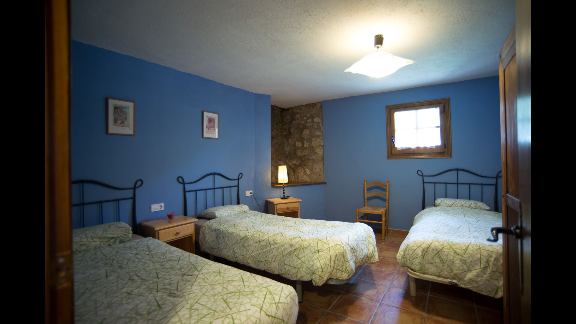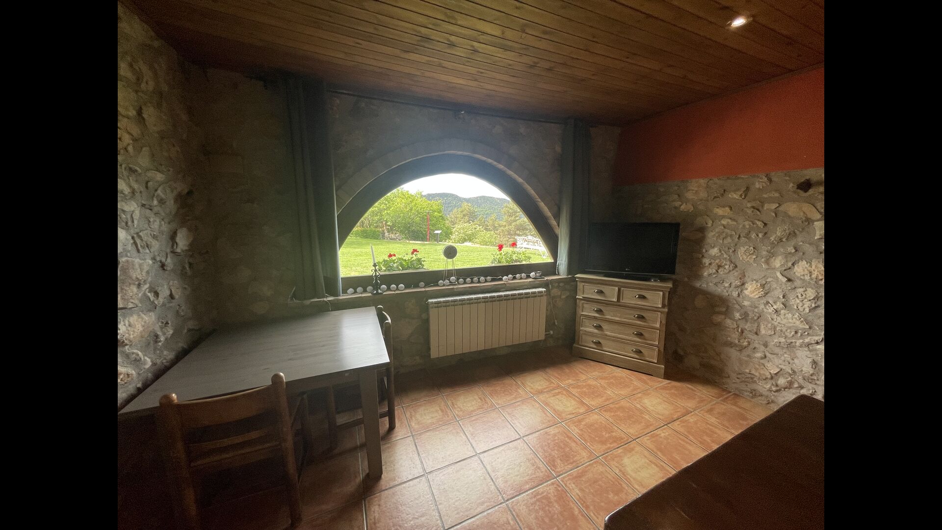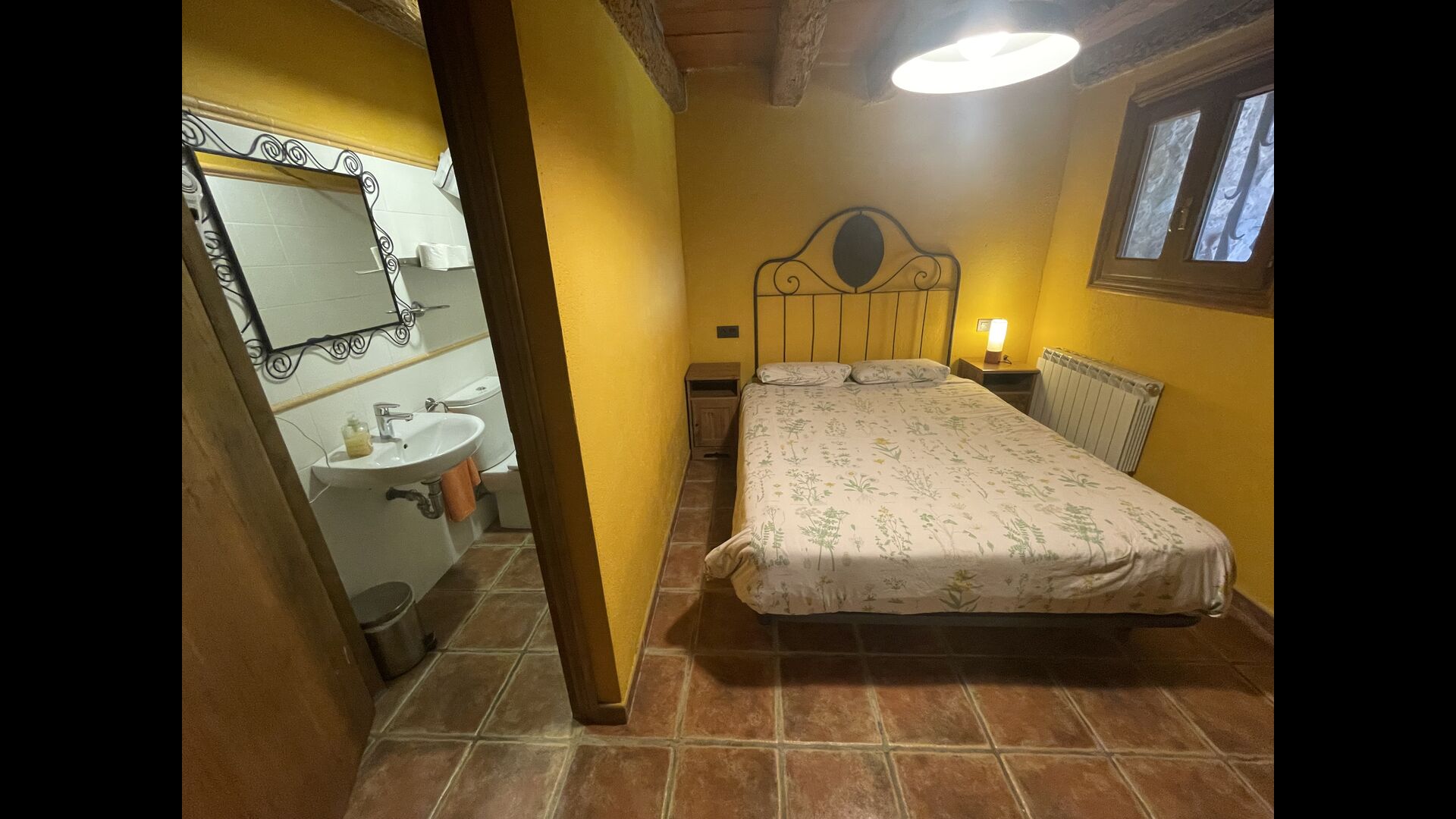 L'appartement est au premier étage et se compose d'une chambre double avec 1 lit double, une chambre double avec 2 lits simples et une chambre en bois avec lits simples. De plus, il y a 2 salles de bains, une cuisine et un salon avec une table à manger et coin canapé et une vue fascinante sur les Pyrénées. La vue depuis les fenêtres est magnifique, à tout moment de la journée – matin, midi, soir et nuit.