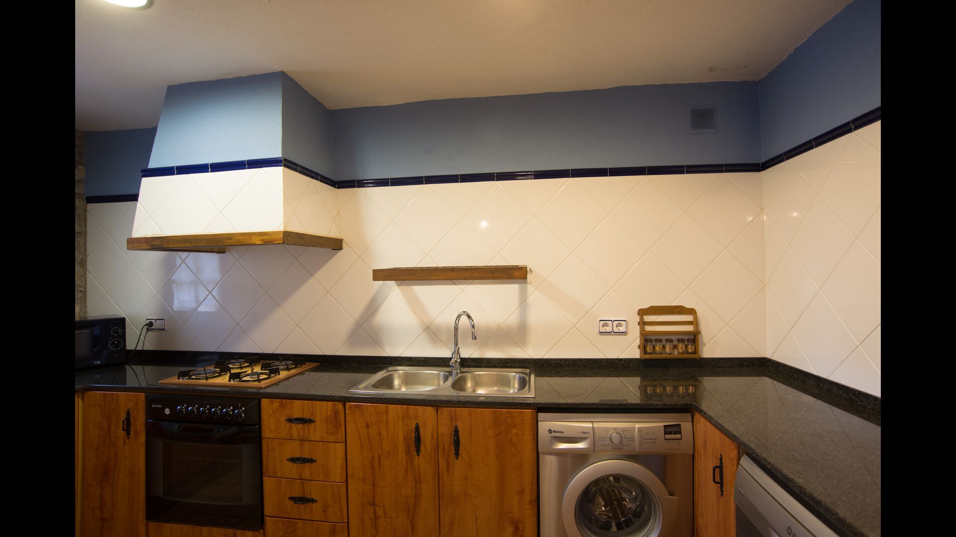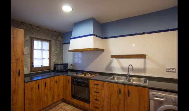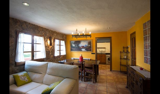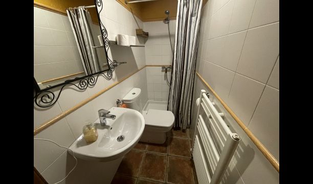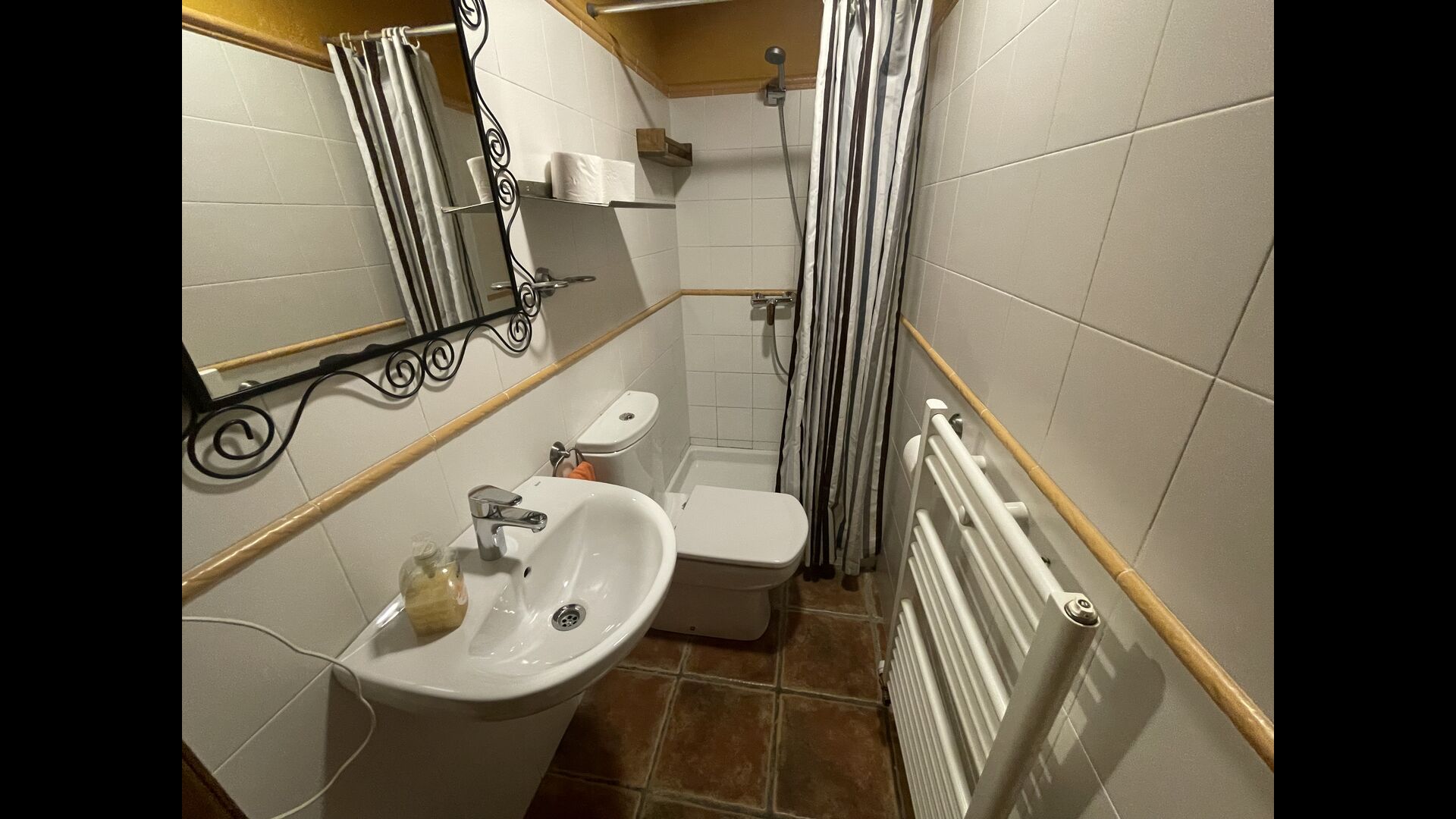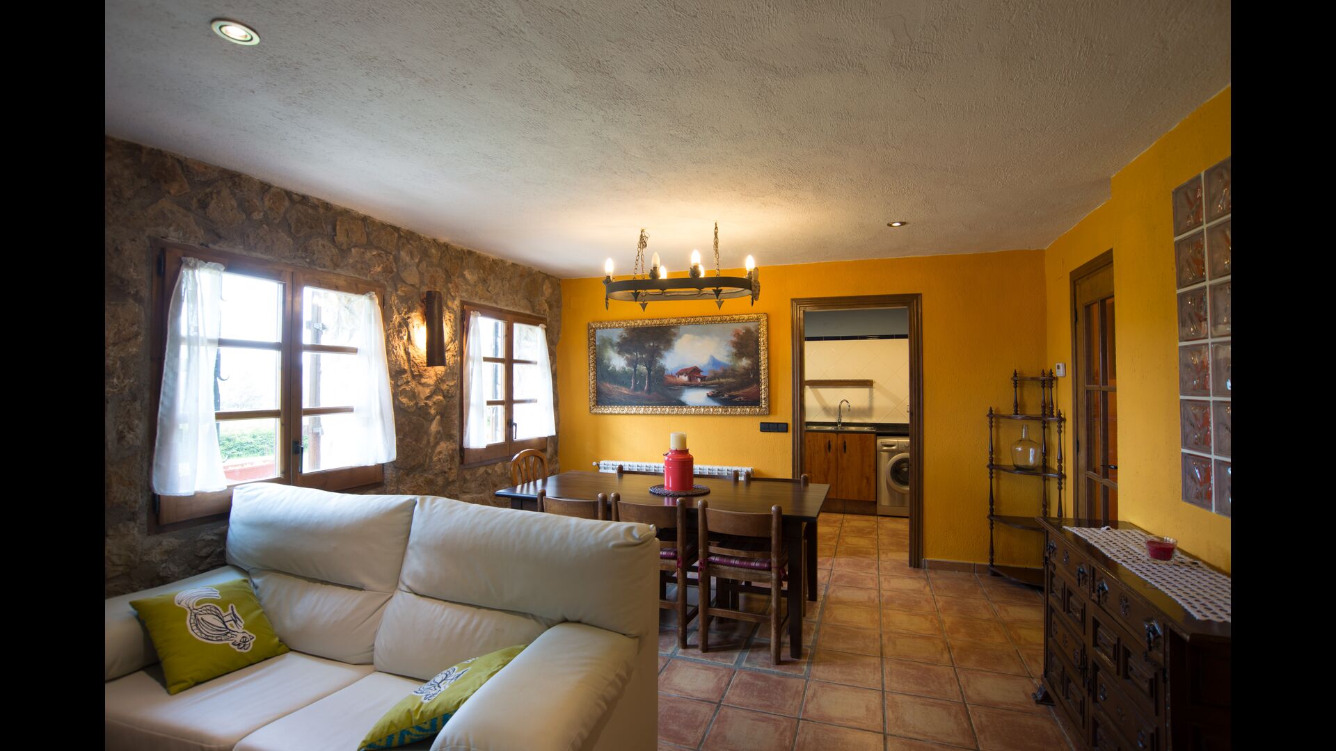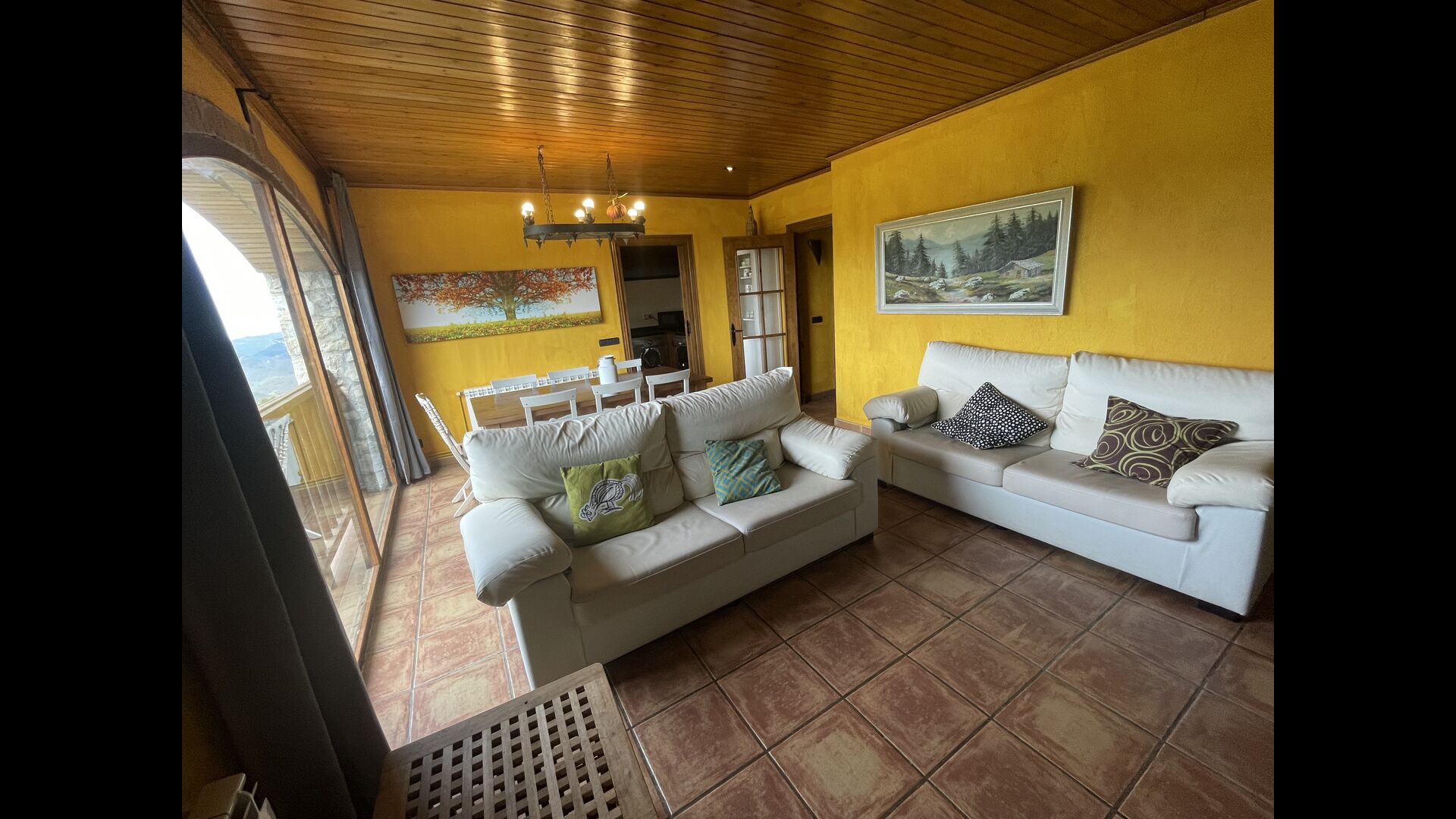 L'appartement est au premier étage et se compose d'une chambre double avec 1 lit double, une chambre double avec 2 lits simples et une chambre en bois avec lits simples. De plus, il y a 2 salles de bains, une cuisine et un salon avec une table à manger et coin canapé et une vue fascinante sur les Pyrénées. La vue depuis les fenêtres est magnifique, à tout moment de la journée – matin, midi, soir et nuit.