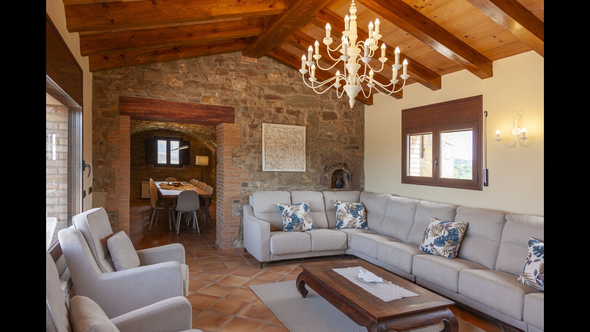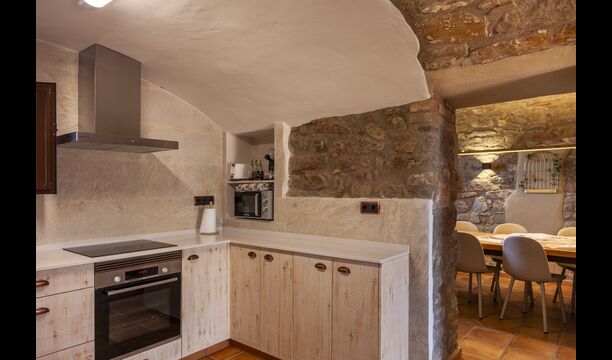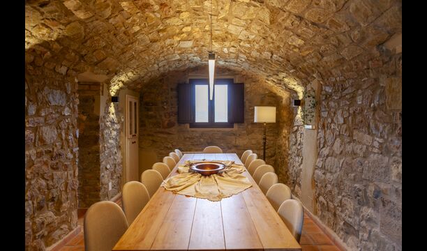 La maison est conçue pour accueillir jusqu'à 16 personnes avec 8 chambres doubles et 5 salles de bain, garantissant un séjour spacieux et confortable. Les intérieurs allient parfaitement charme rustique et confort moderne, avec des murs en pierre, des poutres en bois et un mobilier élégant qui créent une atmosphère chaleureuse et accueillante.