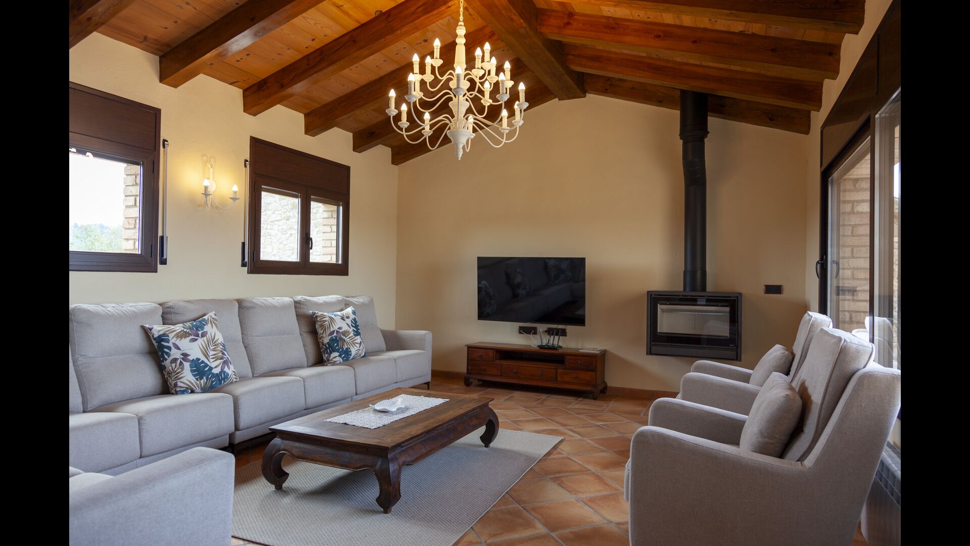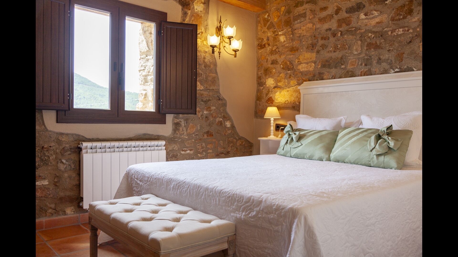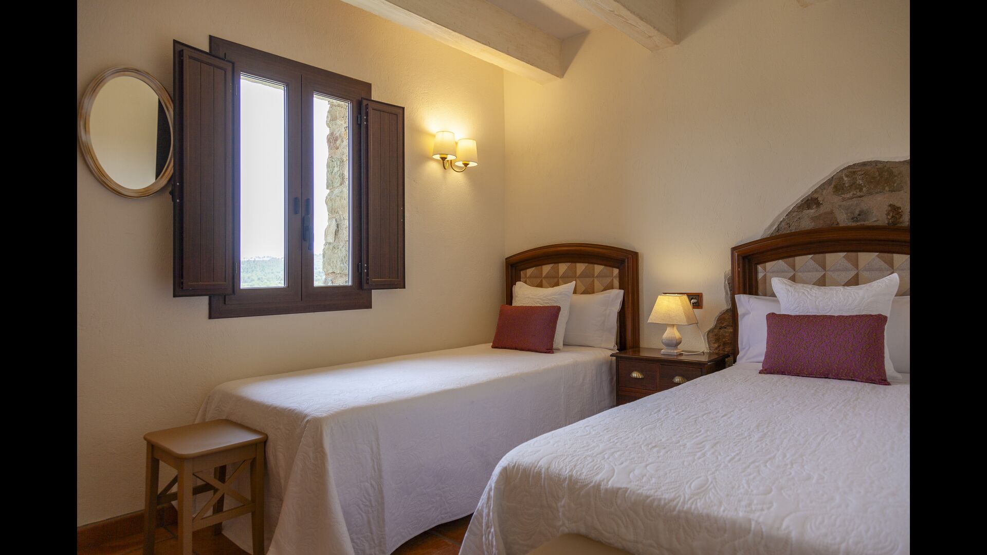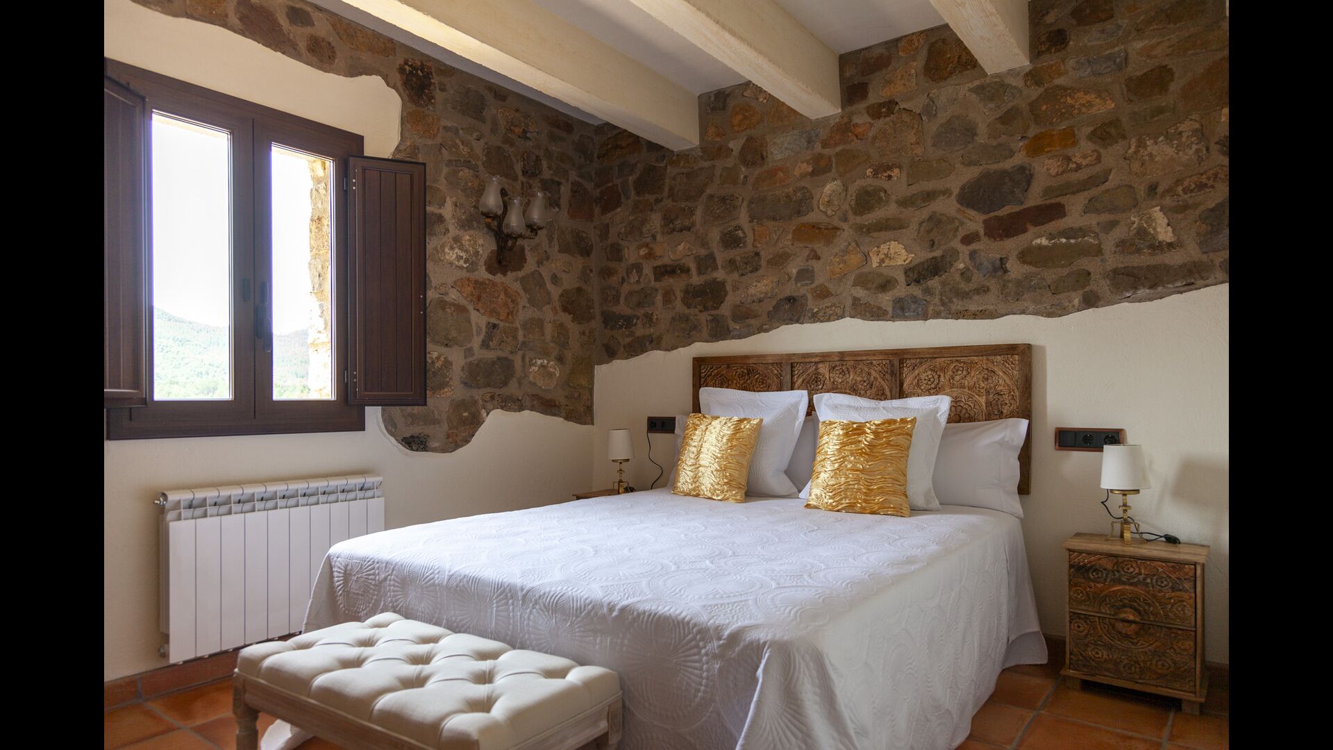 Au total, la maison comprend 8 chambres doubles, certaines offrant une vue spectaculaire sur le paysage. Les chambres sont soigneusement aménagées, alliant éléments traditionnels et mobilier moderne pour une expérience à la fois relaxante et cosy. Les 5 salles de bain sont équipées de serviettes, sèche-cheveux et installations modernes.