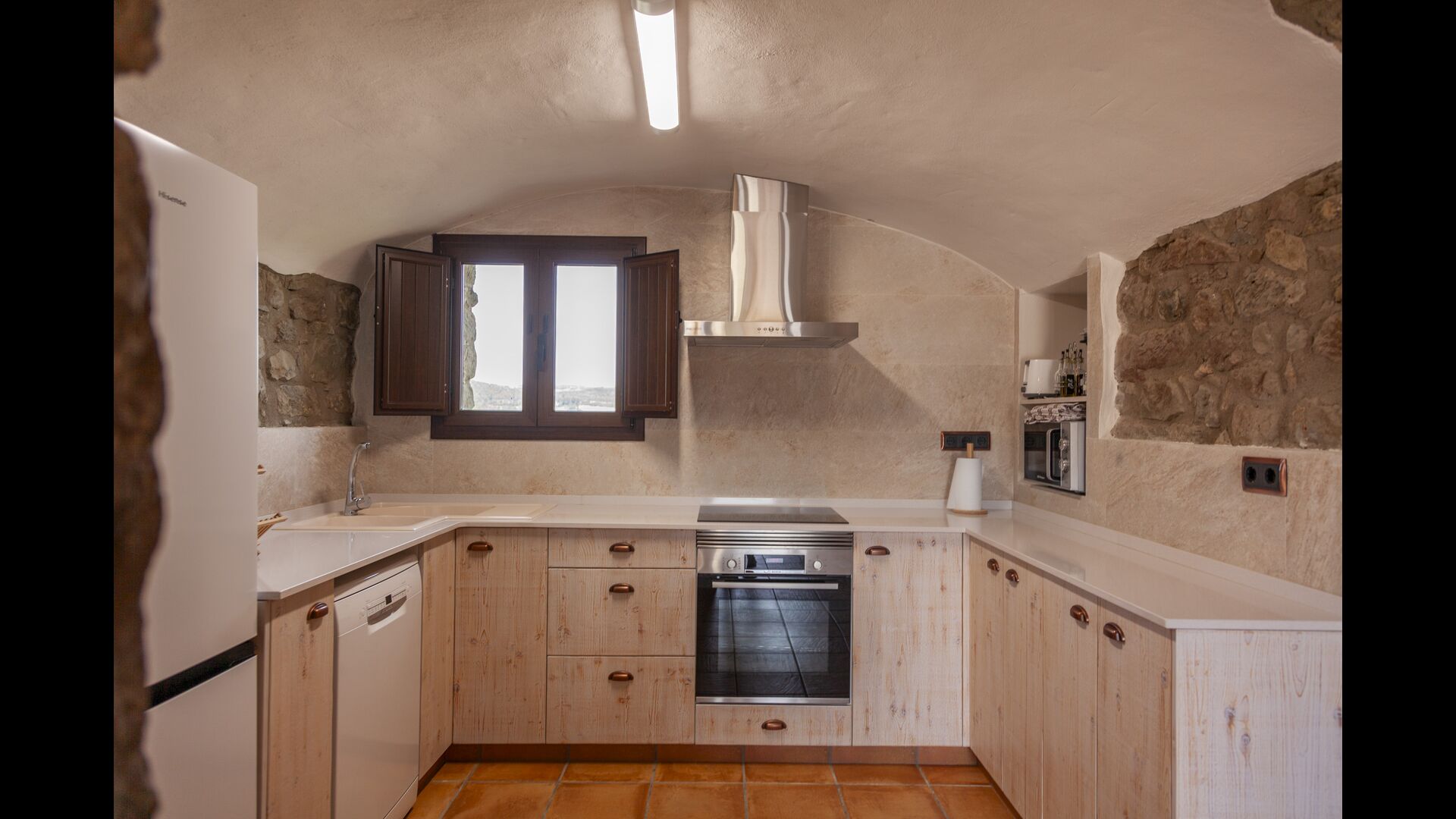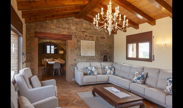 Casa Poteñas est une ferme catalane traditionnelle magnifiquement restaurée, offrant un séjour paisible et confortable au cœur de la nature. Située dans un cadre pittoresque, elle offre des vues à couper le souffle sur la campagne environnante, ce qui en fait un choix idéal pour ceux qui recherchent la détente tout en restant à proximité d'activités de plein air.