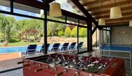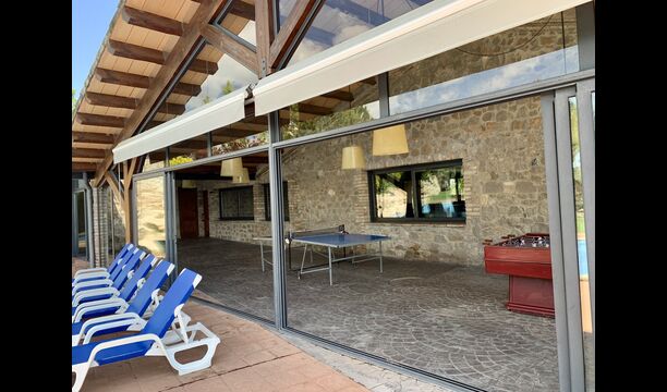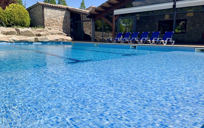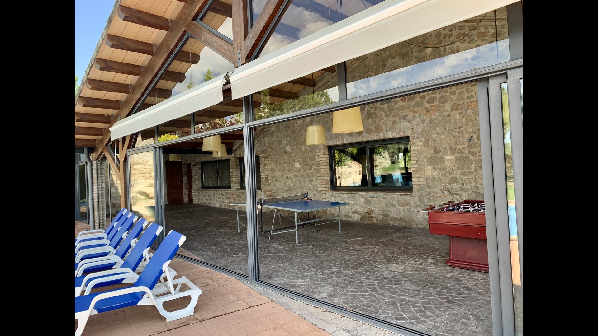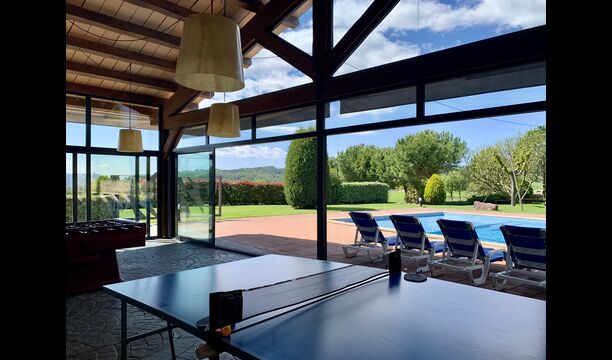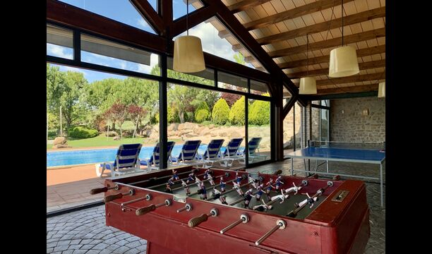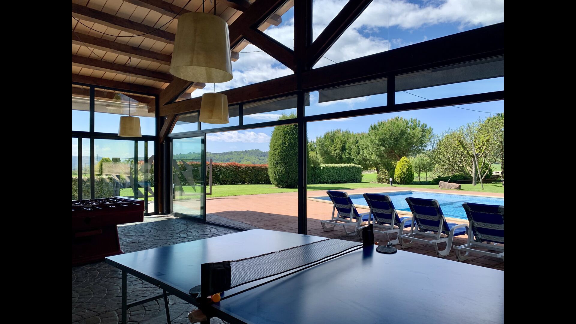 Le point culminant de la maison est la piscine, qui est reliée à une grande salle de jeux. Nous imaginons que vous passerez la plupart de votre temps ici, profitant du climat chaud de la Catalogne. Des chaises longues confortables sont alignées le long de la piscine, et la piscine est grande avec beaucoup d'espace pour tout le groupe de vacances ! On imagine les enfants du groupe de vacances, vont s'éclater, pouvoir alterner entre la natation, le ping-pong et le baby-foot !