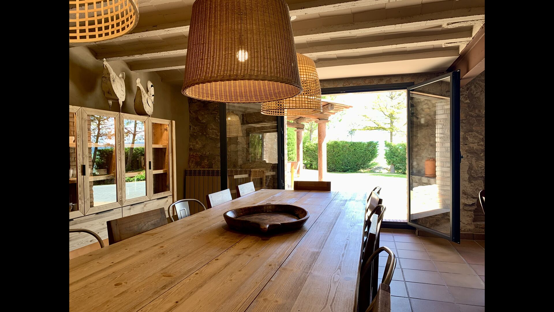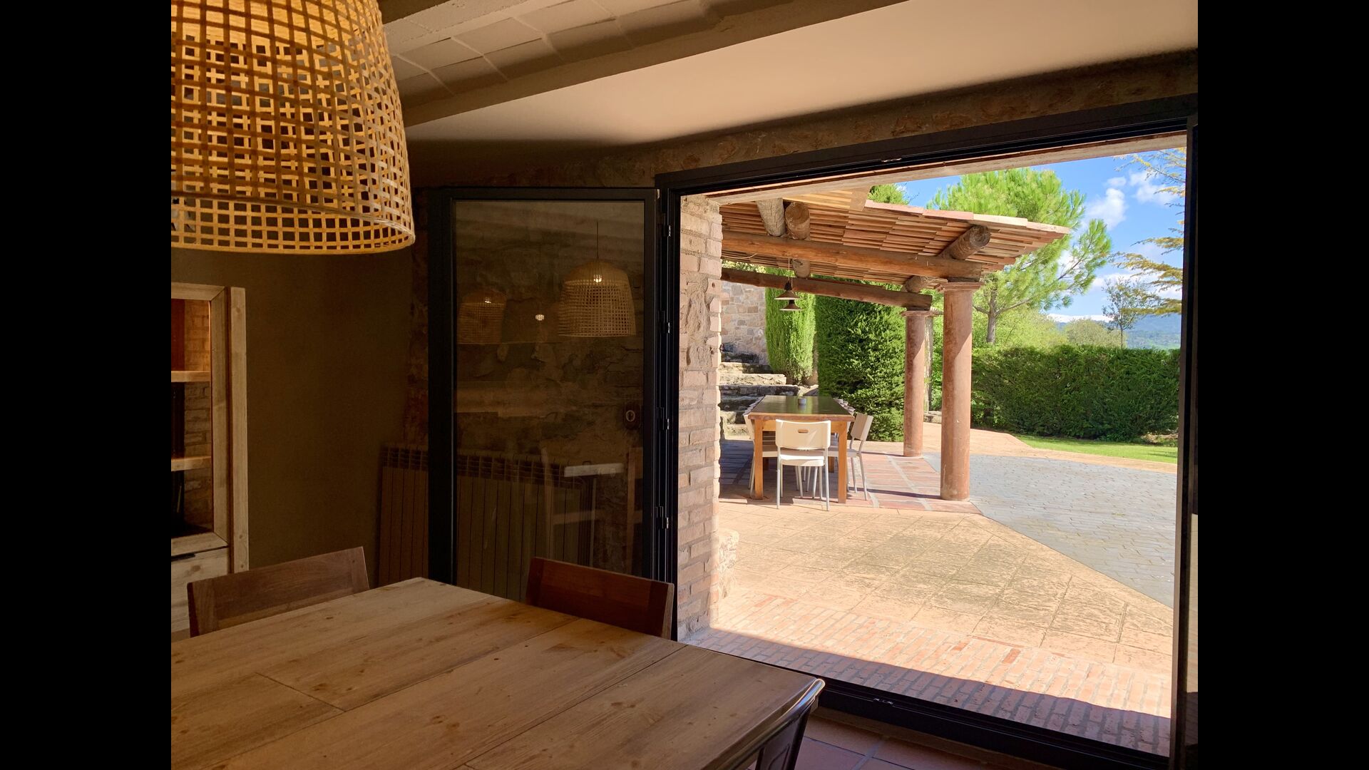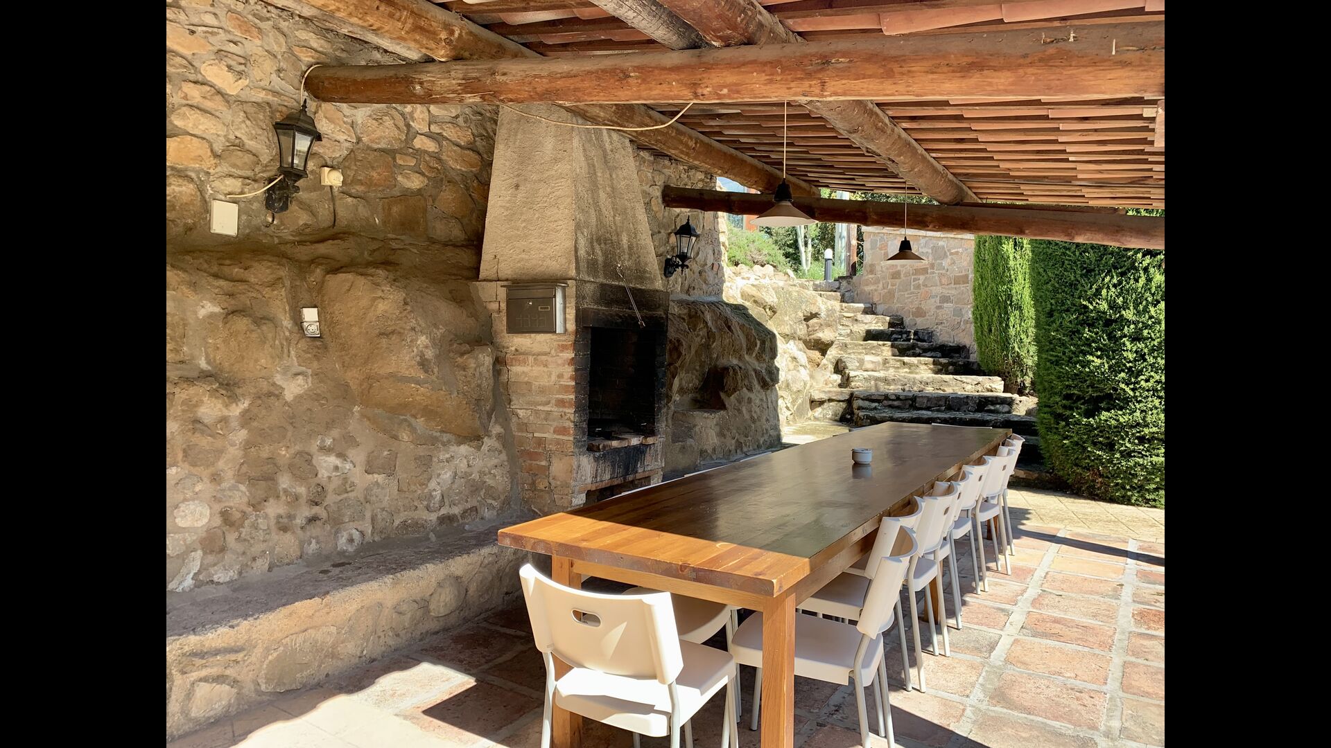 Casa Puentes a deux entrées séparées, car la maison est divisée en deux maisons indépendantes dans le même bâtiment. Le premier bâtiment qui vous rencontre depuis l'allée joliment pavée dispose d'une grande salle à manger extérieure ombragée devant la maison. La salle à manger se compose d'un barbecue et d'une longue table en bois avec de la place pour tout le groupe. Nous imaginons de longues nuits d'été en bonne compagnie et de la nourriture et du vin locaux des marchés et des vignobles catalans !