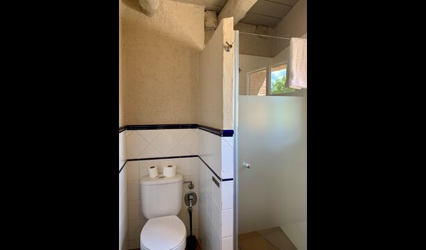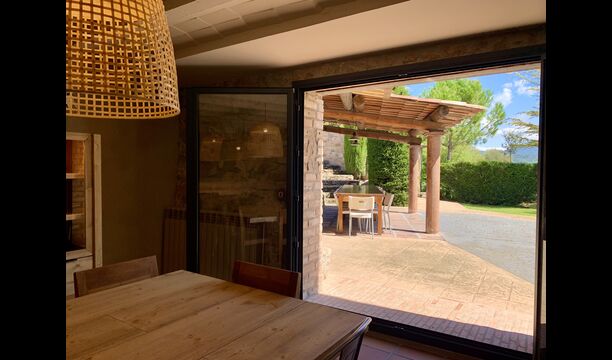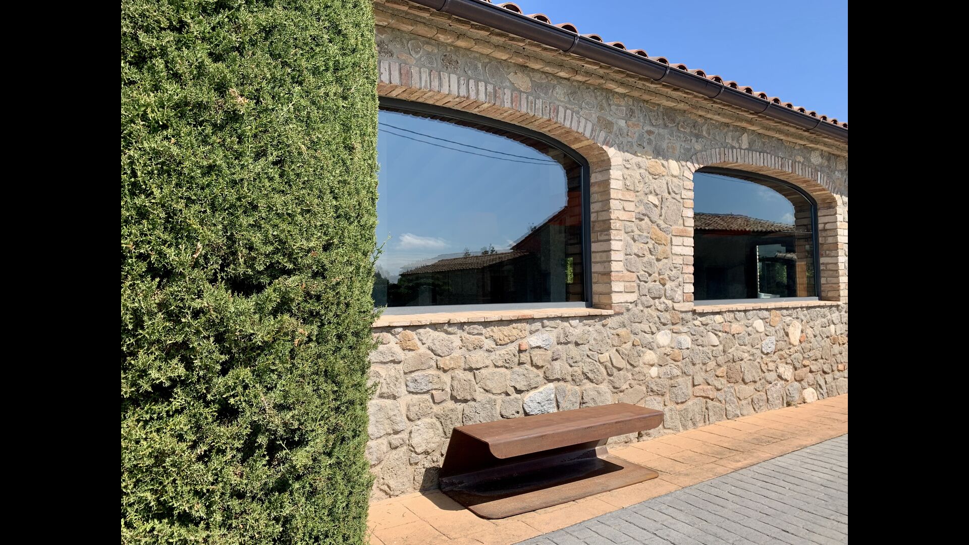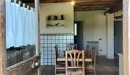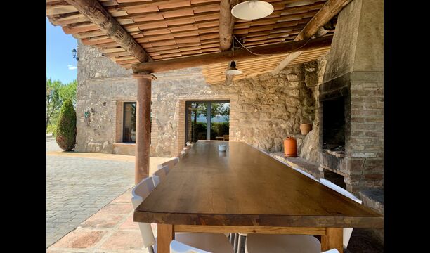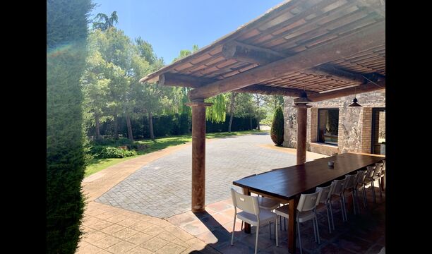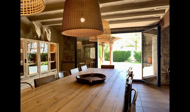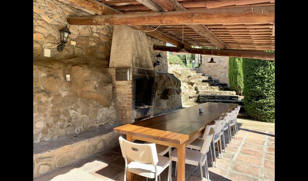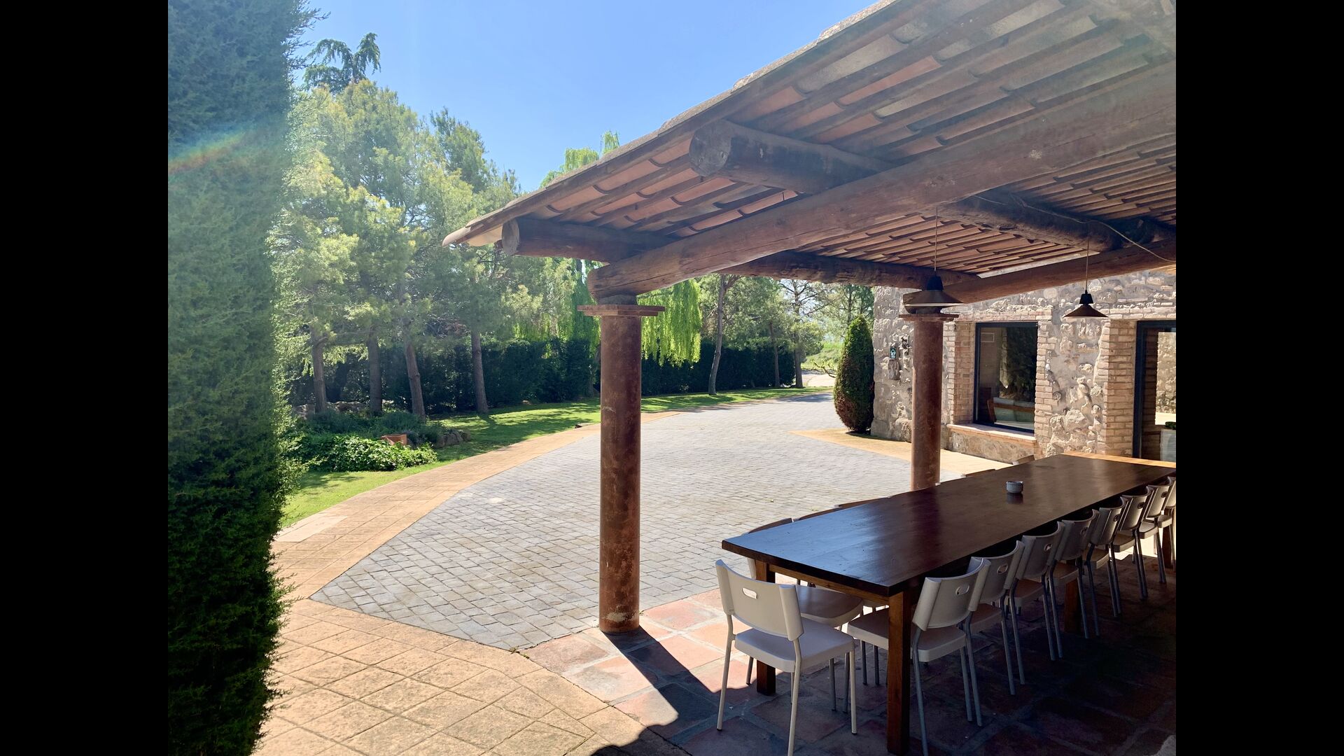 Casa Puentes a deux entrées séparées, car la maison est divisée en deux maisons indépendantes dans le même bâtiment. Le premier bâtiment qui vous rencontre depuis l'allée joliment pavée dispose d'une grande salle à manger extérieure ombragée devant la maison. La salle à manger se compose d'un barbecue et d'une longue table en bois avec de la place pour tout le groupe. Nous imaginons de longues nuits d'été en bonne compagnie et de la nourriture et du vin locaux des marchés et des vignobles catalans !