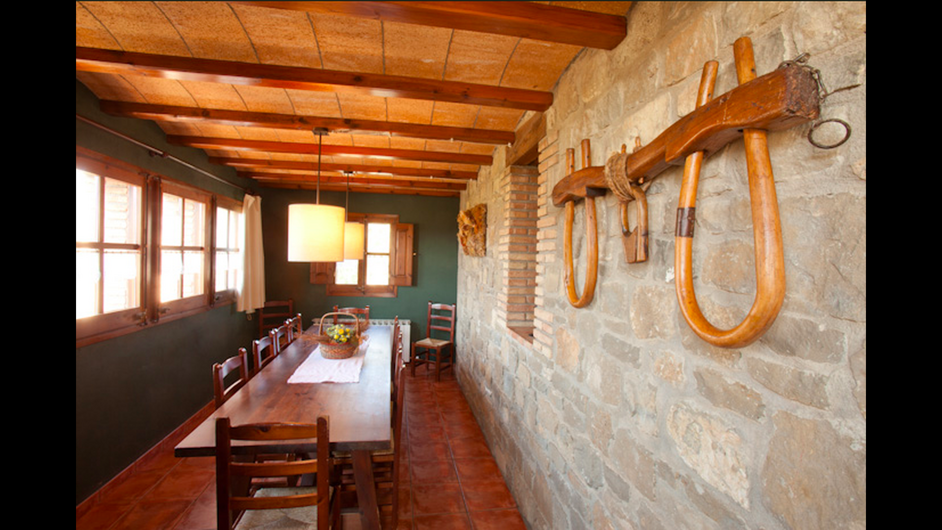 La maison a une cour avant et une cour arrière. À l'entrée du jardin à l'avant se trouve une terrasse couverte avec barbecue, cuisine extérieure et table de ping-pong. C'est probablement là que vous apprécierez les longues nuits d'été. À distance de marche (environ 2 km.) De la maison se trouve le petit village de Mont Major. Voici une délicieuse épicerie avec d'excellentes saucisses et jambons, un tabac, un petit bar local, un restaurant et un petit musée des champignons (dans la région, vous trouverez un grand volume de champignons récoltés à l'automne). Vraiment une grande maison pour une grande famille! Km d'arbres. de la maison est également un excellent restaurant avec des prix très raisonnables - essayez ici leur "menu del dia" qui est servi tous les jours de 13h30 à 16h00.
