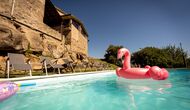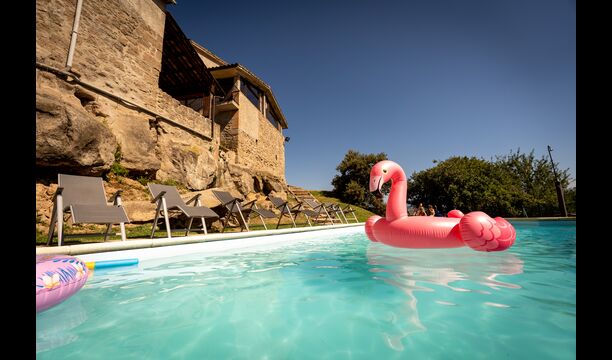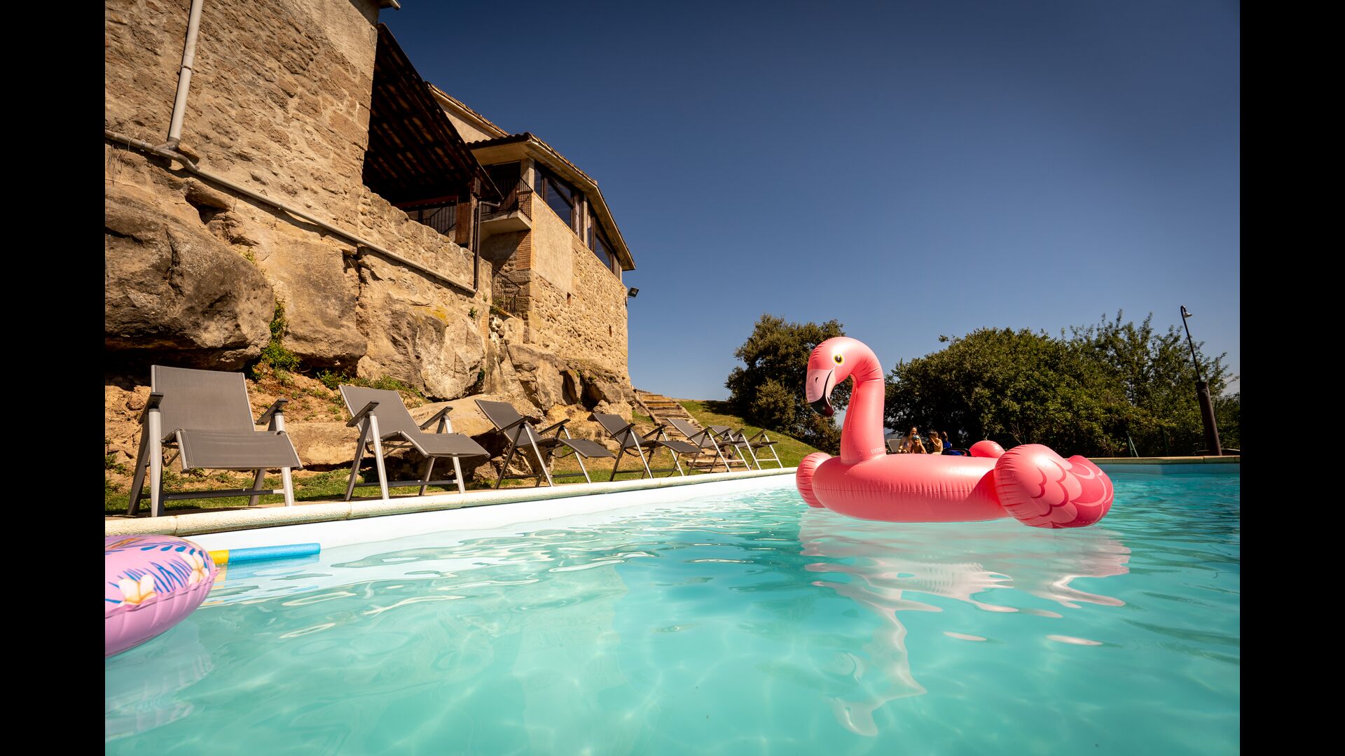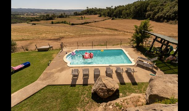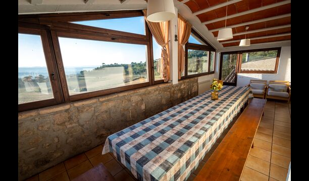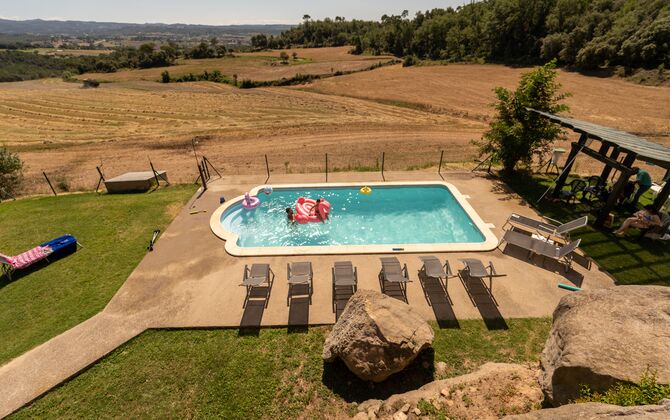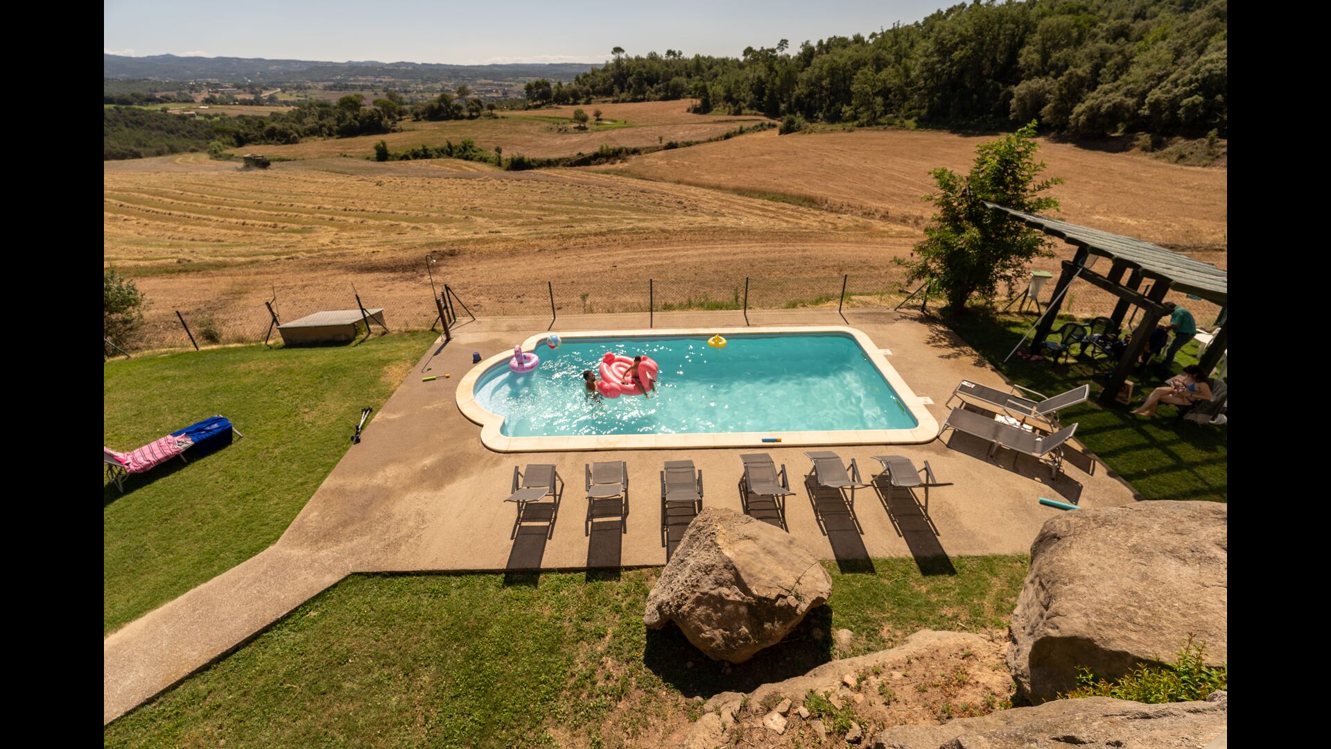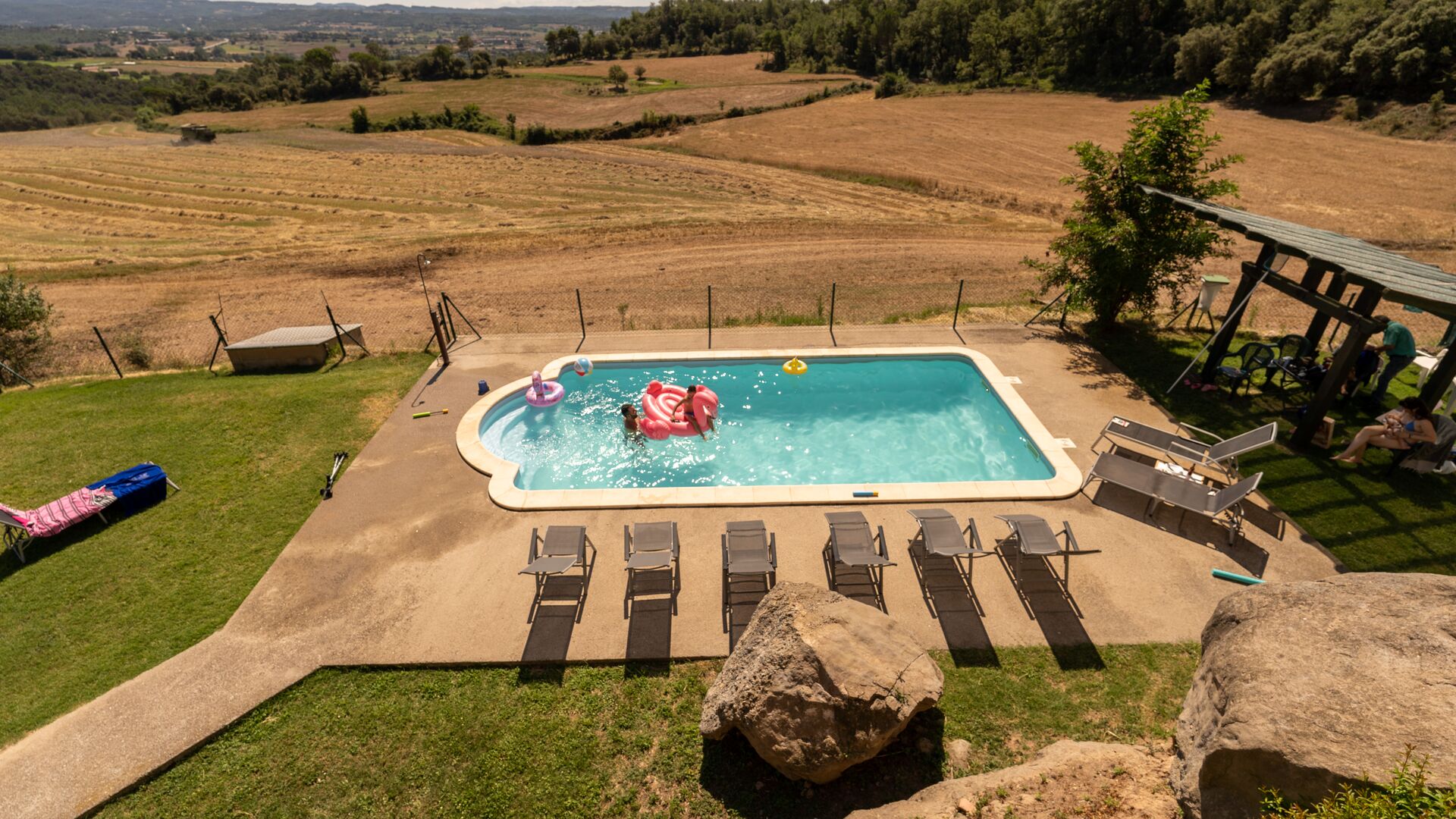 La maison de vacances dispose de magnifiques espaces extérieurs verdoyants. L'une de nos caractéristiques préférées est la grande terrasse avec une cuisine extérieure et un barbecue. La terrasse offre une vue spectaculaire, et c'est un endroit merveilleux pour profiter d'un bon repas et d'un verre pendant les chaudes nuits catalanes.Un autre espace extérieur où vous passerez probablement tout votre temps, est la magnifique piscine . La zone est fermée par un portail pour la protection des petits enfants, et se situe en contrebas de la maison. Pour les membres actifs du groupe, vous trouverez un panier de basket sur le devant de la maison.