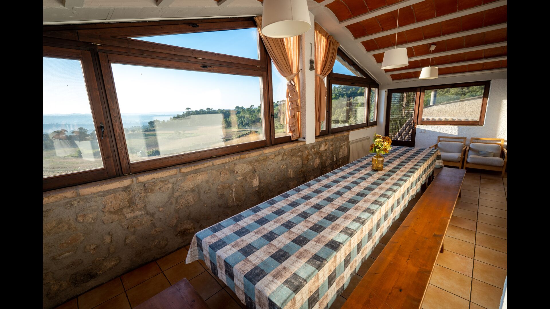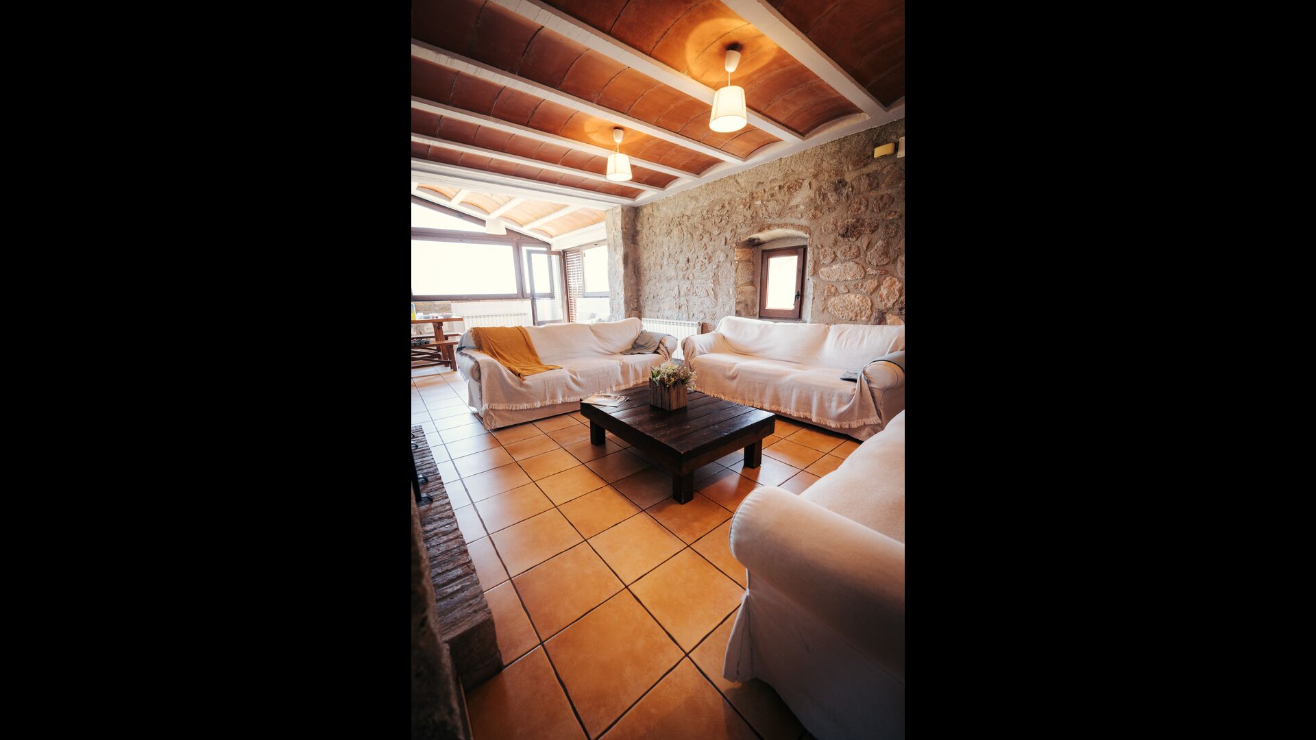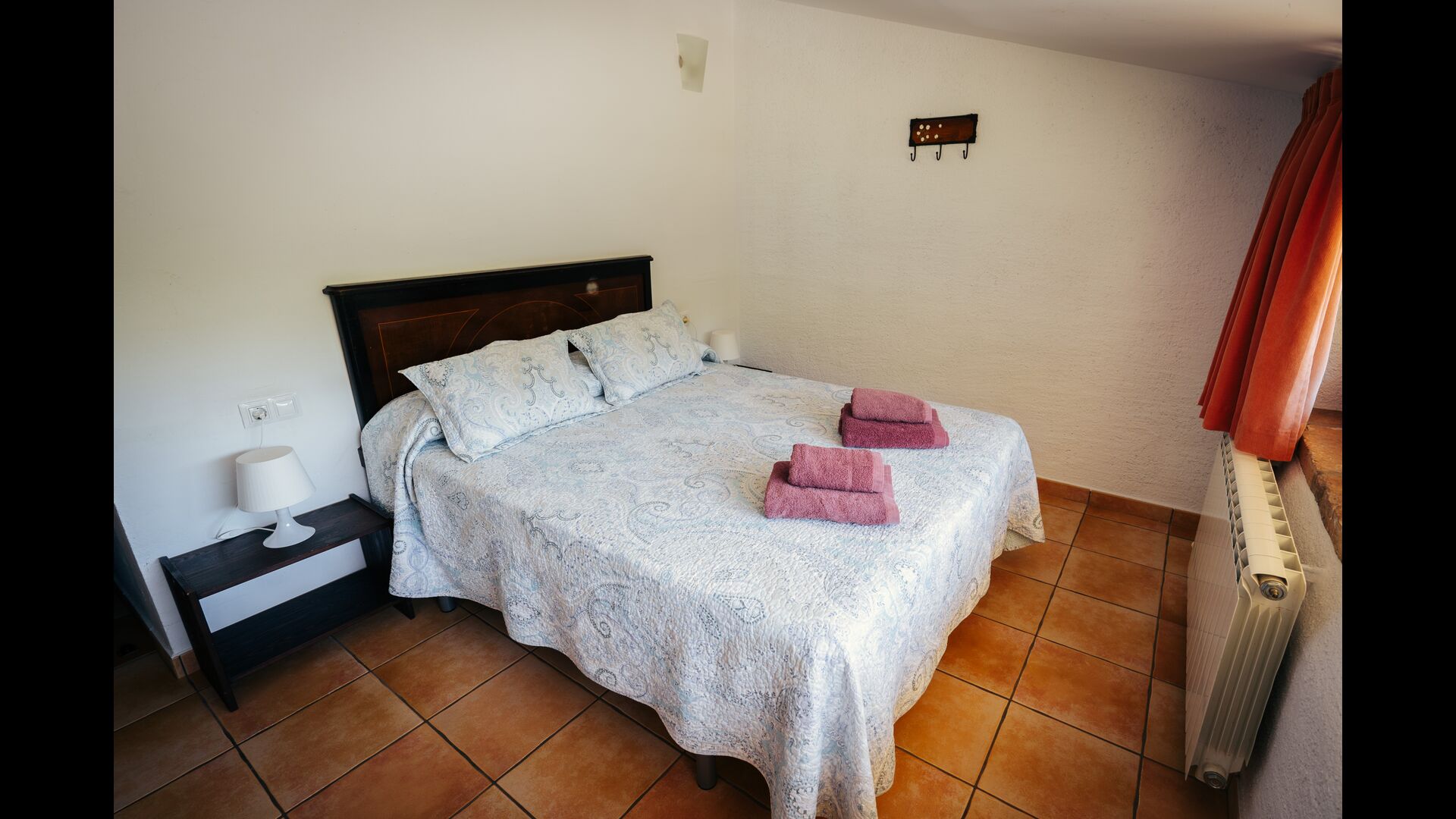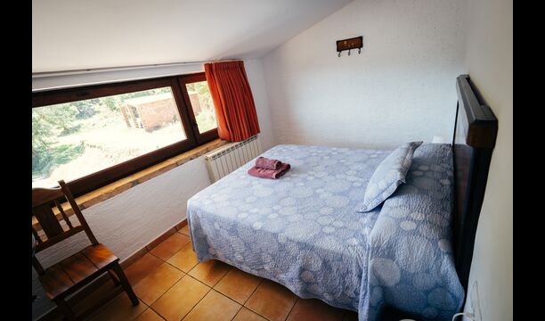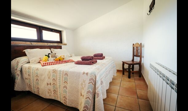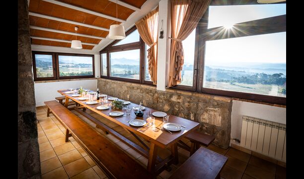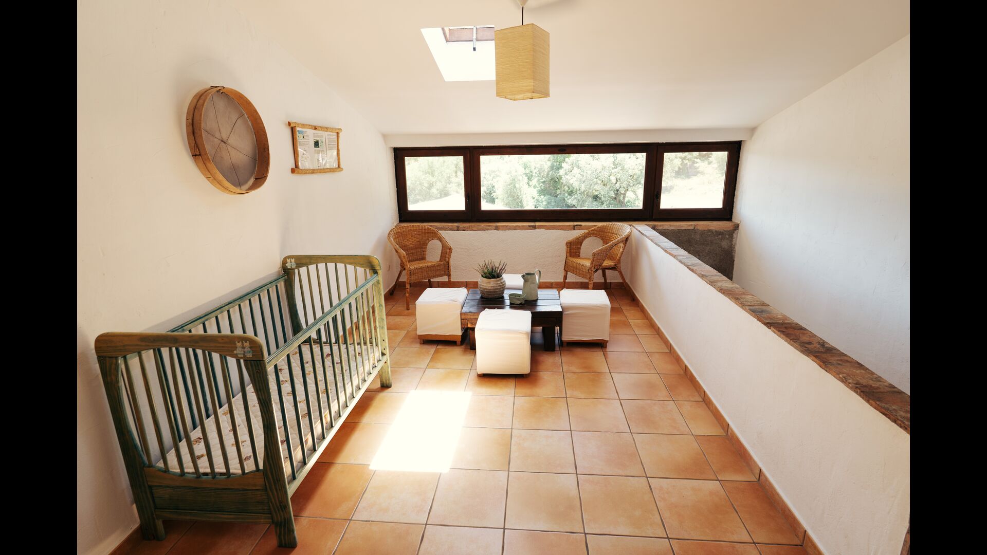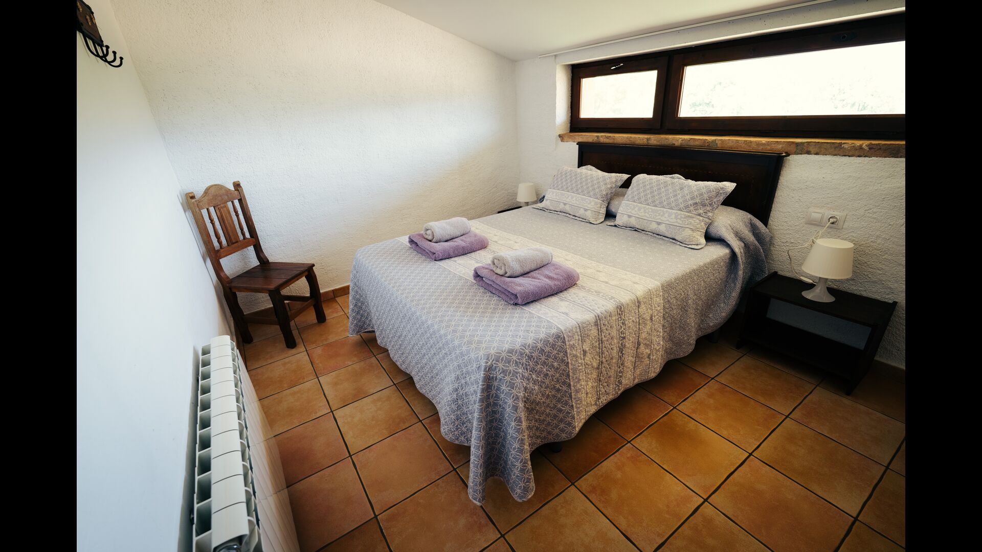 Au premier étage, les murs ont été enlevés et un vaste espace cuisine/salle à manger et salon a émergé, profitant de la lumière entrant par les fenêtres panoramiques, vous offrant le < strong>pleine vue sur le paysage avec les Pyrénéesau loin. Il y a une grande table à manger et une cuisine ouverte avec tous les commodités modernes. Près des escaliers, il y a deux chambres doubles qui partagent une salle de bain.