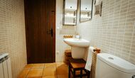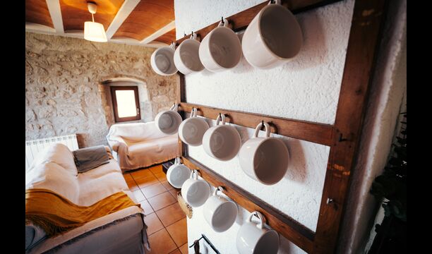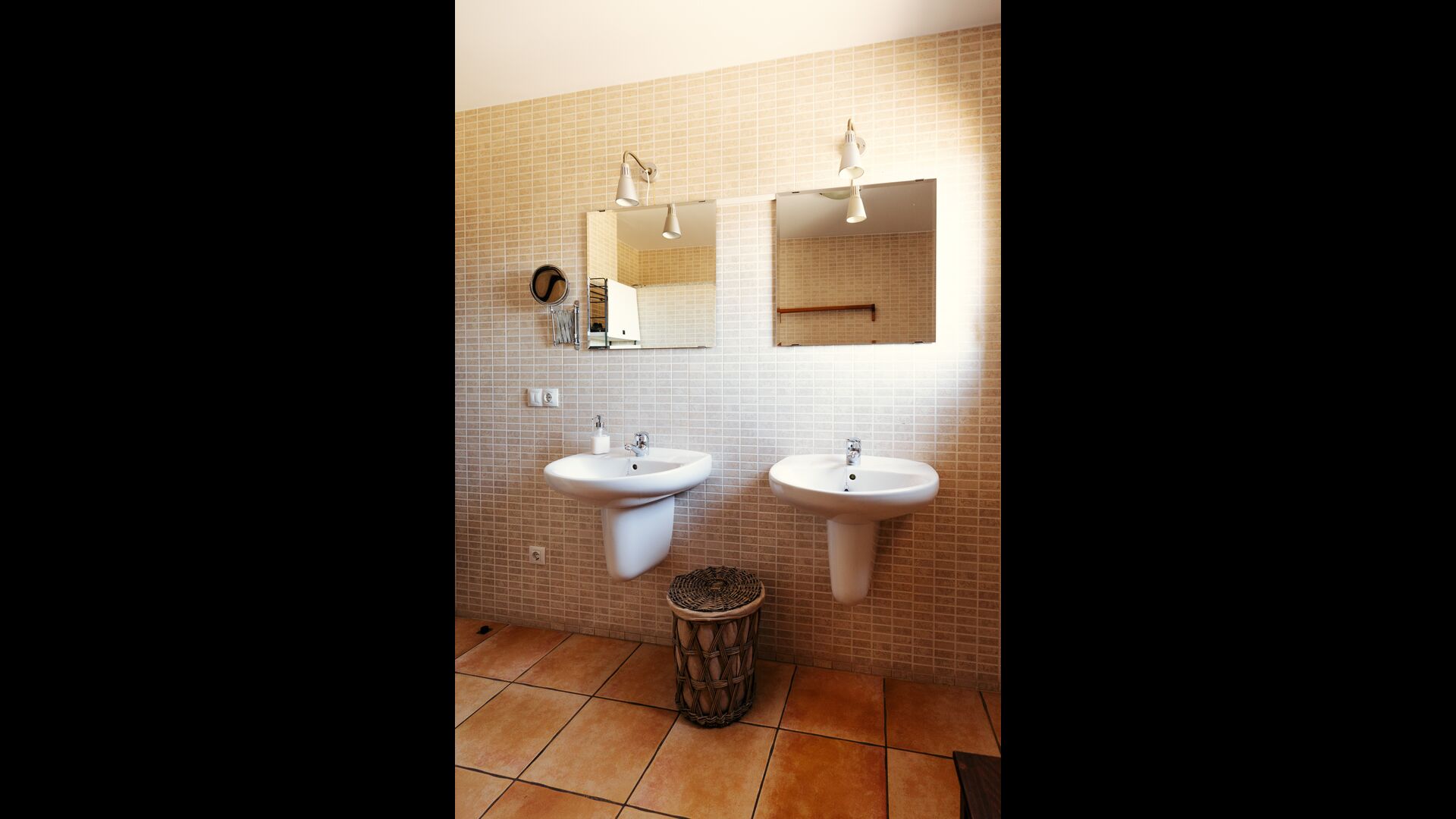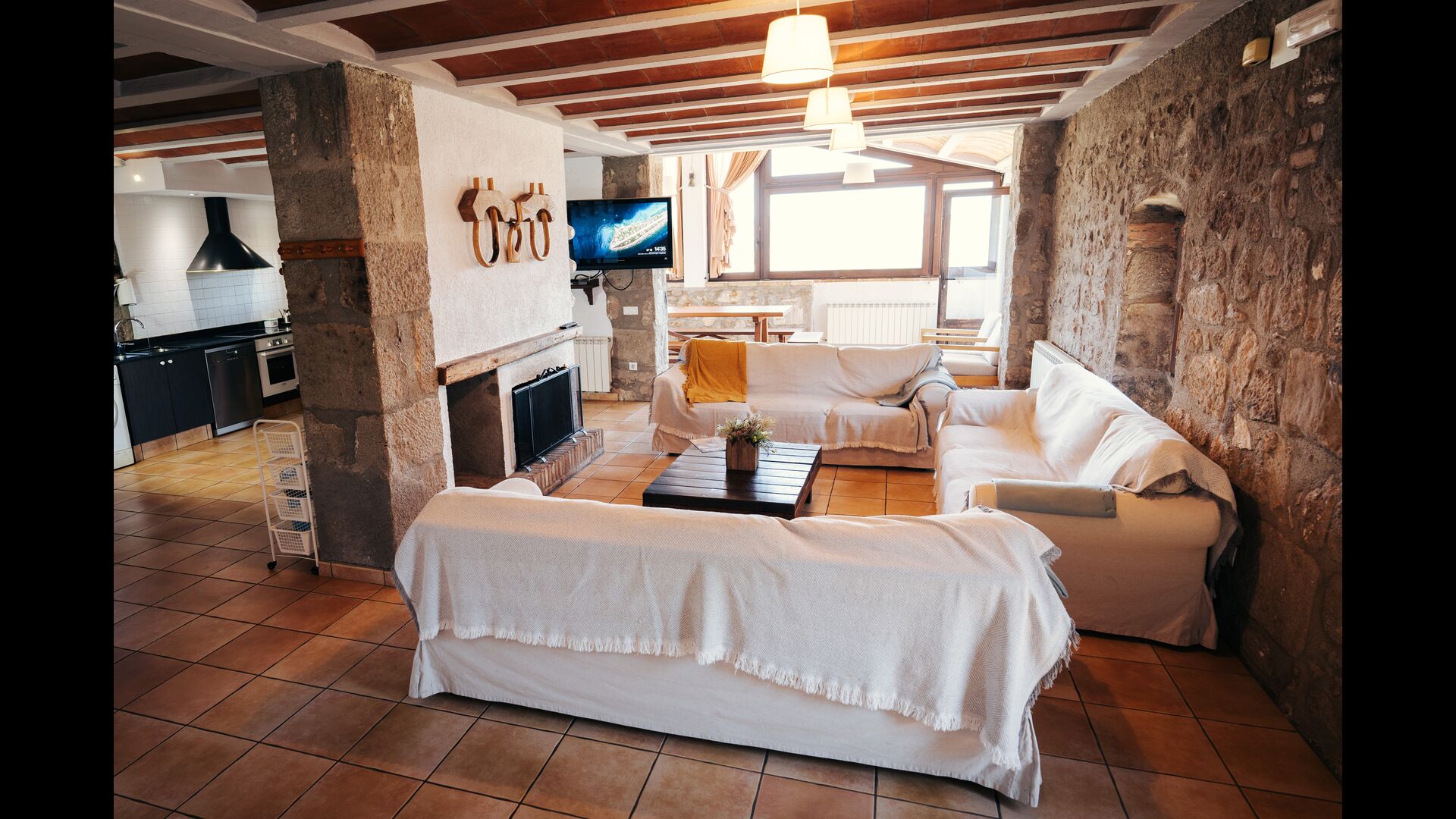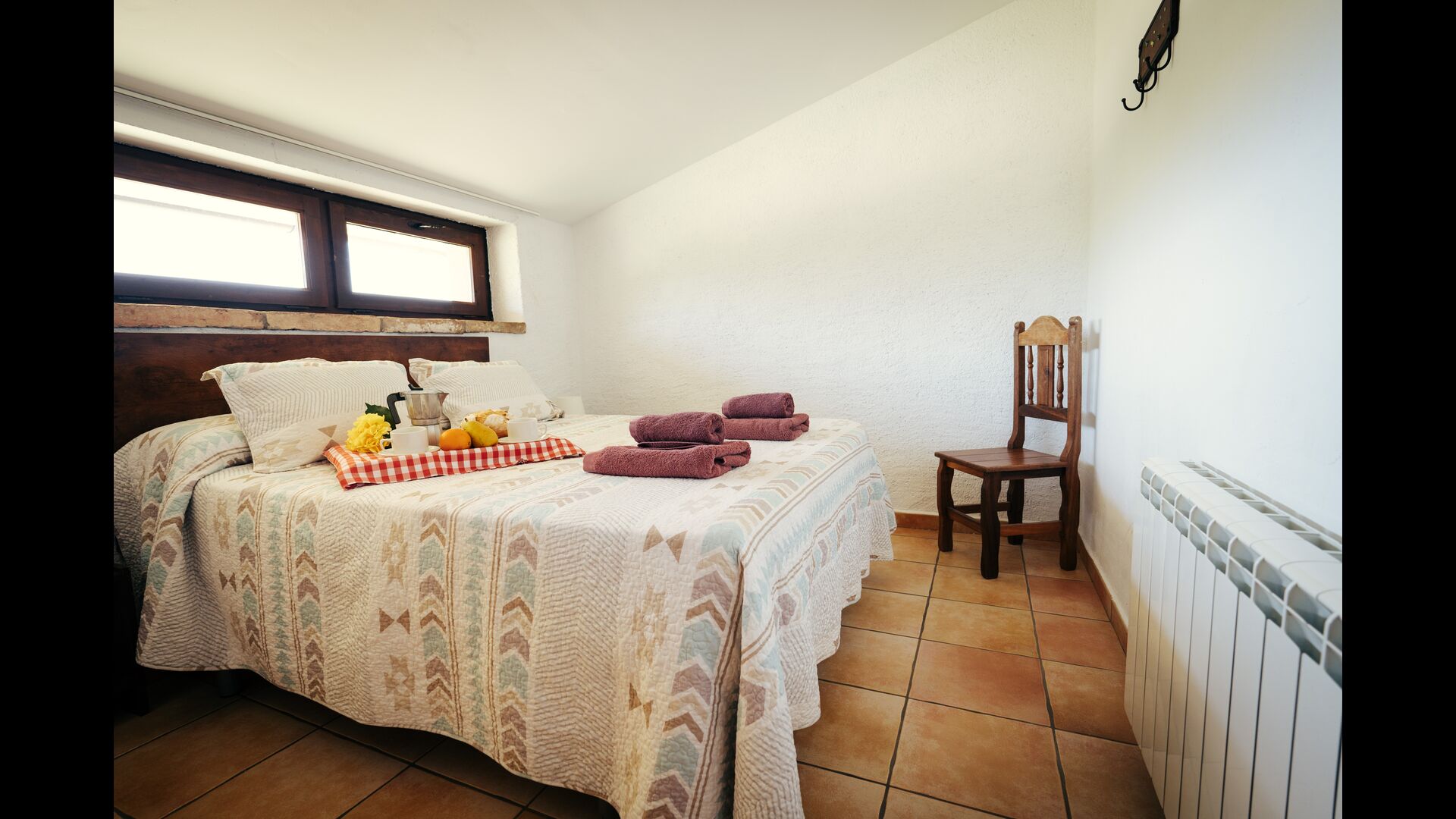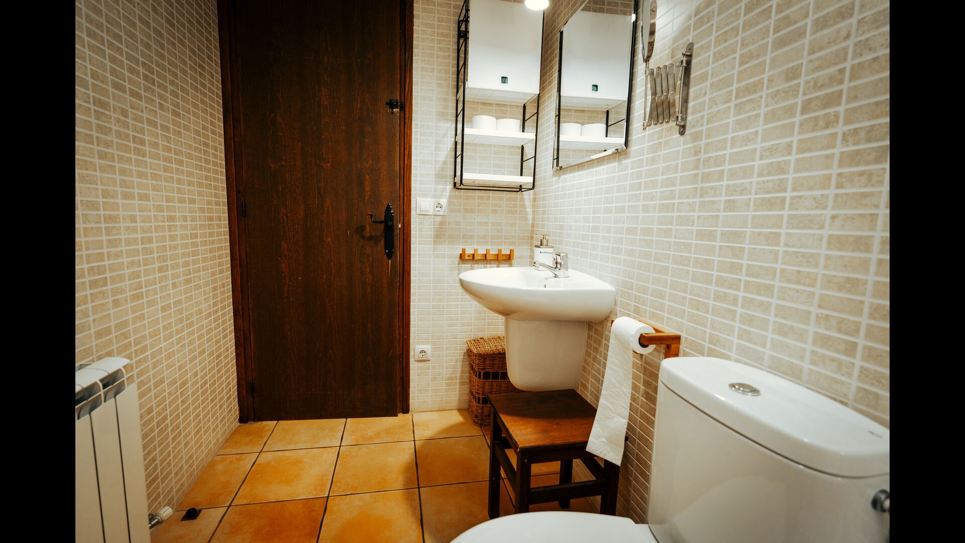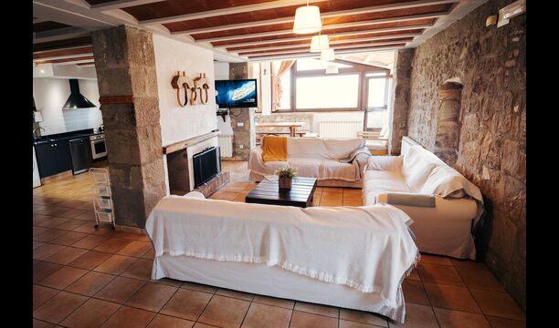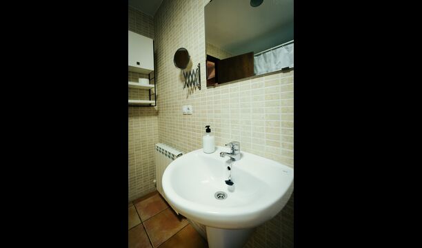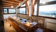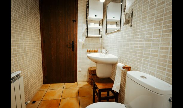 Au premier étage, les murs ont été enlevés et un vaste espace cuisine/salle à manger et salon a émergé, profitant de la lumière entrant par les fenêtres panoramiques, vous offrant le < strong>pleine vue sur le paysage avec les Pyrénéesau loin. Il y a une grande table à manger et une cuisine ouverte avec tous les commodités modernes. Près des escaliers, il y a deux chambres doubles qui partagent une salle de bain.