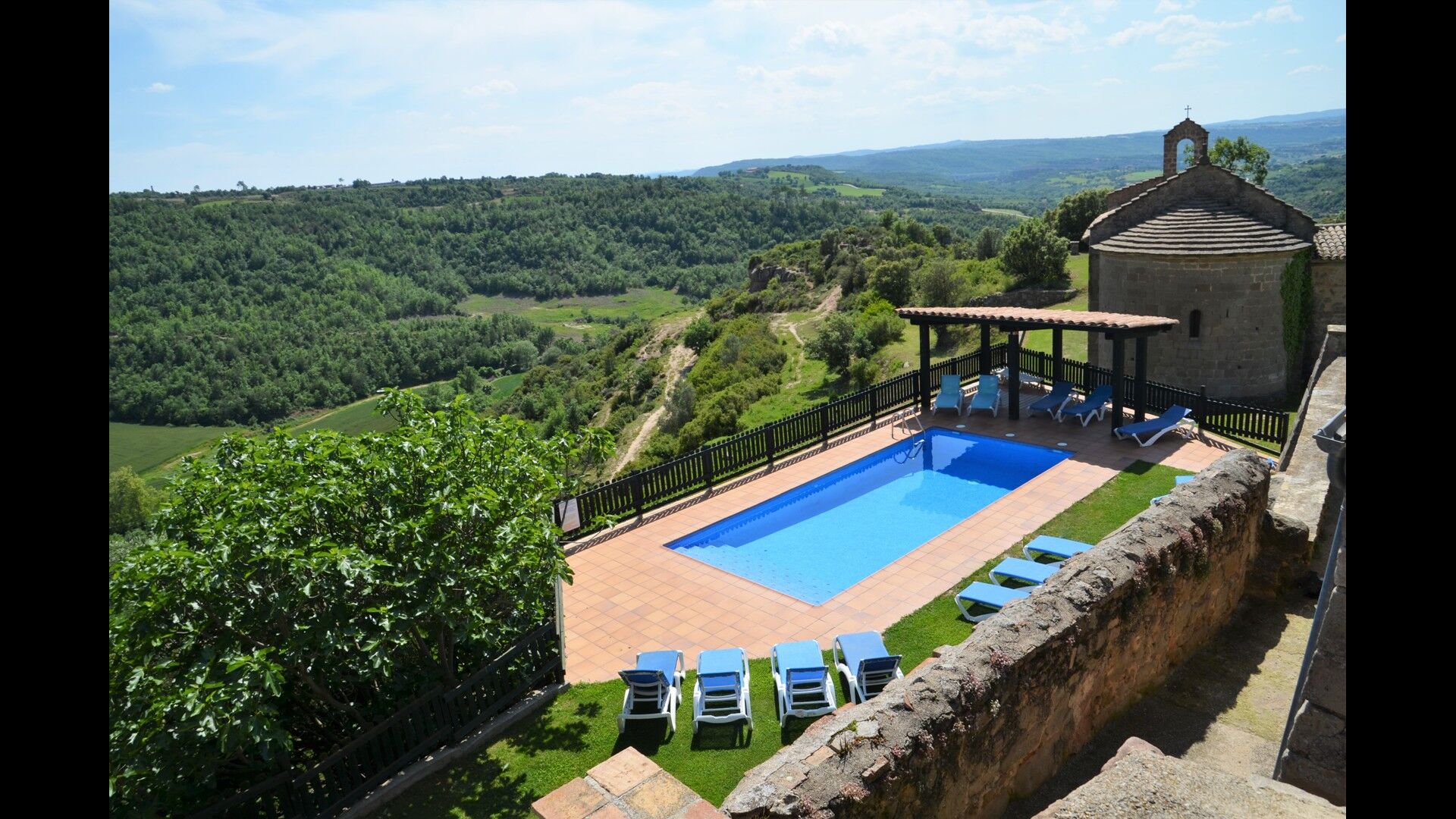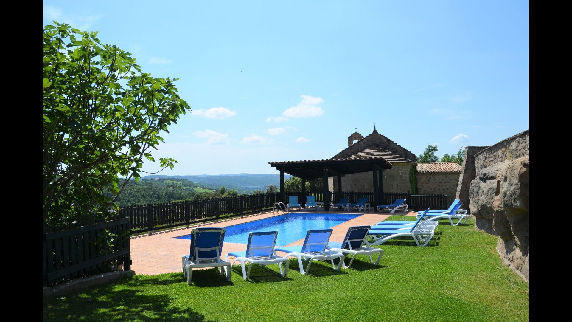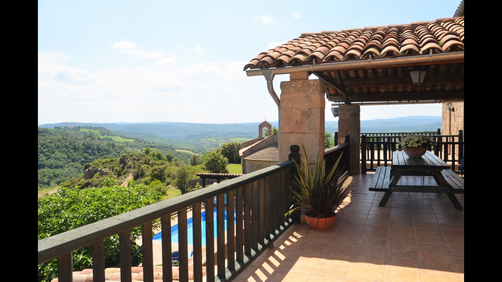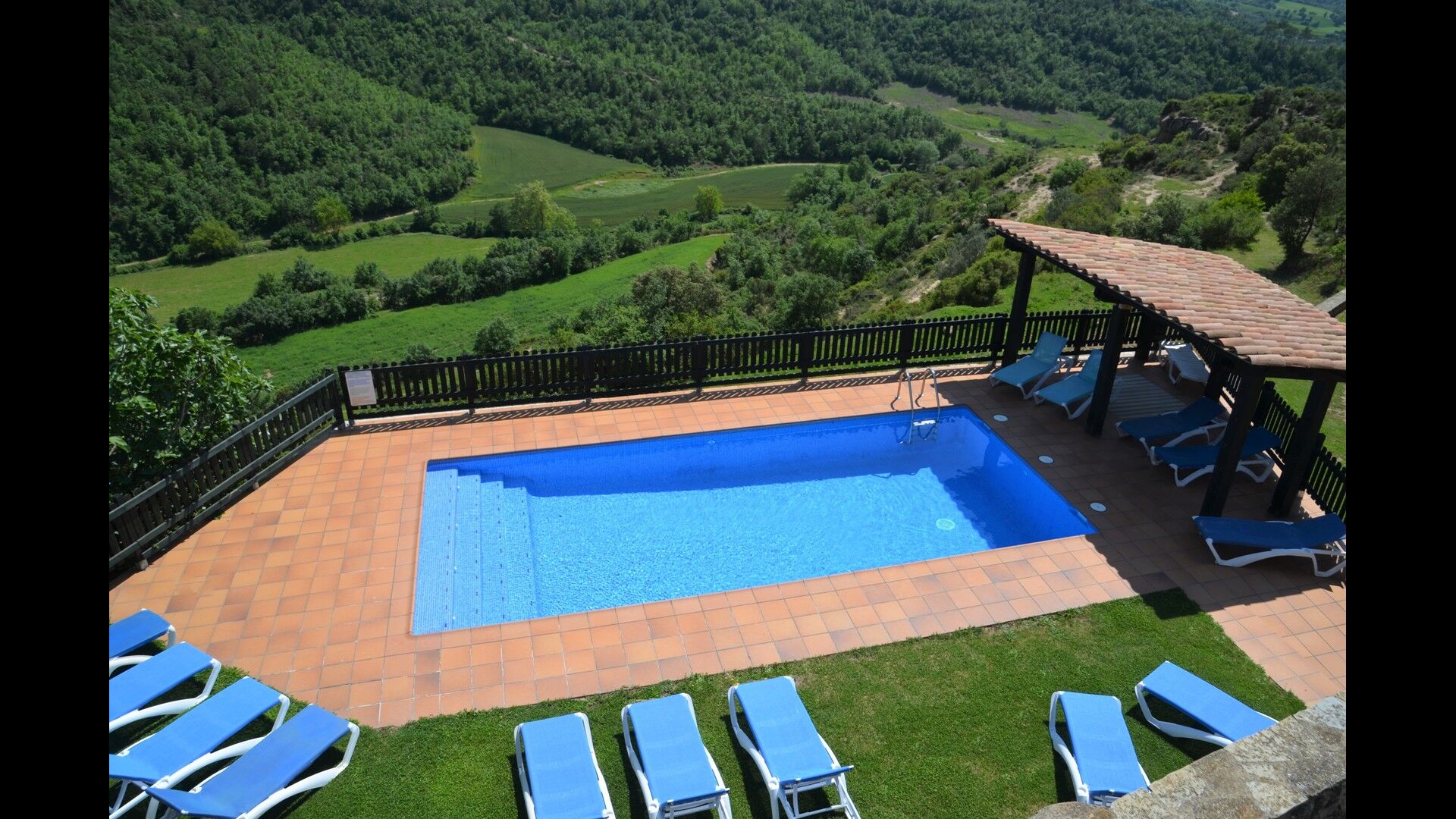 L'espace piscine de la maison de vacances se démarque. Premièrement, la piscine est grande avec une taille inférieure à 32 m2, et deuxièmement, la vue est indescriptible, car la piscine est égale au bord du plateau. Une clôture a été installée pour des raisons de sécurité. De plus, il y a des chaises longues pour tous les invités de la maison. Juste à côté de la piscine se trouve une terrasse couverte, qui sera probablement le point de rencontre des vacances. Il y a aussi une autre terrasse avec accès direct à la cuisine. Ici, vous pourrez déguster des plats faits maison pendant les longues et chaudes soirées catalanes.