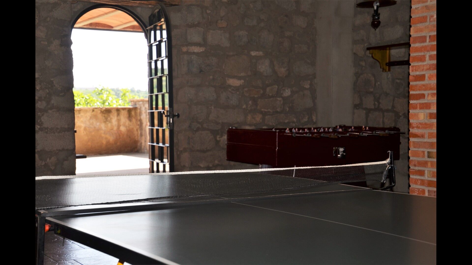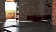 Au rez-de-chaussée, vous trouvez la salle de jeux et l'escalier menant aux étages supérieurs. Depuis elle, vous pouvez accéder à la zone de la piscine.