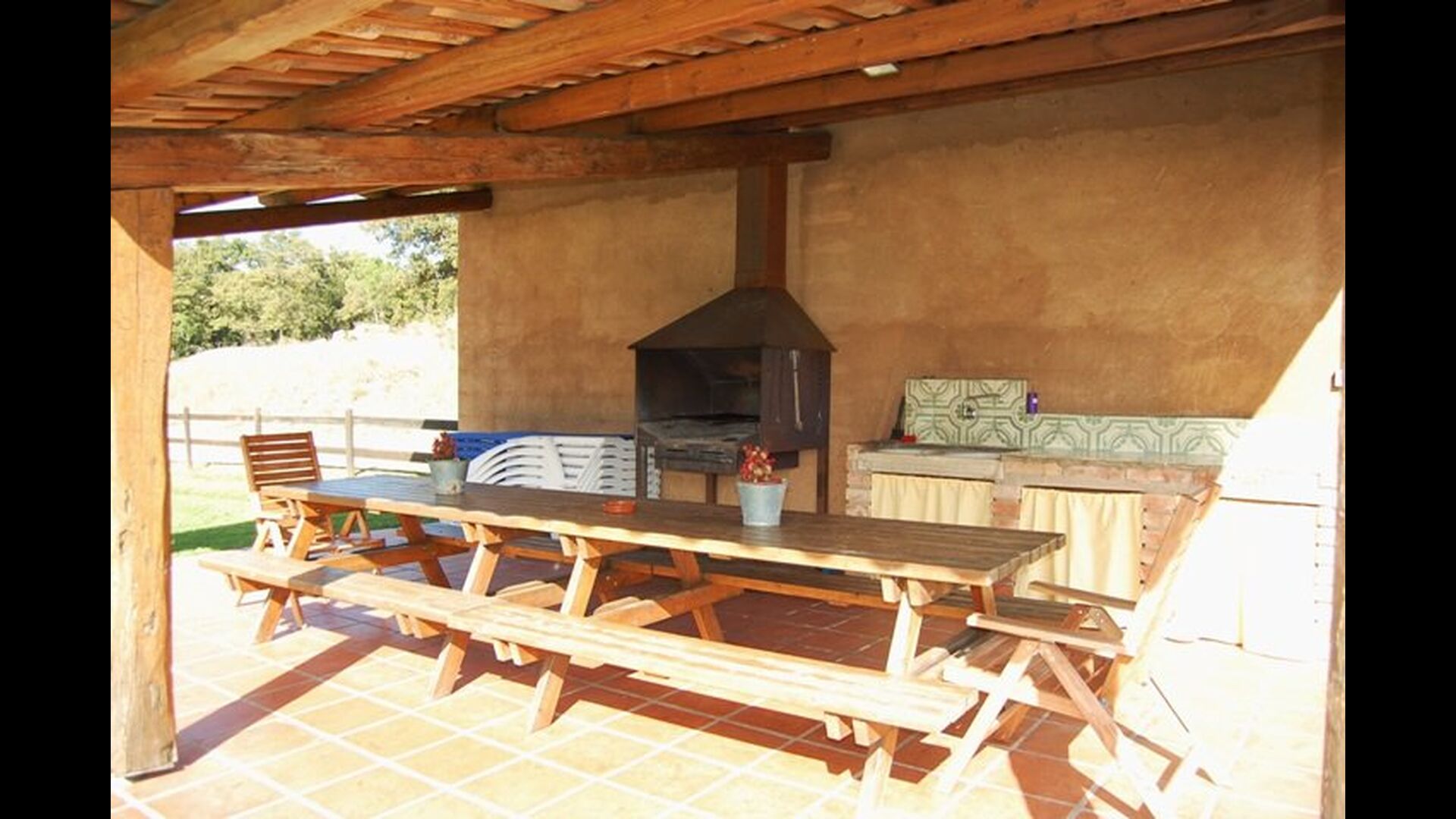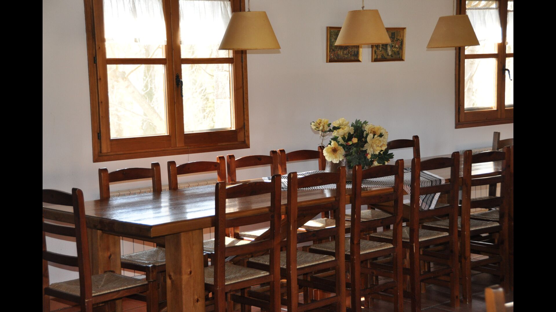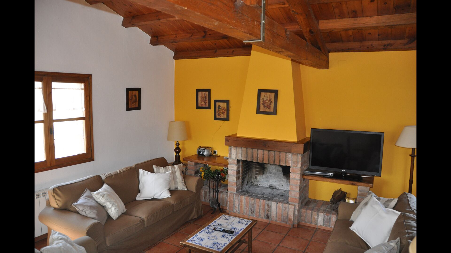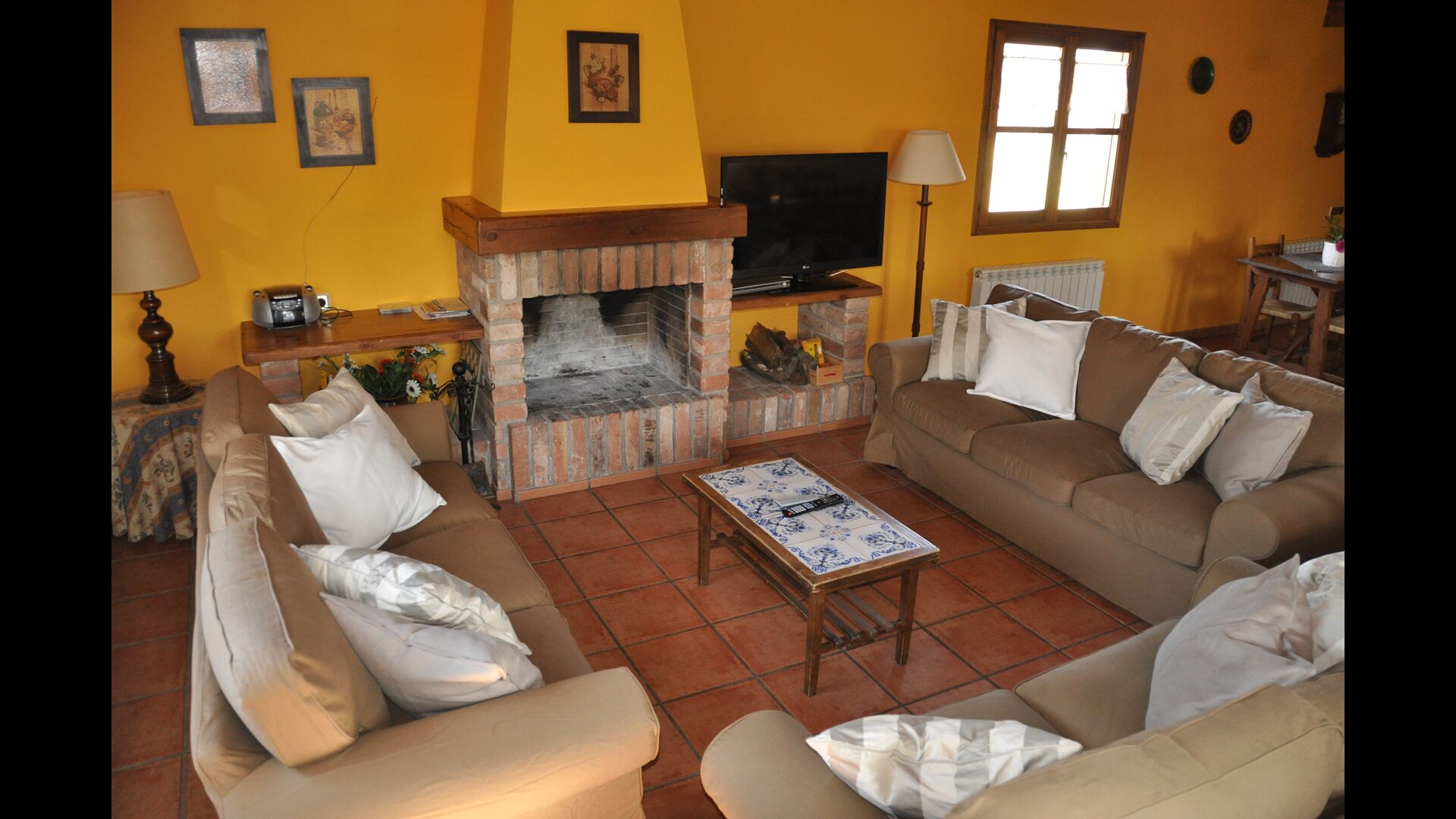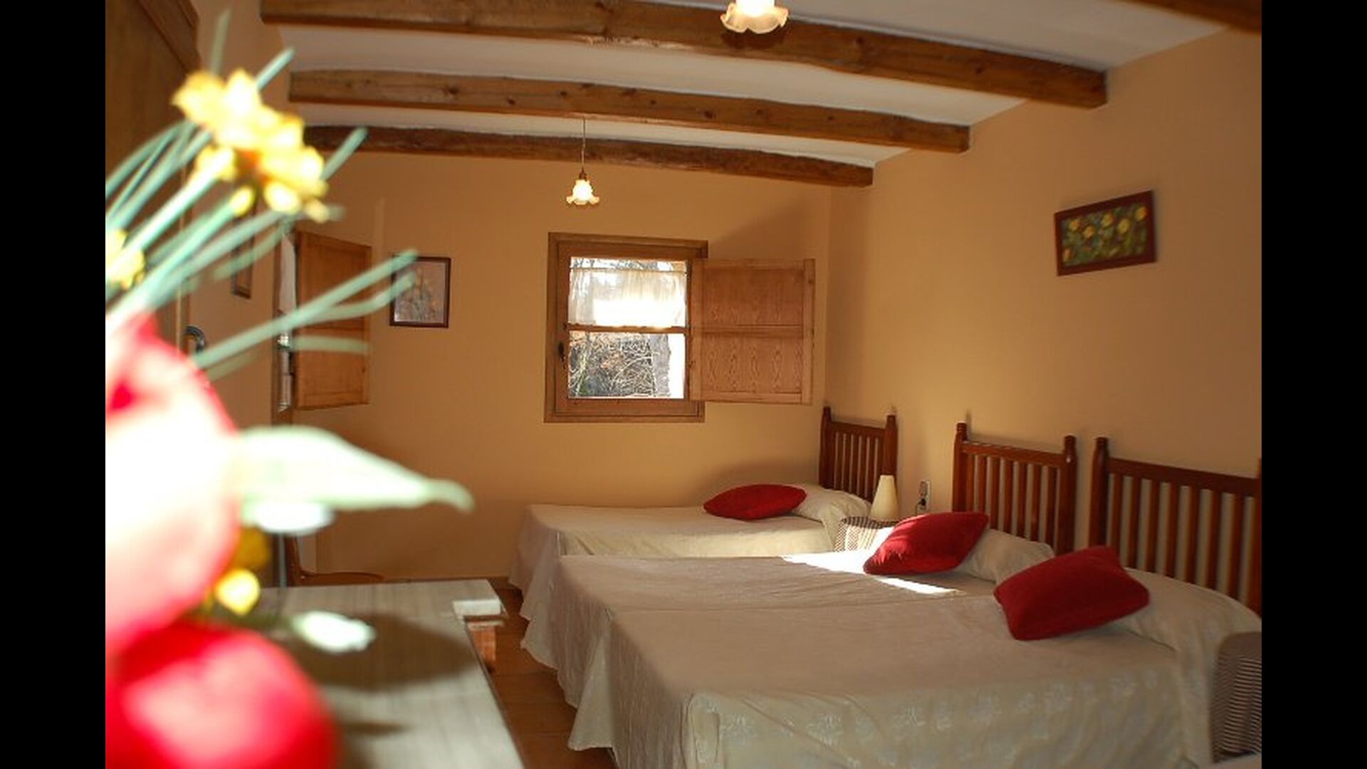 Les espaces intérieurs sont très agréables à l’extérieur. Après la très charmante entrée principale, vous êtes accueilli par la grande salle familiale de l'immeuble. Il y a tout d'abord une très belle et moderne cuisine catalane dotée d'un four, d'un lave-vaisselle, d'un micro-ondes et bien plus encore. Plus loin, il y a une longue et élégante table à manger pouvant accueillir tous les habitants de la maison. Juste à côté, il y a trois canapés rouges qui forment un coin très confortable. Le plafond dans toute la maison est très joli avec des poutres en bois. Les chambres sont comme le reste de la maison très grandes et spacieuses. Les 5 chambres doubles sont très grandes et élégantes, tandis que la chambre pour 4 personnes est parfaite pour une chambre pour enfants. Il y a 4 salles de bain très soignées et joliment décorées. Au dernier étage, vous trouverez une salle de jeux avec baby-foot et tennis de table.