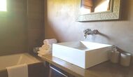 La petite maison est climatisée, tandis que les grandes maisons ont des ventilateurs dans toutes les chambres.