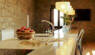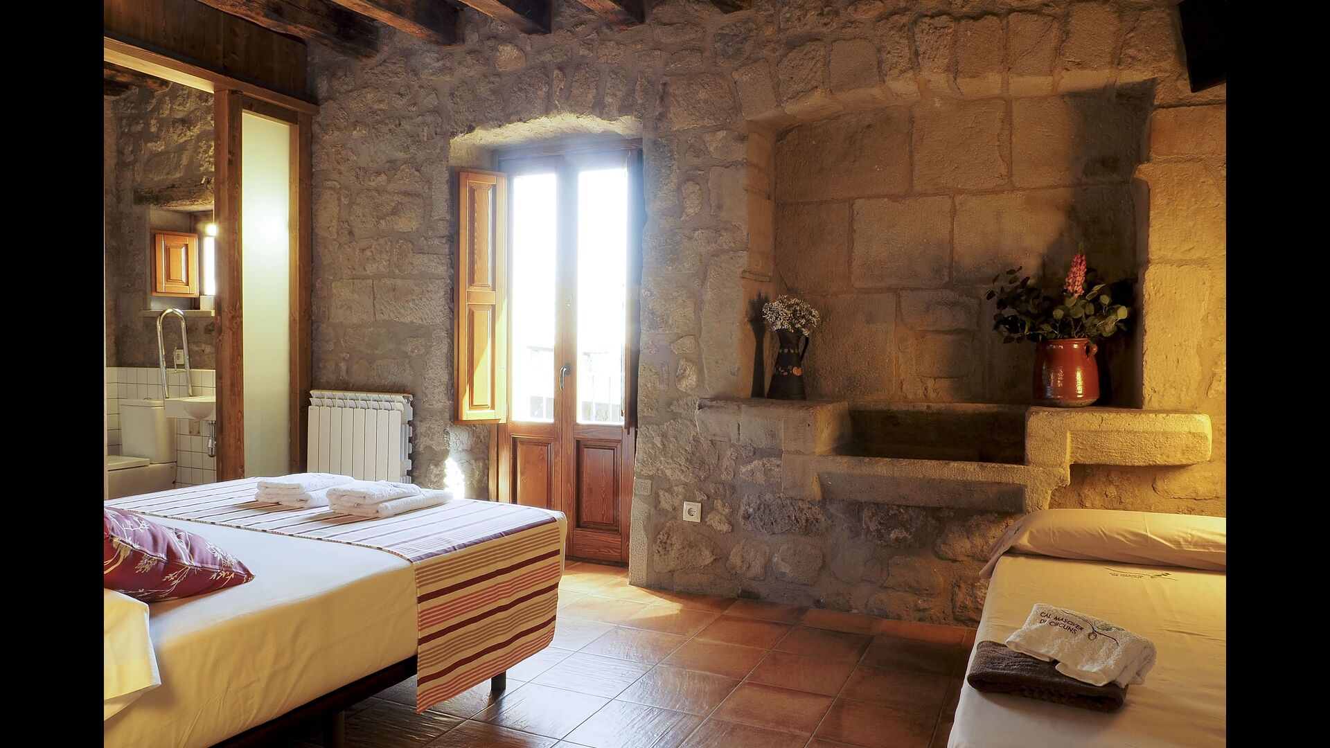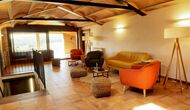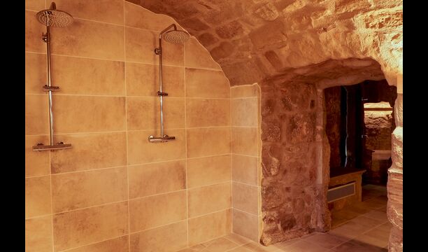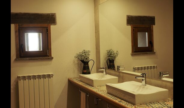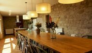 La grande cuisine entièrement équipée est située au rez-de-chaussée. Son espace ouvert en fait un endroit idéal pour préparer des repas copieux pour tout le groupe. Dans le prolongement de la cuisine se trouve la salle à manger, avec une longue table en bois. La zone permet à tout le groupe de dîner ensemble. À côté de la cuisine et de la salle à manger, se trouve le salon spacieux avec des canapés confortables et une cheminée chaleureuse, au rez-de-chaussée. Huit des chambres doubles sont également situées au rez-de-chaussée. Chaque chambre est équipée d'une télévision et d'une salle de bains privative.