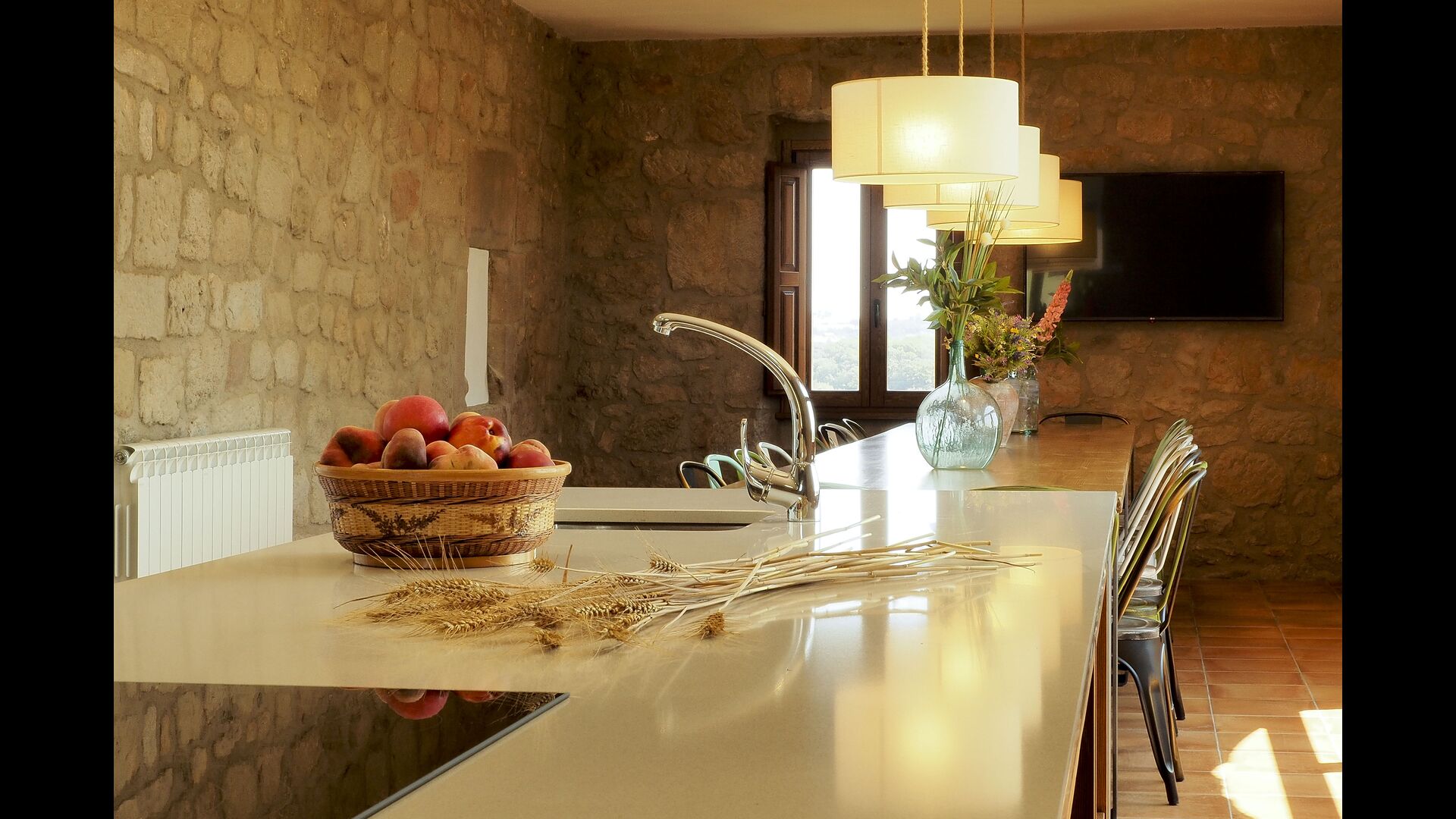 Masia de Circudia est une authentique maison de campagne catalane, pouvant accueillir jusqu'à 25 personnes. La maison date de 1635 et les murs de pierre calcaire de la ferme ont vu diverses générations d'agriculteurs travailler dans l'agriculture et l'élevage ; sur le chemin du paradis des vacances, vous passerez même devant quelques fermes. Aujourd'hui, la maison a été entièrement rénovée à l'intérieur, mais la charmante structure extérieure d'origine a été préservée. Masia de Circudia accueille les familles et les groupes d'amis qui souhaitent passer des jours de détente dans une nature magnifique.