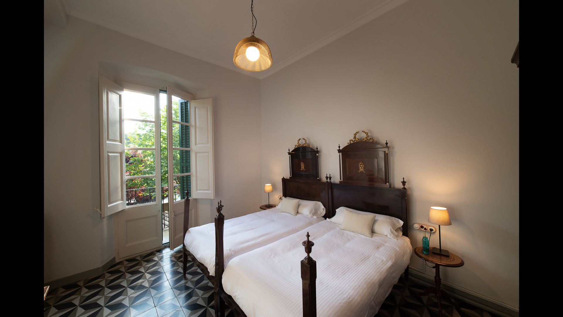 Il y a 11 chambres réparties sur les deux étages, qui sont le premier et le deuxième étage, car le rez-de-chaussée est inutilisé. Toutes sont des chambres doubles spacieuses. Toutes les chambres sont similaires à des suites plus petites en raison de leur grande taille. La décoration est élégante et classique, et la plupart des chambres ont des balcons. Deux des chambres sont des chambres d'enfants. Sept des chambres disposent d'une salle de bains privative, tandis que les autres partagent deux salles de bains spacieuses.