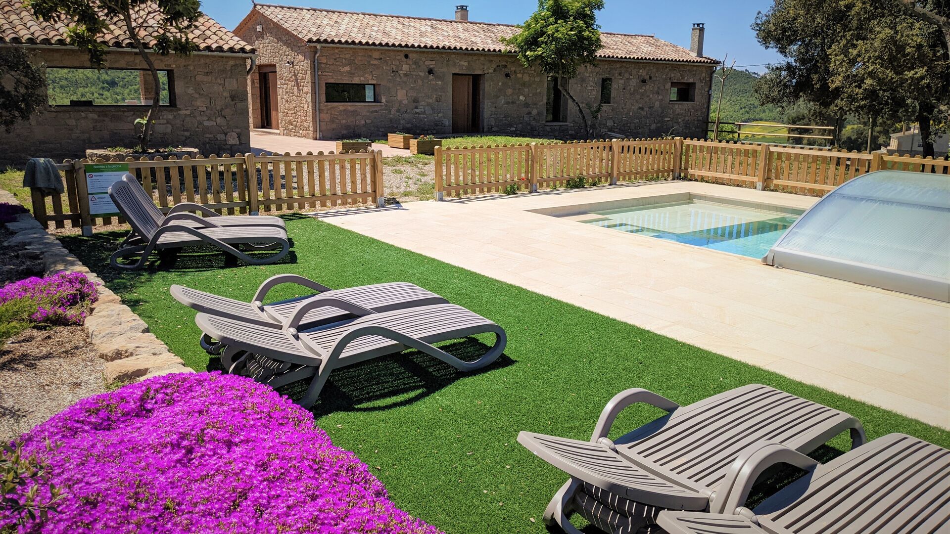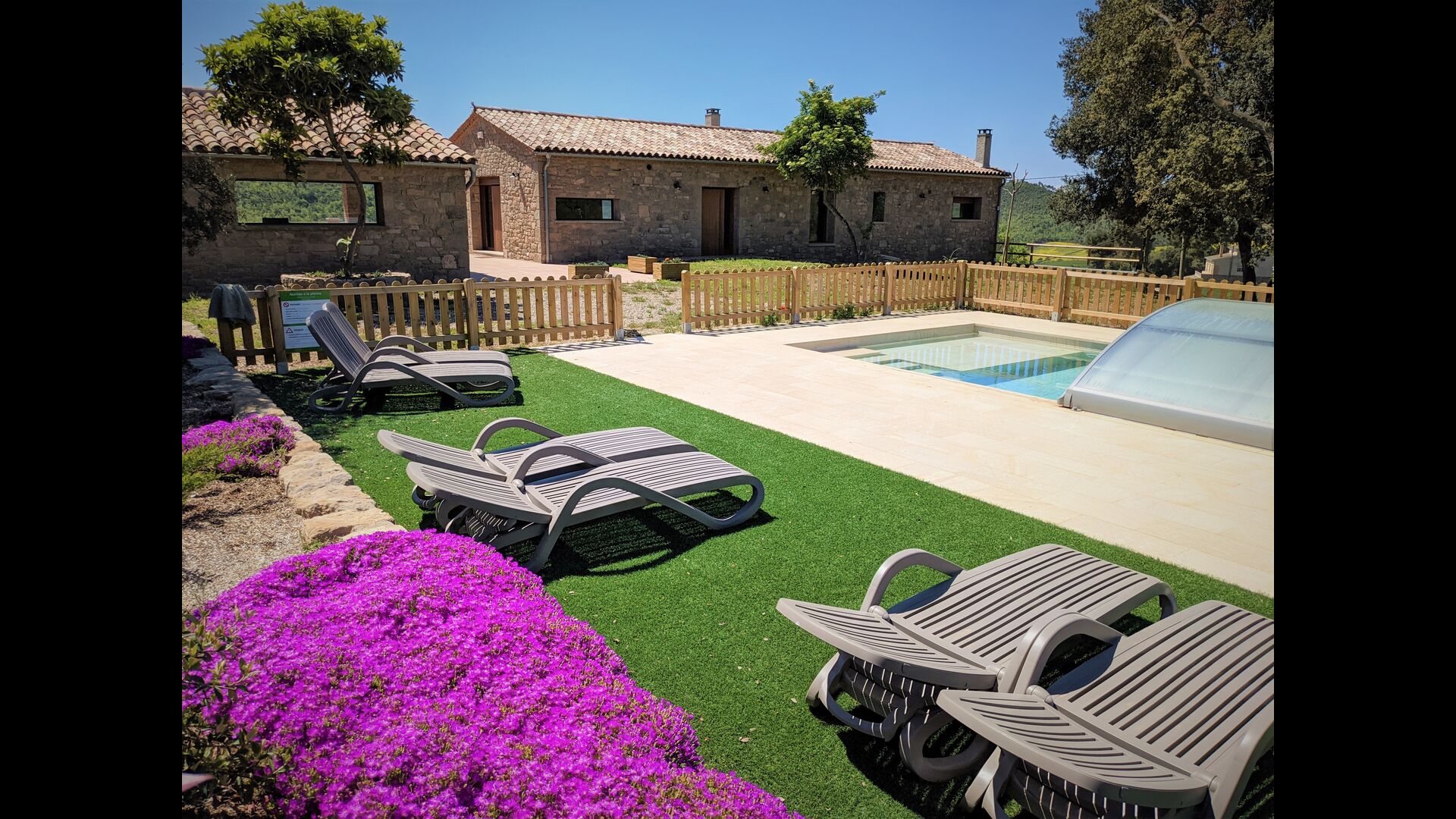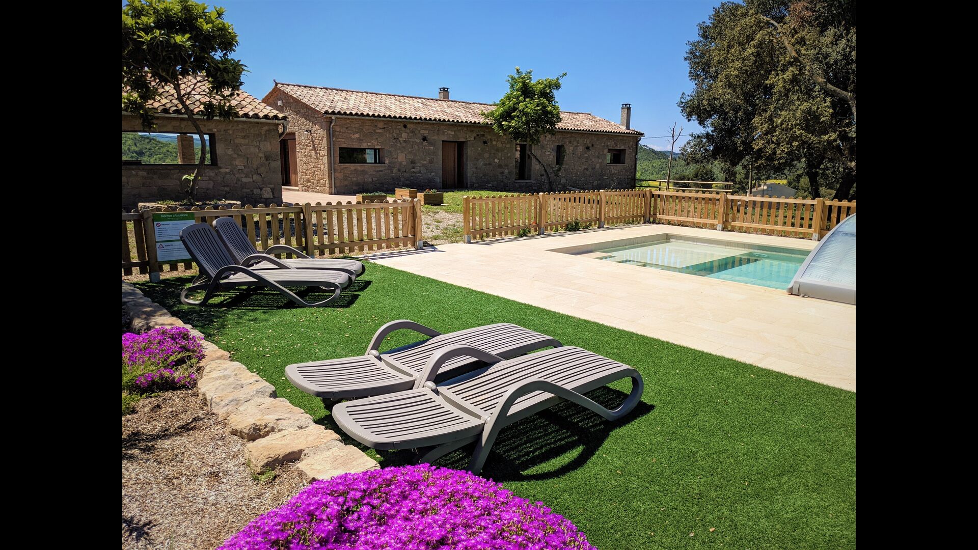 La maison est également très adaptée aux enfants, en particulier aux petits enfants, avec des espaces dédiés avec de nombreux jouets, un bac à sable, des balançoires etun trampoline, pour n'en citer que quelques-uns. Et, bien sûr, la belle piscine est clôturée pour plus de sécurité.