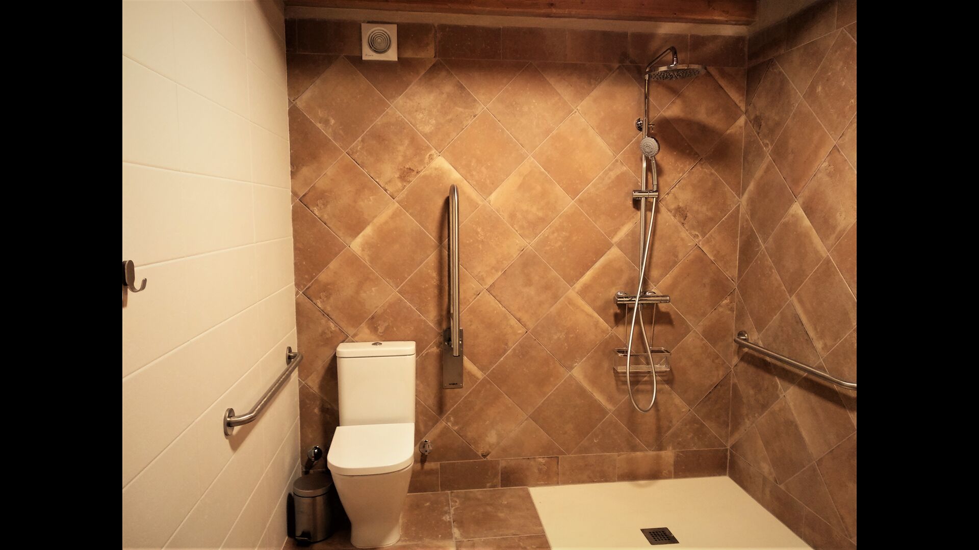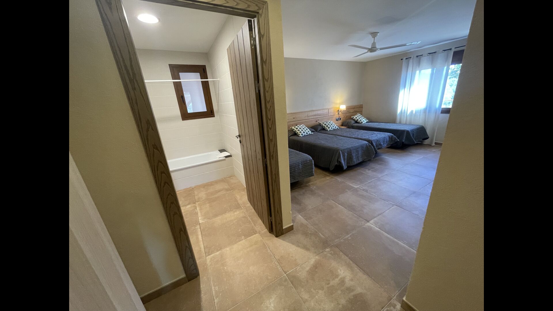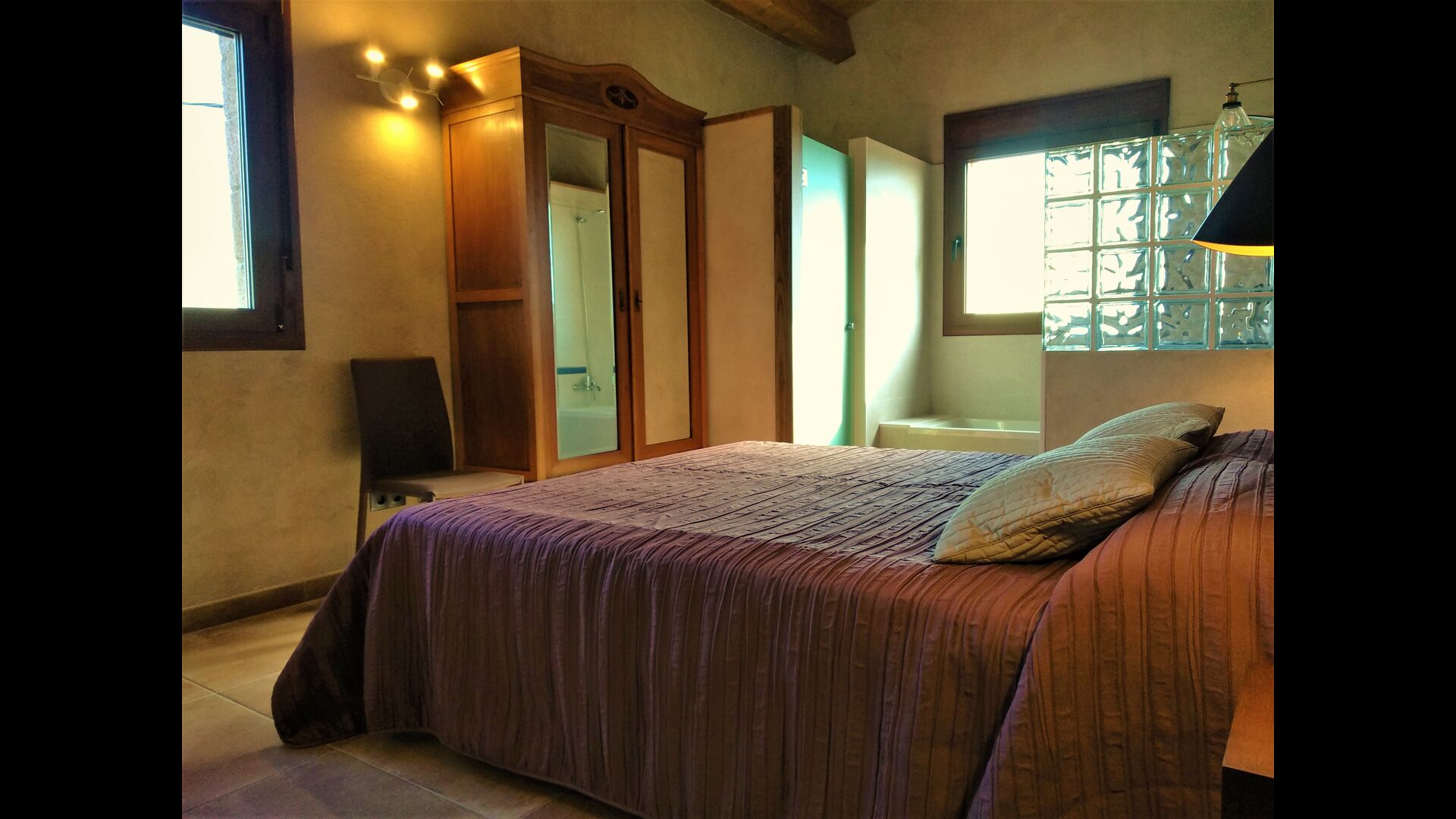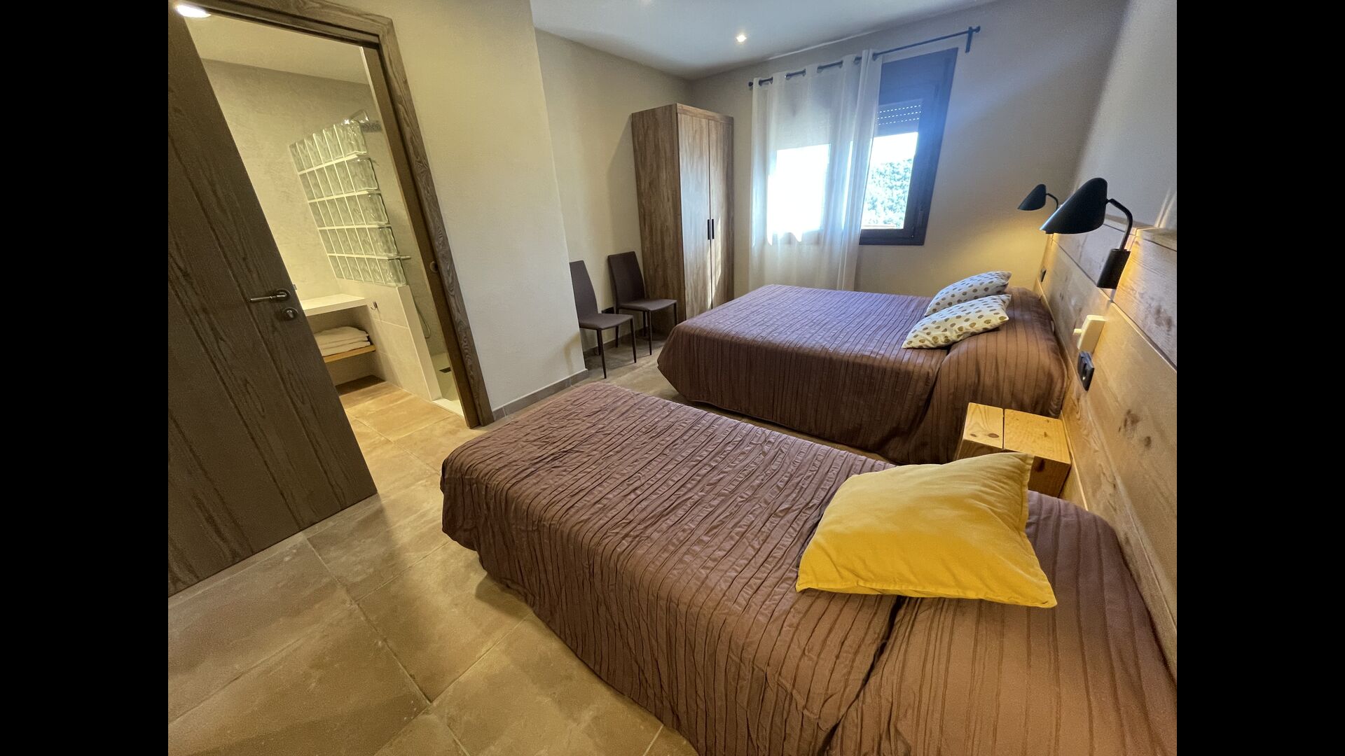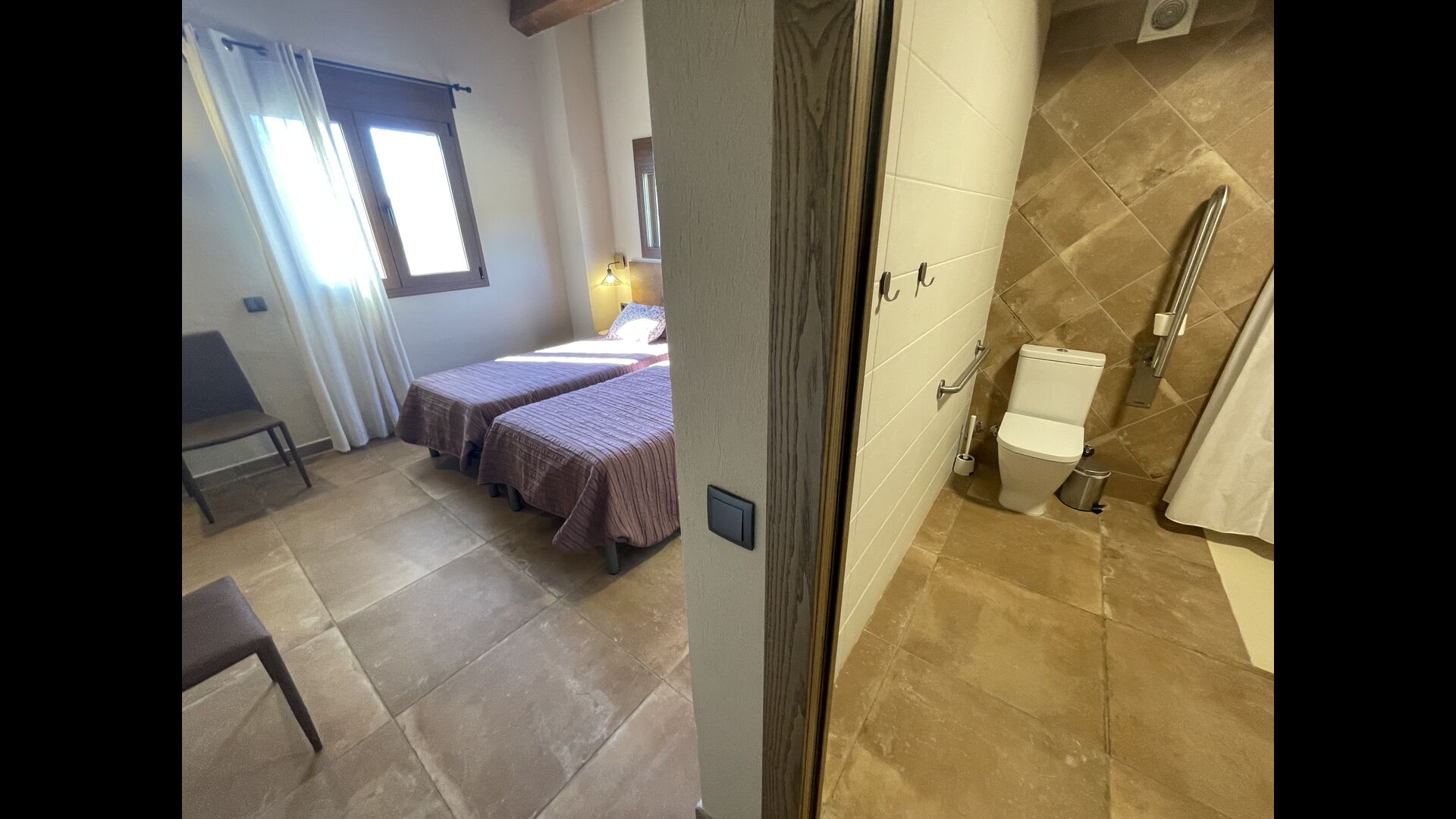 Les chambres toutes disposent de salles de bains privatives et de grands lits – le rendre convivial pour les personnes âgées et pour ceux qui sont autrement gênés dans la marche ; il y a des entrées de plain-pied dans toutes les zones de la maison. Il y a une chambre entièrement adaptée pour les personnes à mobilité réduite, avec une salle de bain adaptée, des lits articulés et des stores automatiques . Toutes les salles de bains disposent d'une douche – et certaines disposent même d'une baignoire, directement attenante à la chambre elle-même ! Toutes les chambres sont climatisées en été et les sols sont chauffés pendant les mois d'hiver.