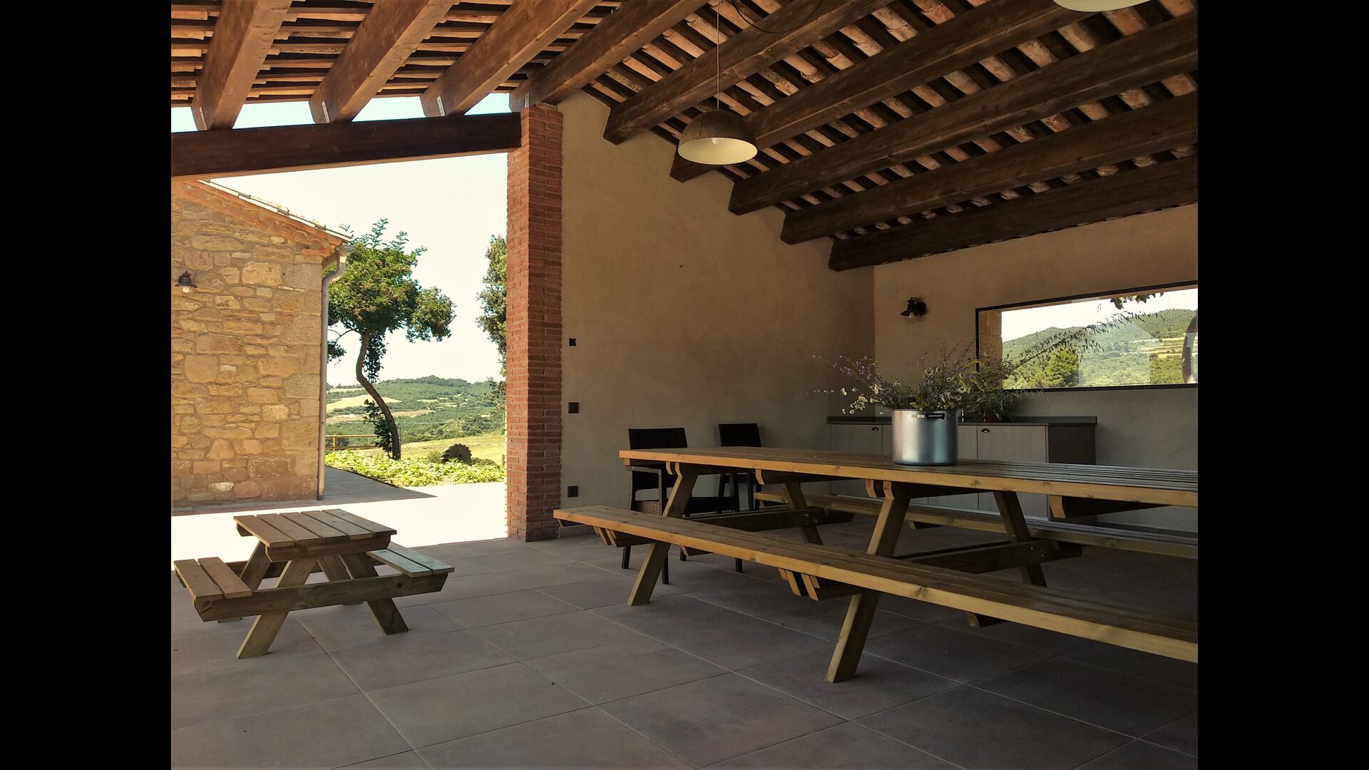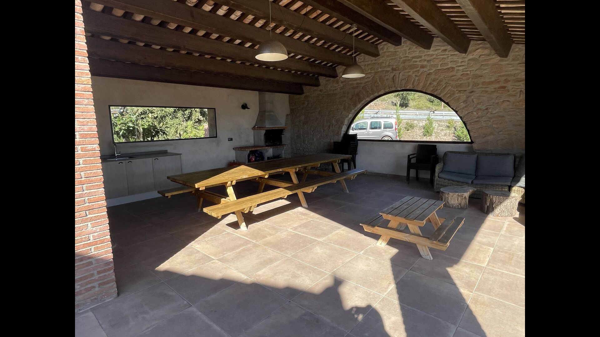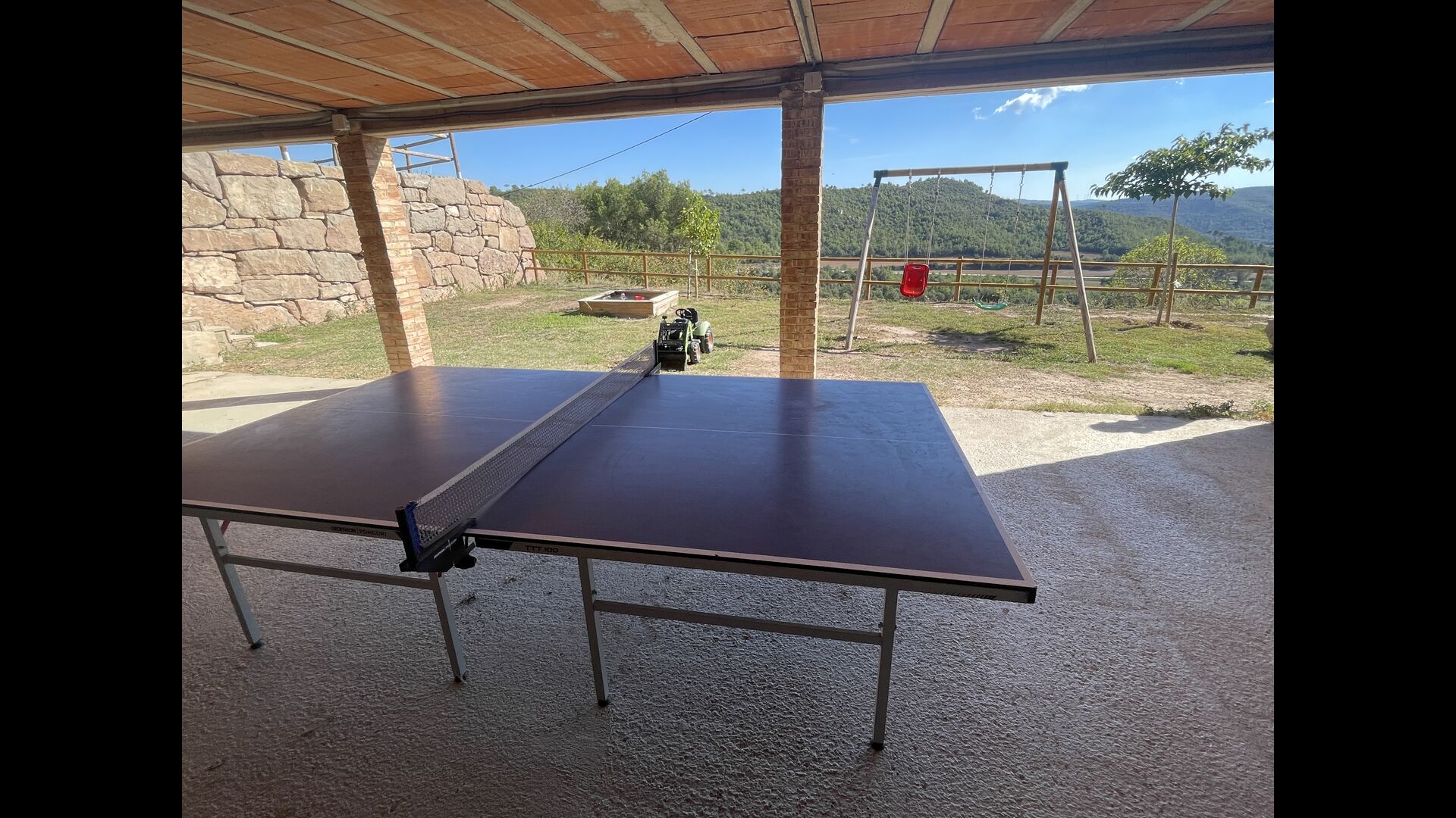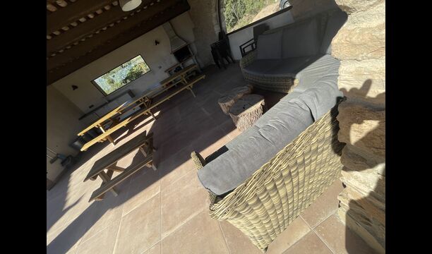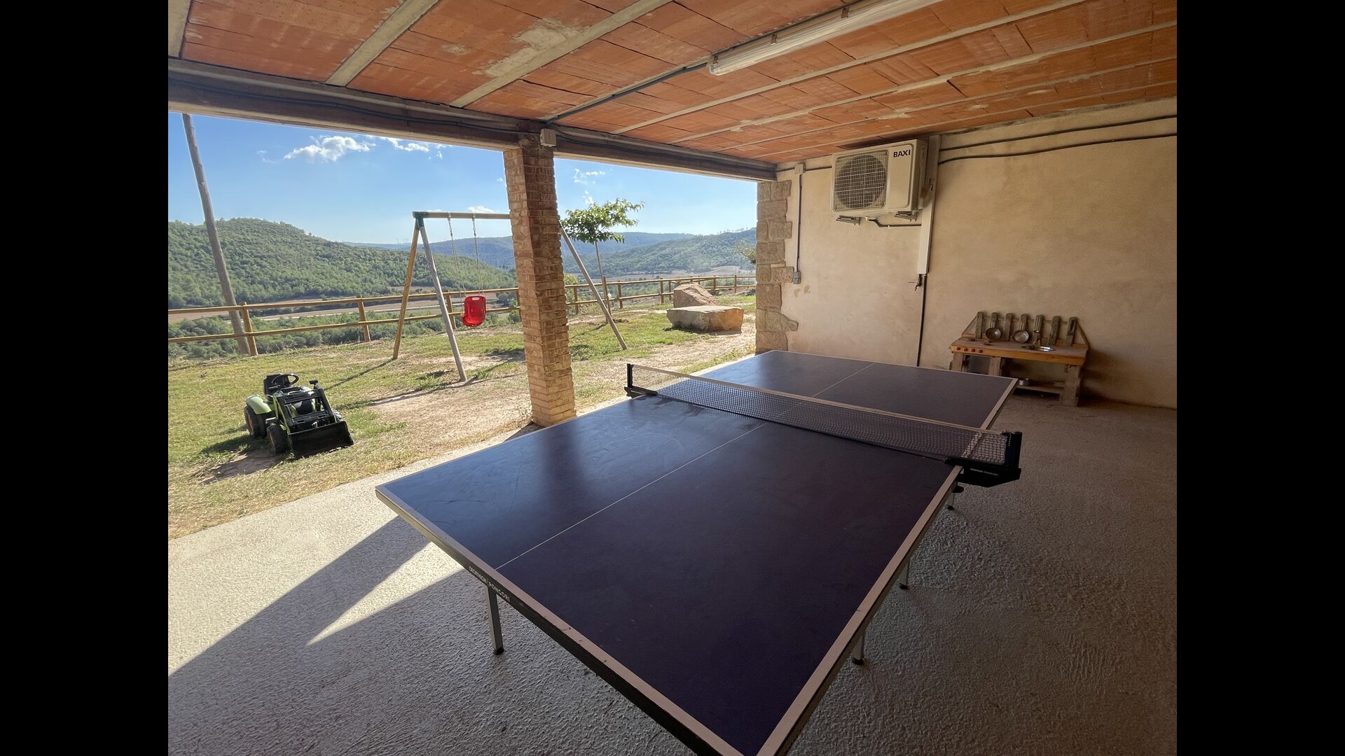 À l'extérieur de la maison principale, il y a un espace barbecue/patio, où vous trouverez également un long banc de dîner et des canapés, une mini cuisine avec un évier et l'un des deux porches, surplombant la magnifique vallée en contrebas. La propriété dispose également de nombreuses installations pour les enfants ; Des balançoires, un trampoline, un bac à sable/aire de jeux et - que vous soyez jeune ou vieux - une table de tennis pour s'amuser l'après-midi en famille.