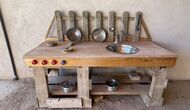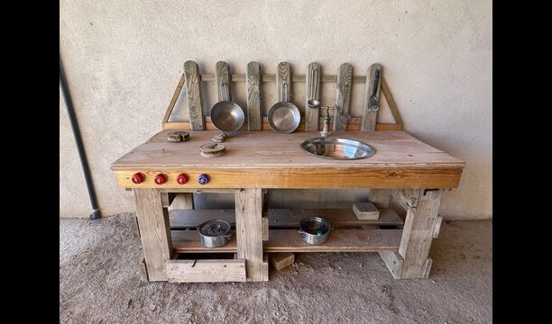 Juste à côté la de piscine dans la zone, il y a une table de pelouse avec des chaises, si les parents souhaitent s'asseoir un peu à l'écart de la zone, mais toujours les enfants en vue et à proximité.
