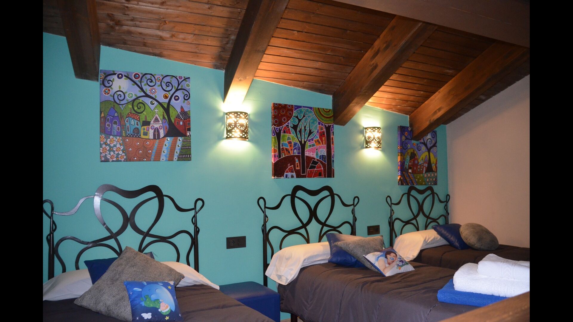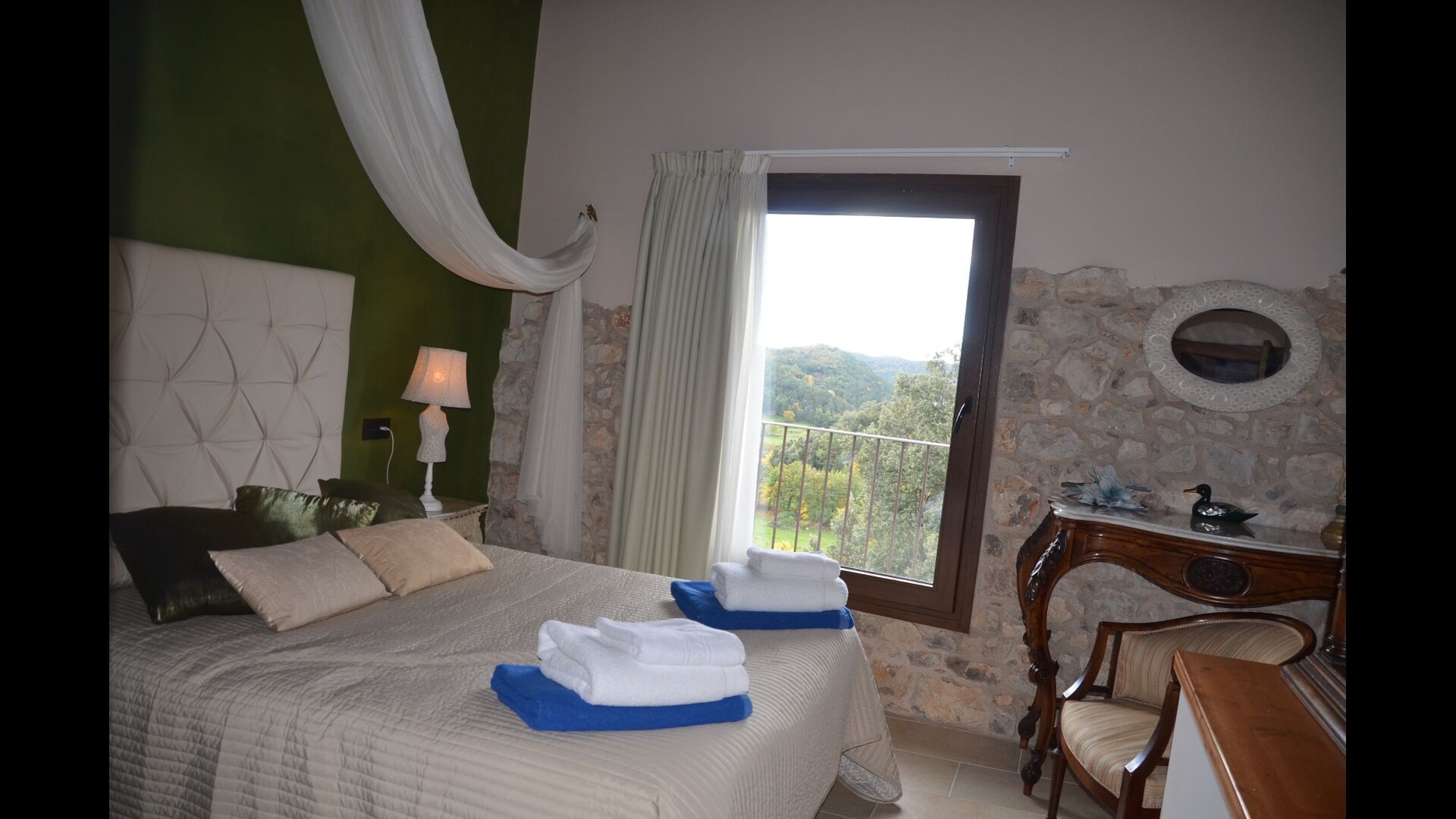 The holiday home Era is one of two apartments located in the large, antique main building. Both apartments cover two floors. The holiday apartment Era can host 4 (+2) guests. The property is high-quality and is built with traditional Catalan stonewalls, which gives a very beautiful, authentic look. The holiday apartment has two bedrooms: one of the bedrooms is equipped with a double bed, the other with two twin beds. Both bedrooms have an adjoining modern bathroom.
