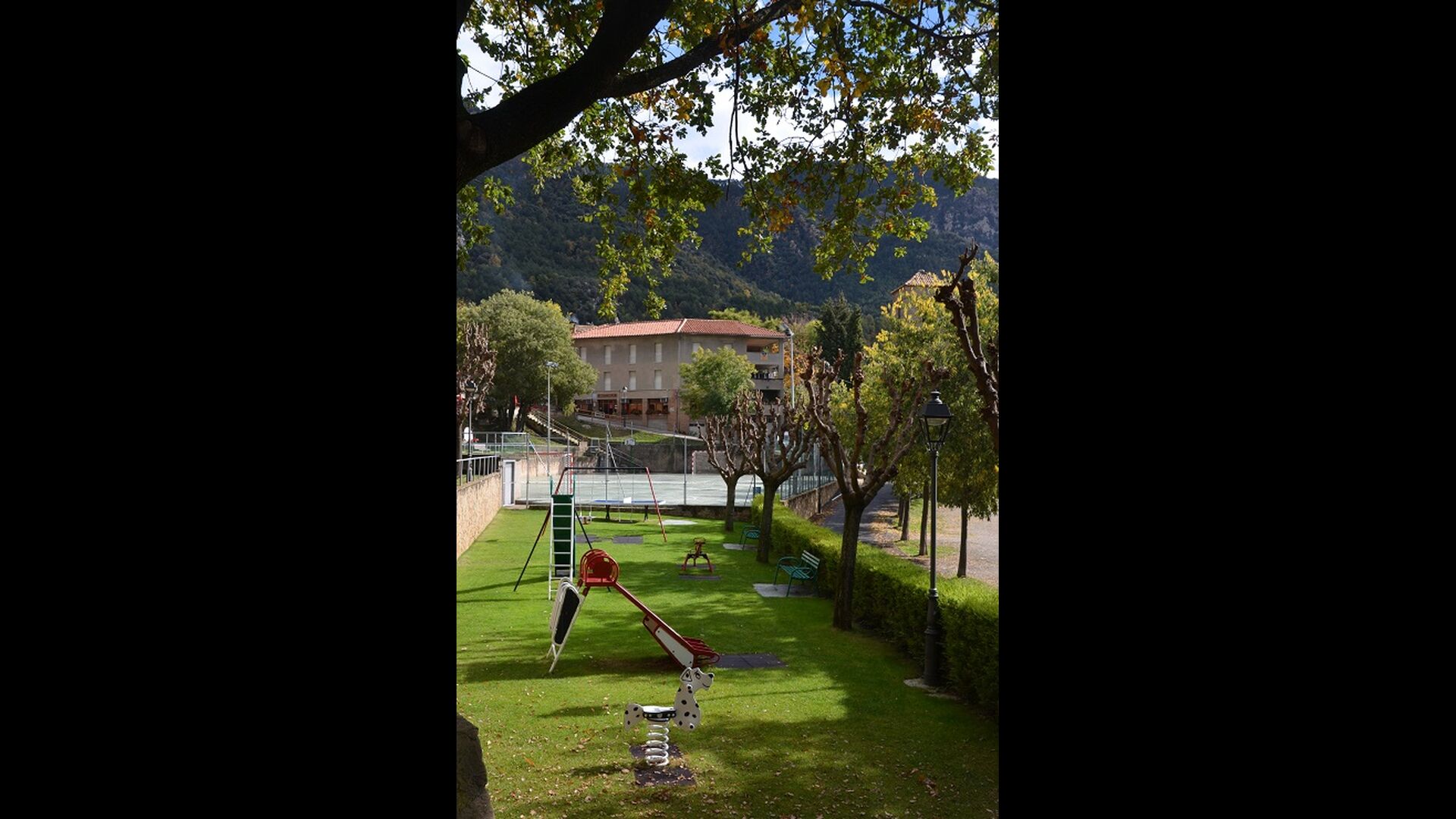 Vila Mas Vistador has a fantastic view which looks over the authentic small town, located at the foot of the estate. The cozy town has two restaurants, a local church, a large playground and a football pitch and can be reached by foot within 2-3 minutes by using the stairway that leads through the garden. The garden is divided into four different levels, one level with the tennis court, one with the playground, one with a chill-out area and finally the fabulous pool area. The holiday homes are located at the very top.