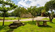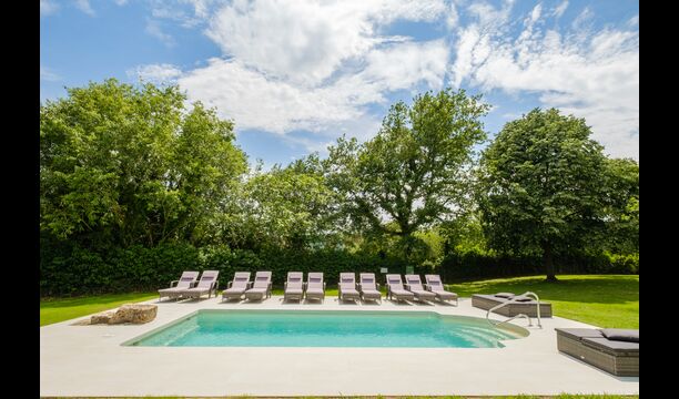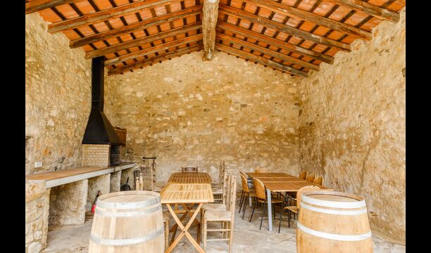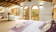 La maison rustique et charmante est avantageusement placée sur une petite montée dans le jardin de la propriété. Il dispose de 8 chambres ; 5 dont sont des chambres doubles et 3 d'entre elles sont des chambres quadruples (chacune des 3 ayant un canapé-lit 150cm). 6 des 8 chambres disposent d'une salle de bain attenante et les 2 chambres restantes partagent une salle de bain.