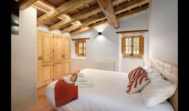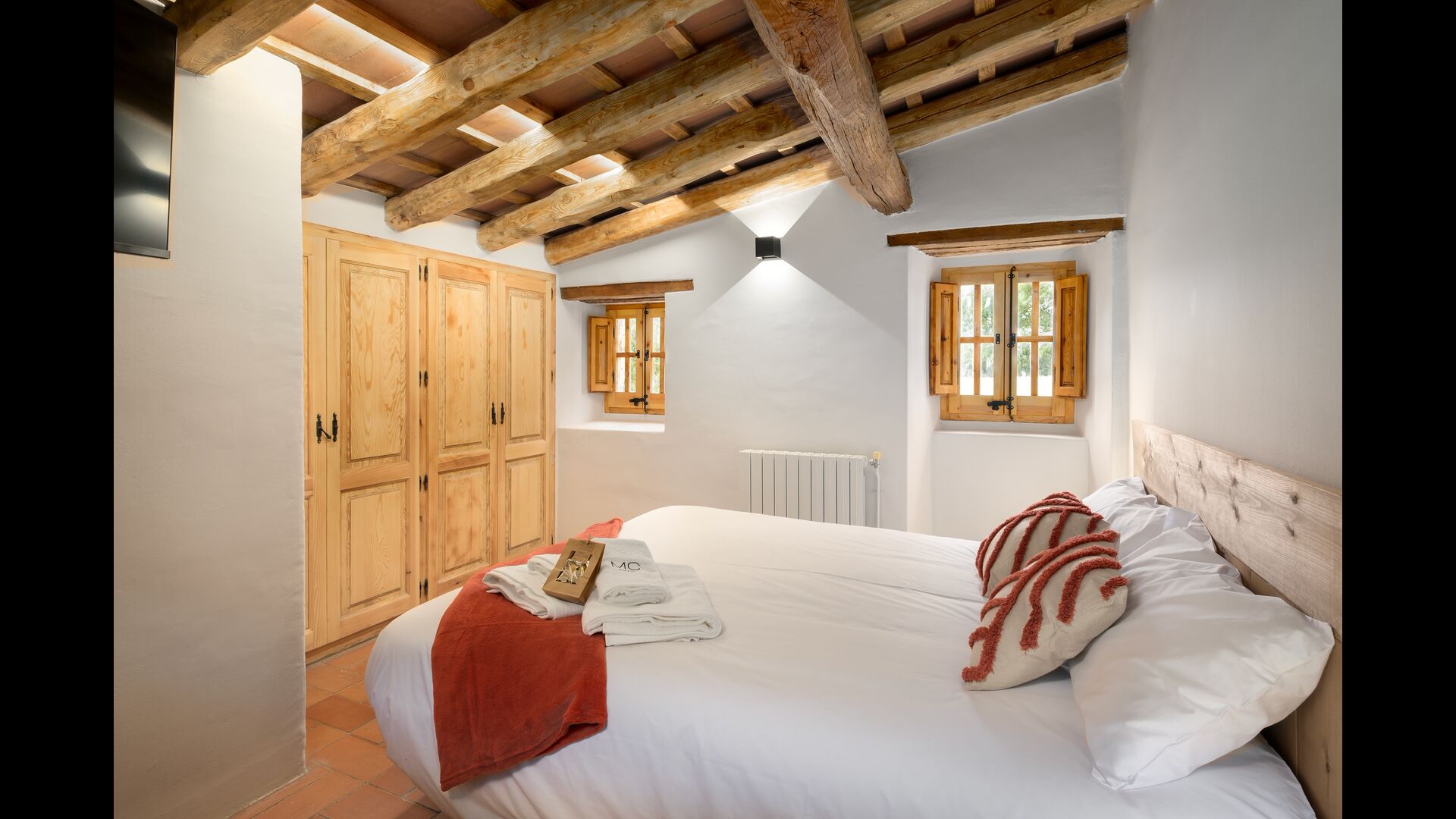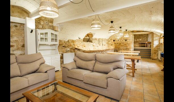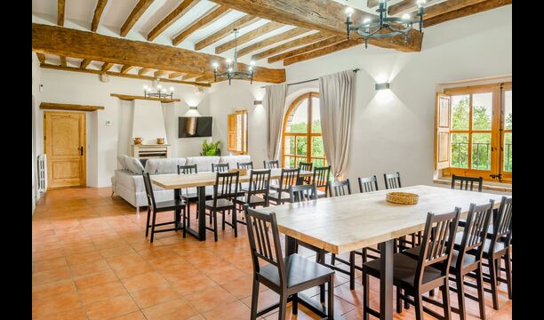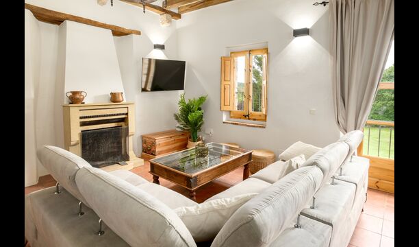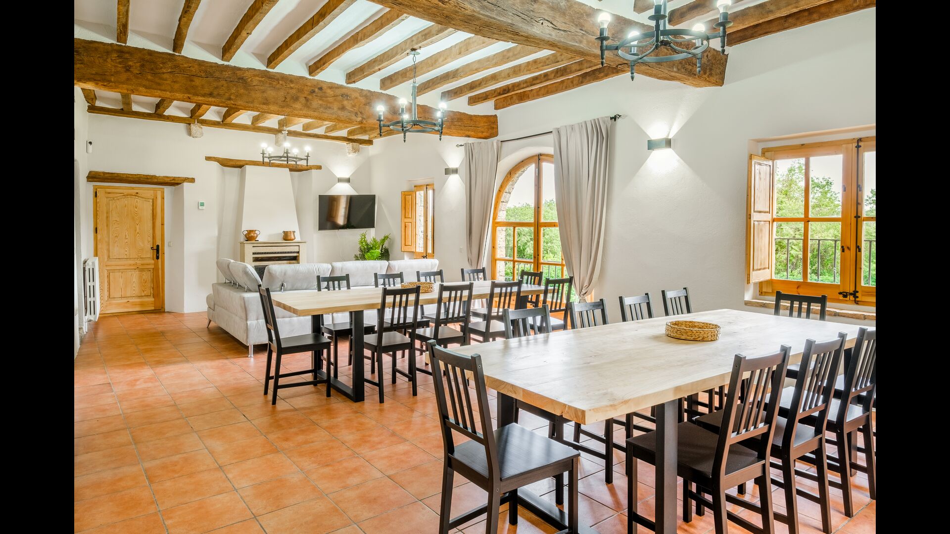 En montant à l'étage depuis le hall d'entrée, vous trouverez le salon de la maison – venant avec 2 grandes tables, chacune ayant 10 chaises respectivement, parfaitement adaptées pour le petit-déjeuner, le déjeuner et le dîner. Toujours dans le salon, vous trouverez un coin avec une télévision murale à écran plat et un canapé de taille moyenne, une table basse et une cheminée. De cette partie de la maison, vous avez une superbe vue sur les zones environnantes sur et à proximité de Cubis.