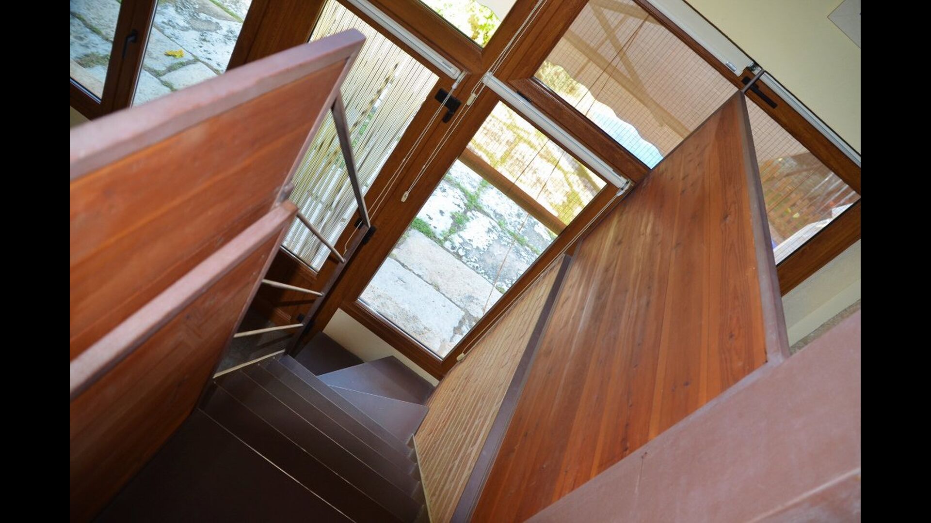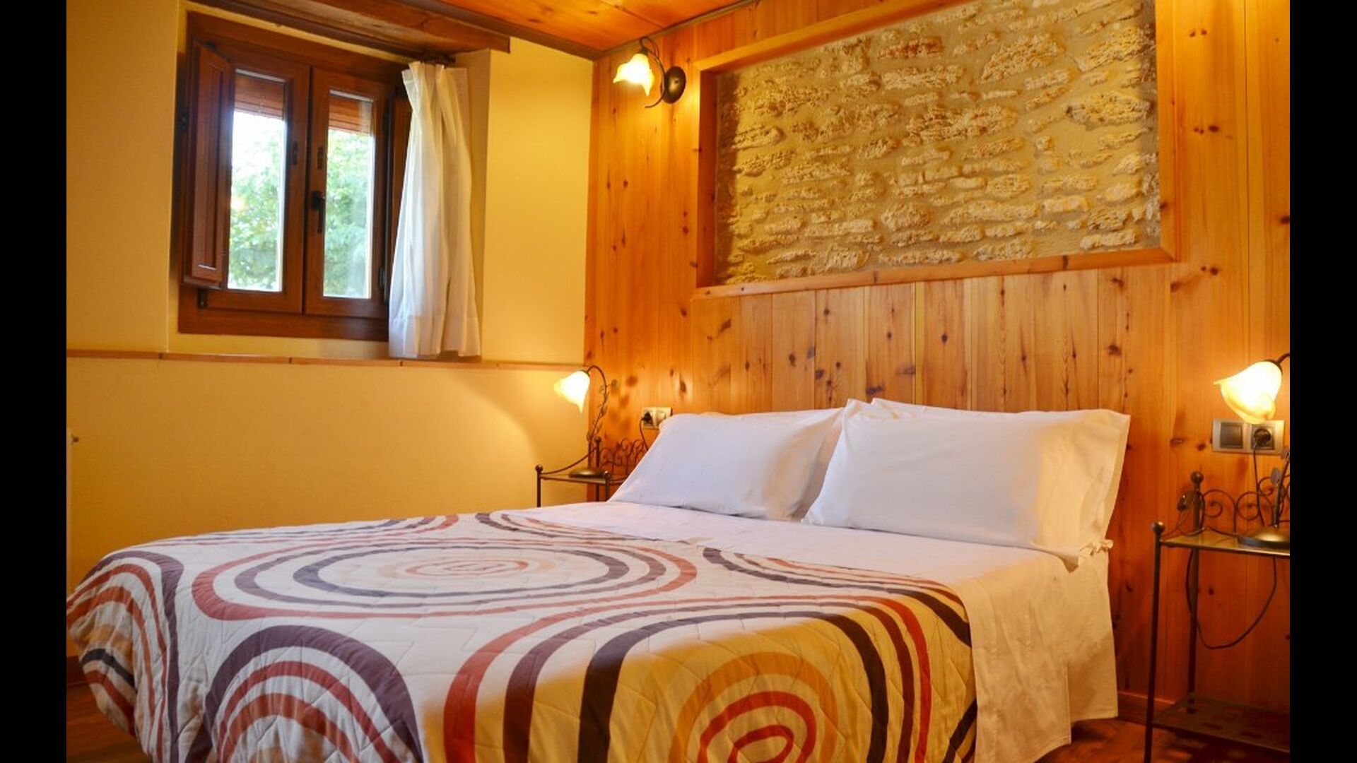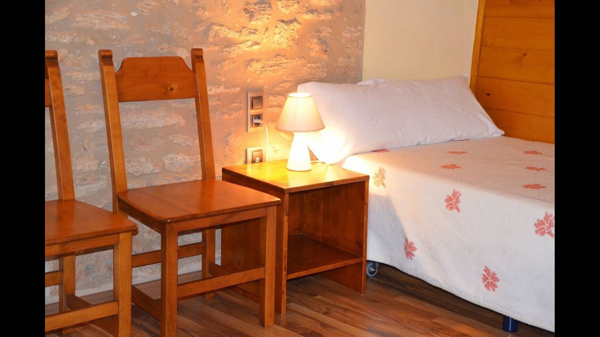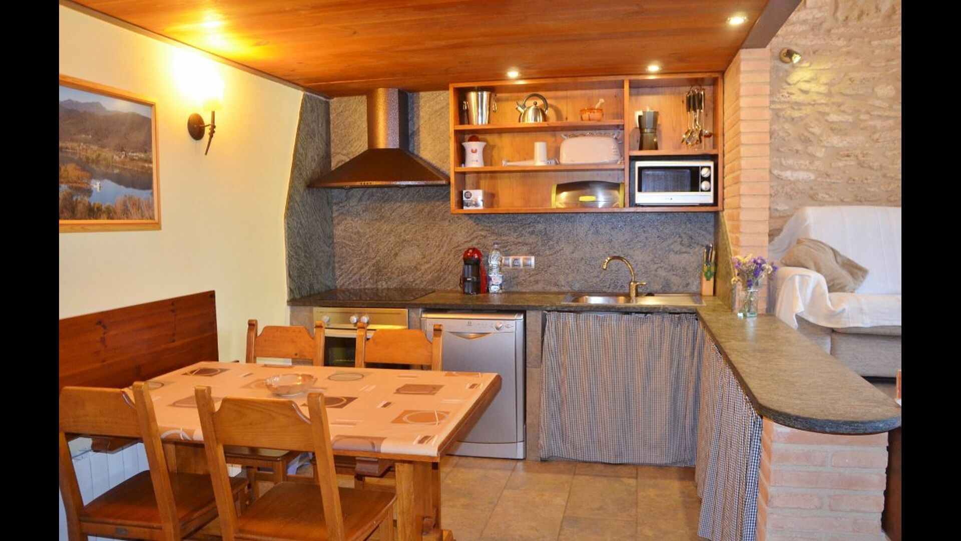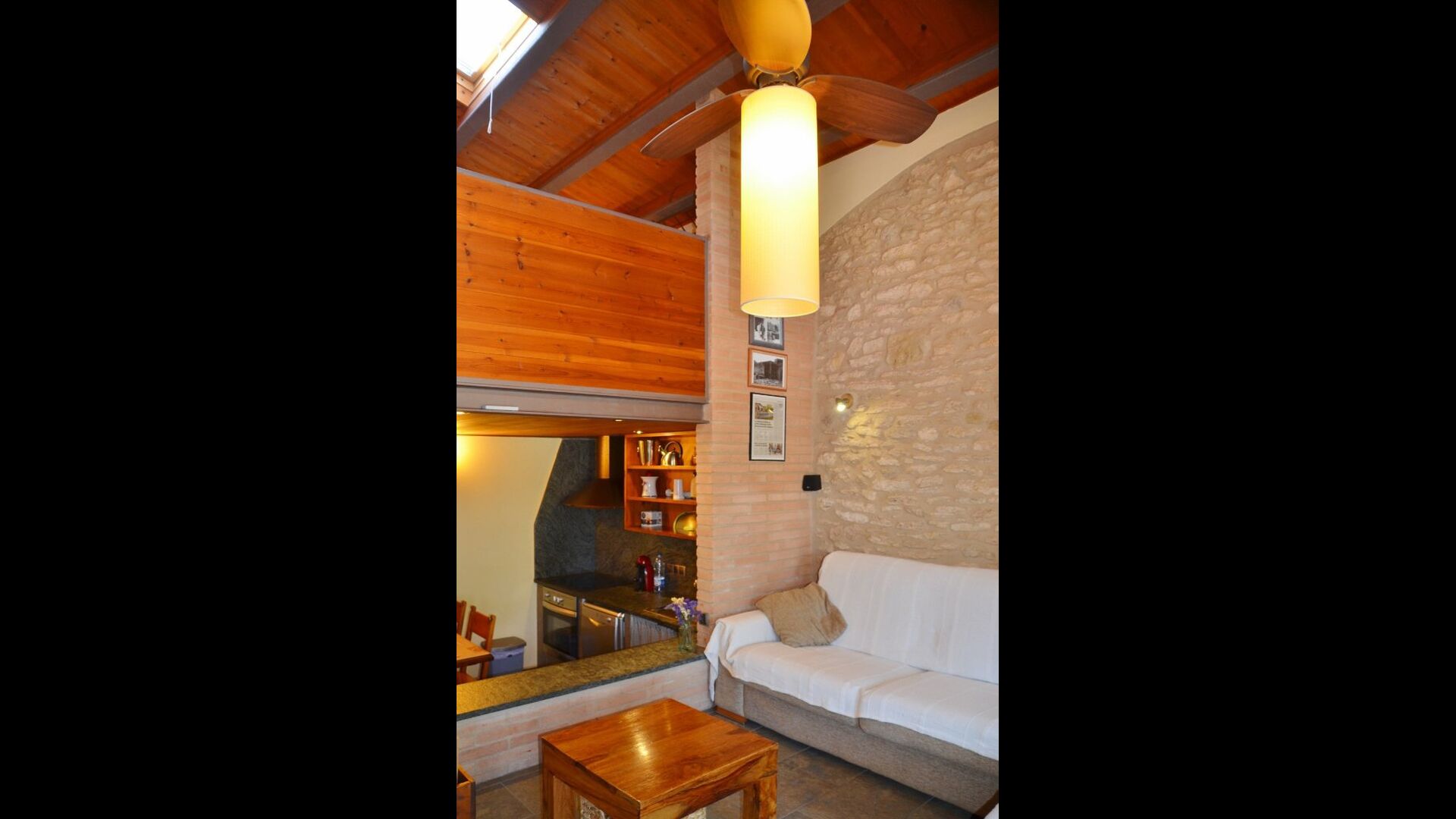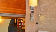 Cal de Banyoles has two floors. On the ground floor is, beside the lounge and kitchen area, a charming double bedroom (all beds are luxury 100% Latex) with en suite bathroom. The top floor has been restored as an open environment. It has a framed single room and one double room. The beds in the room can be set as either one double room or two single beds depending on your needs. On the top floor is also a bathroom.