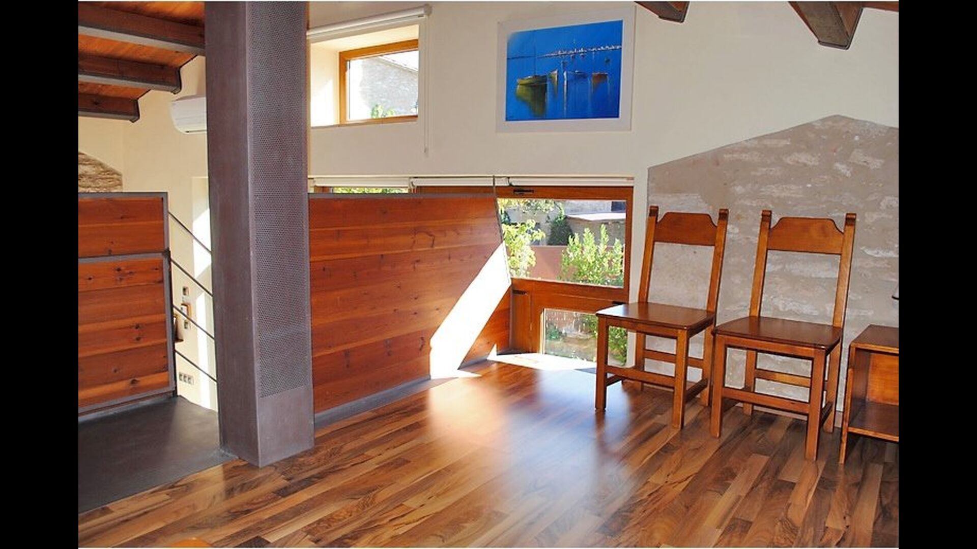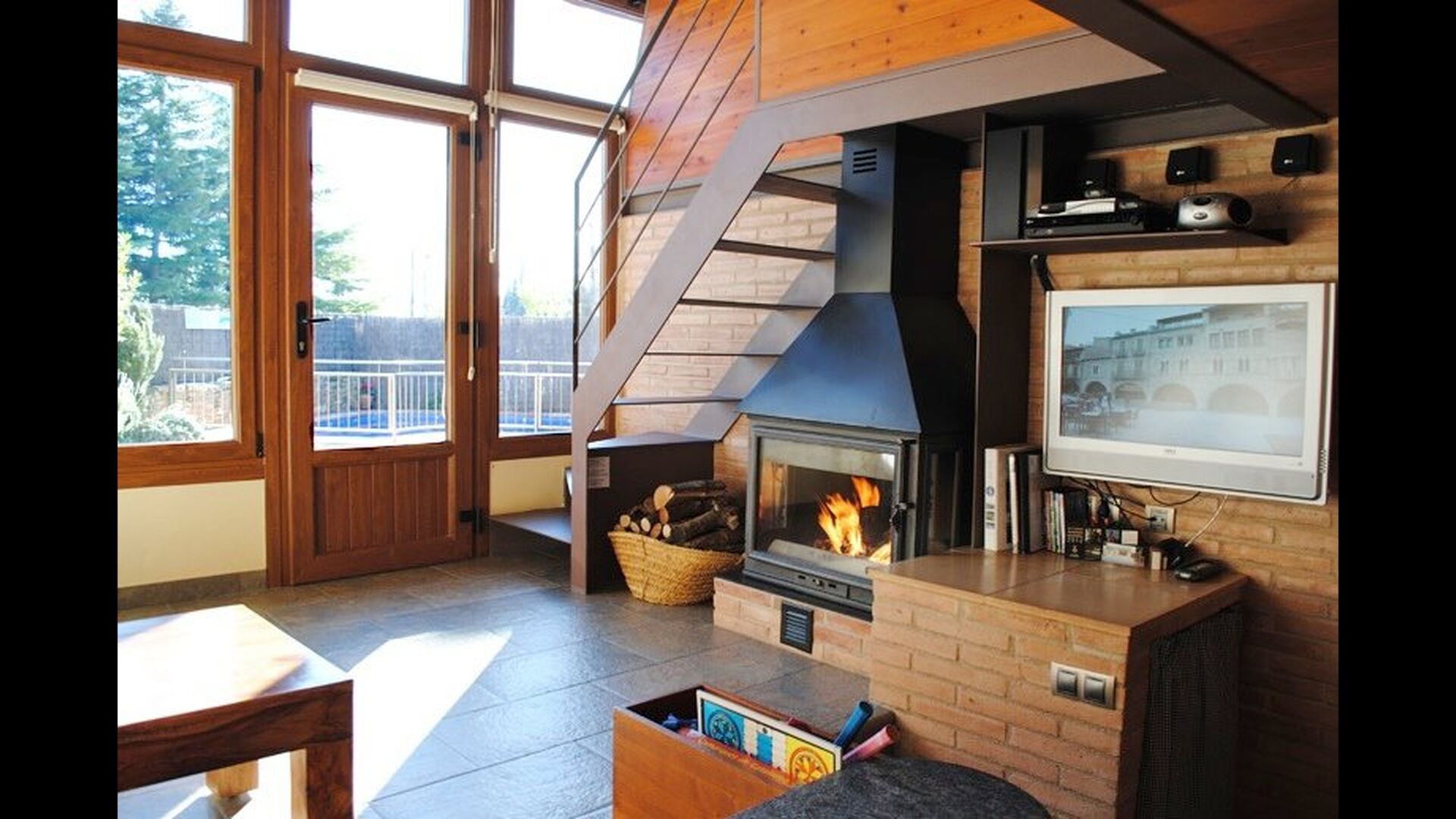The house itself has been restored in a modern – almost Nordic - way with open spaces, large windows and raw materials. It has an open common area with a great lounge area with beautiful high celling’s and stunning materials. The lounge area has satellite television, DVD with “home cinema”, a fireplace (for the coldest winter days), air-condition and there is WI-FI in the house. The kitchen is situated in connection with the lounge area and have all modern facilities.