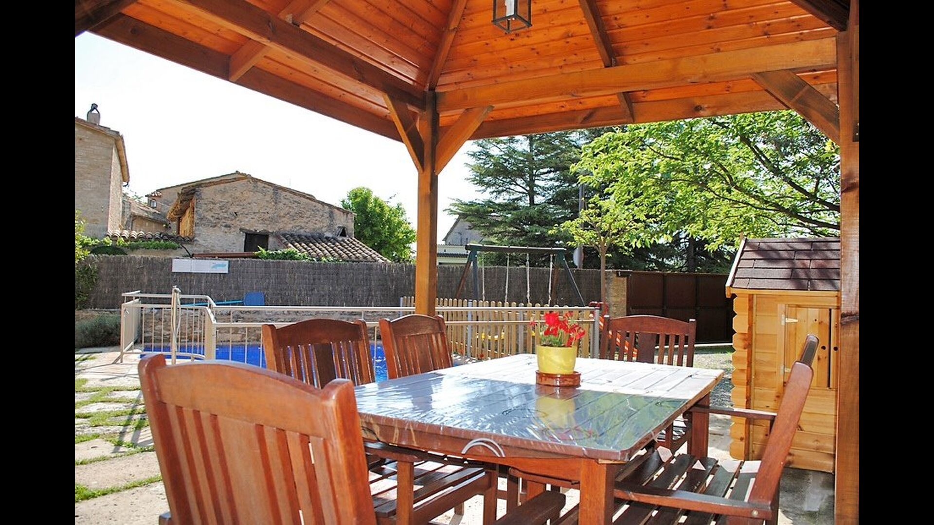 The private garden is small and cozy and is perfect for a family looking for a private outdoor space and great facilities. It has a small swimming pool with great sun beds, a small playground and a covered terrace area with a connected BBQ area. A perfect place to enjoy the long warm summer evenings or to search for a bit of shade on those warm summer days.