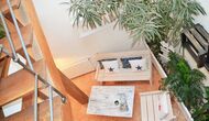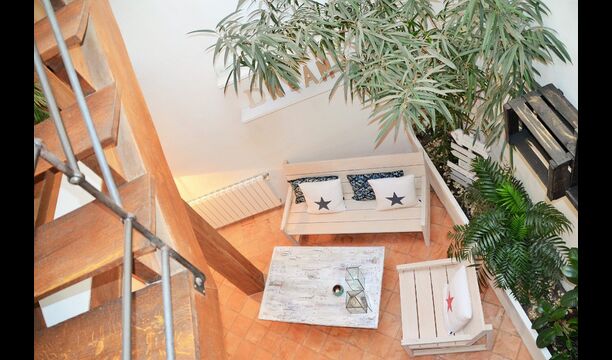 Au deuxième étage, il y a une chambre à coucher, un salon, une cuisine, une salle de bain et une salle à manger. Le salon est aménagé dans une ambiance très cosy et le propriétaire accorde une attention particulière à chaque détail. Le salon dispose d'un grand canapé ainsi que de deux chaises confortables, toutes orientées vers le téléviseur à écran plat et la cheminée. La cuisine a tout ce dont vous aurez besoin et probablement même plus. Ici, vous trouverez également un balcon avec vue sur la rue calme et le lieu de rencontre qui appartient à la maison.