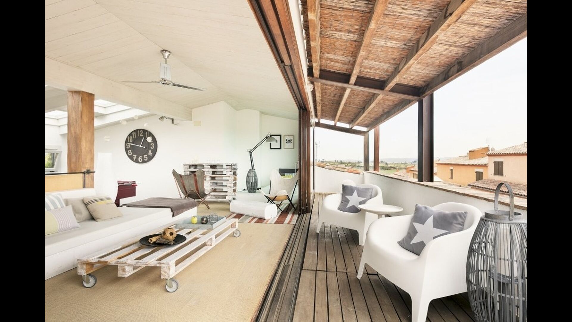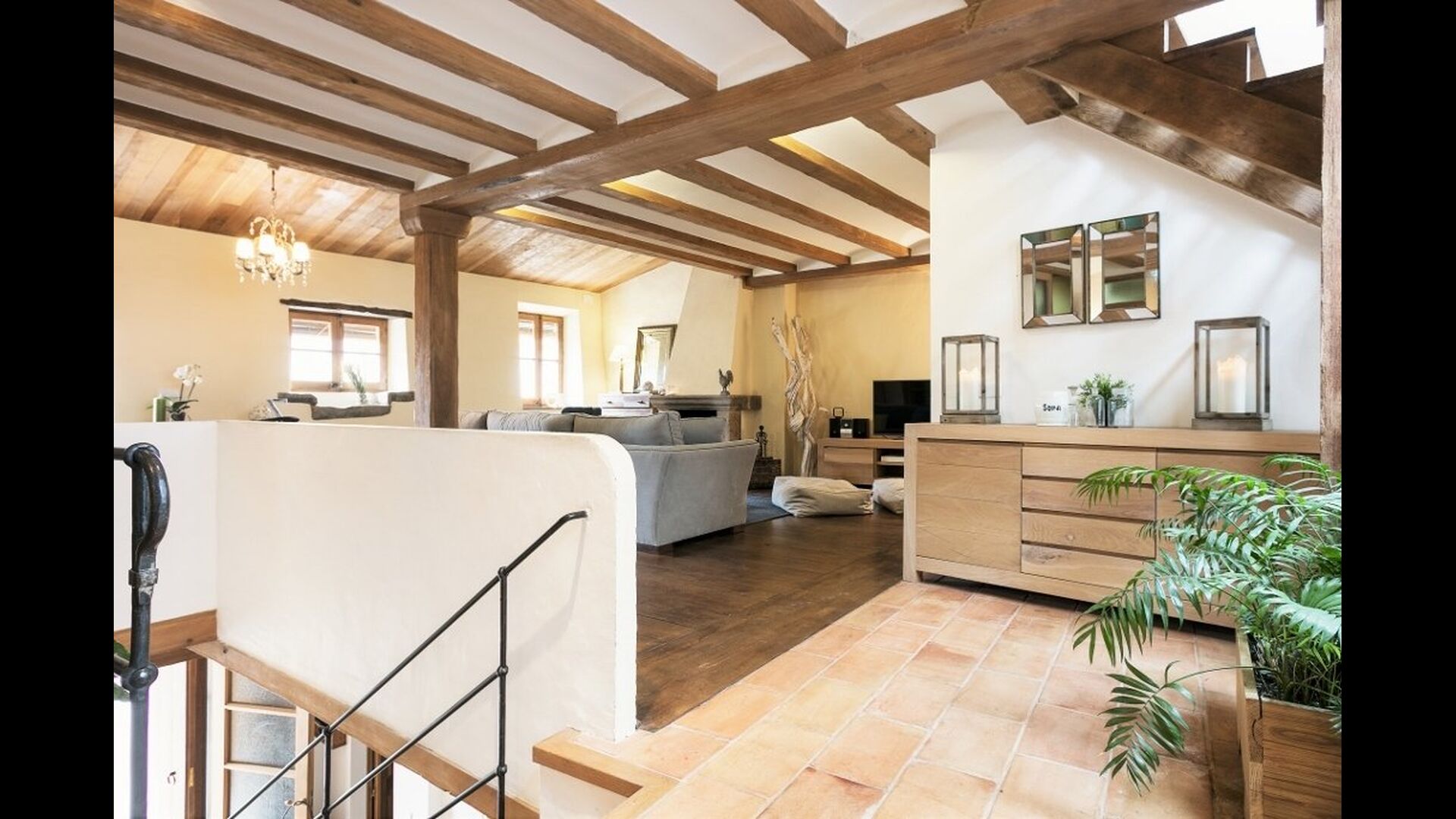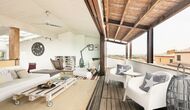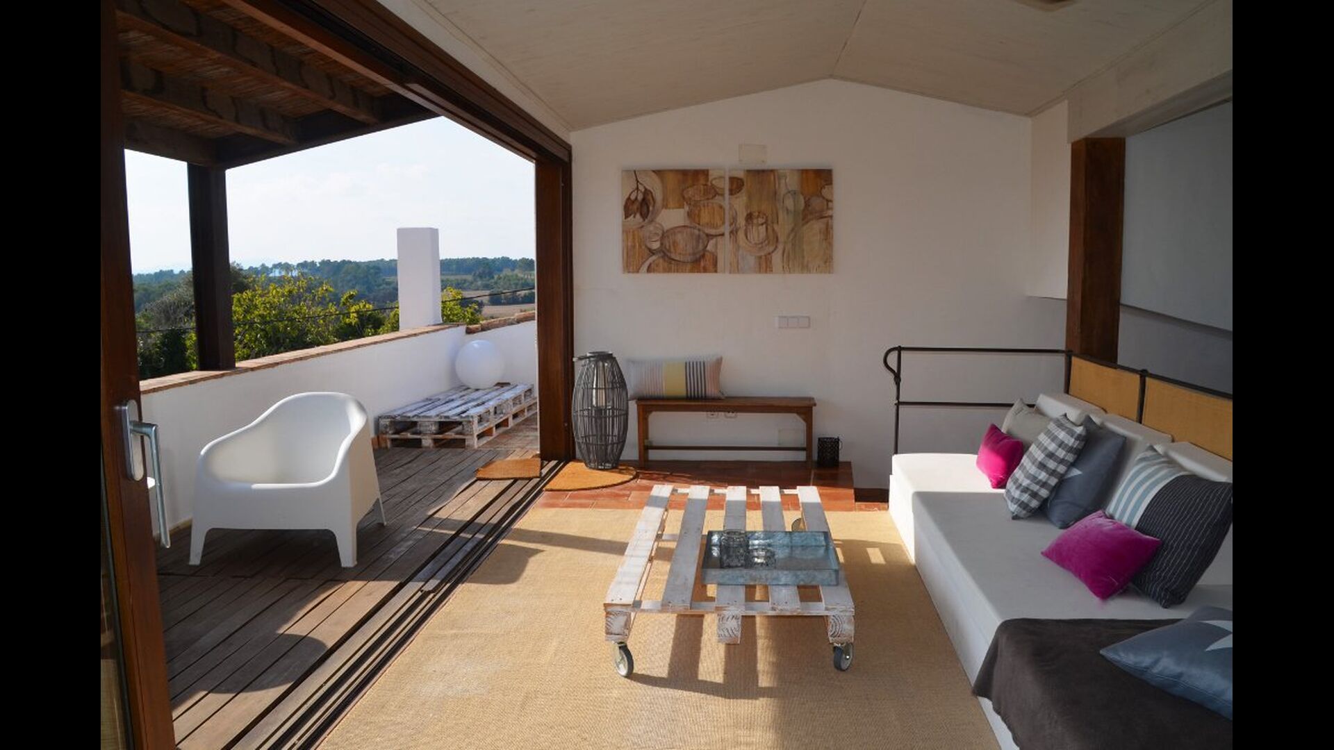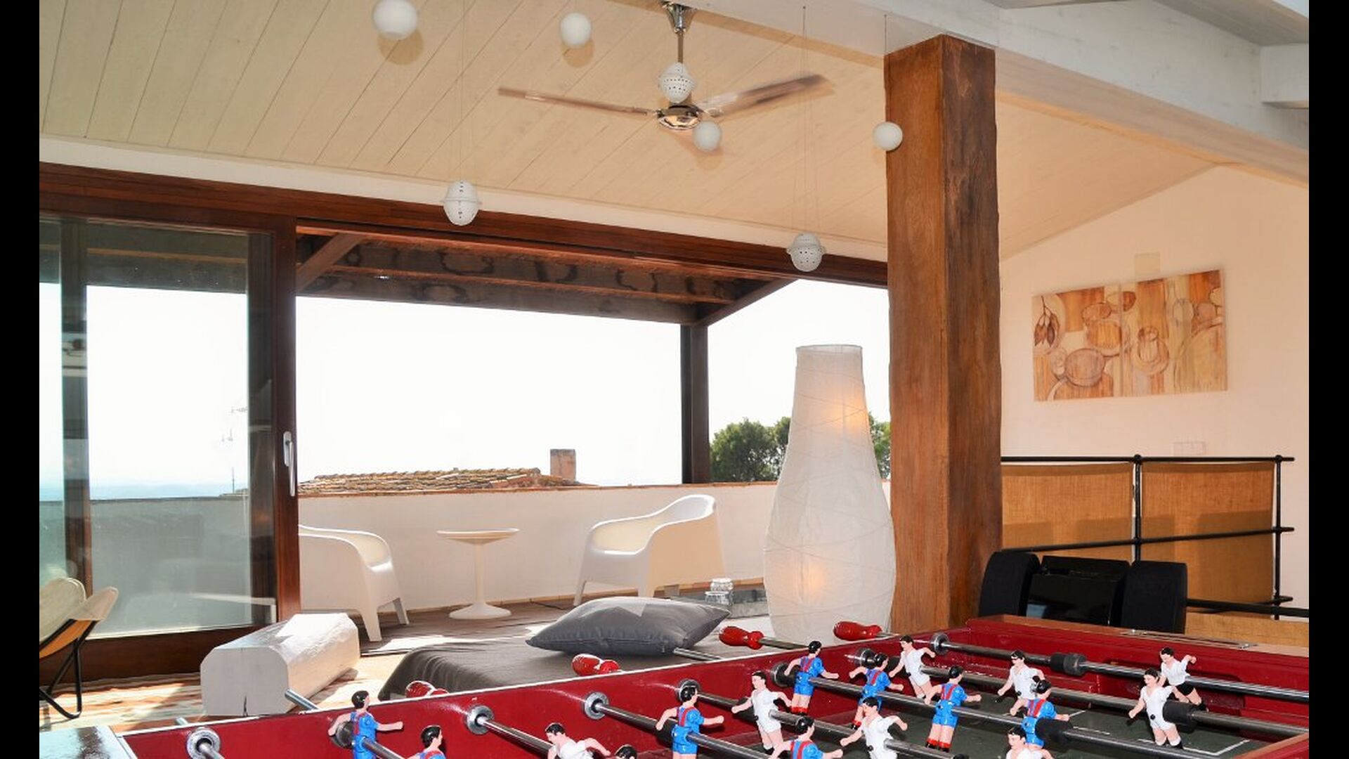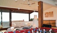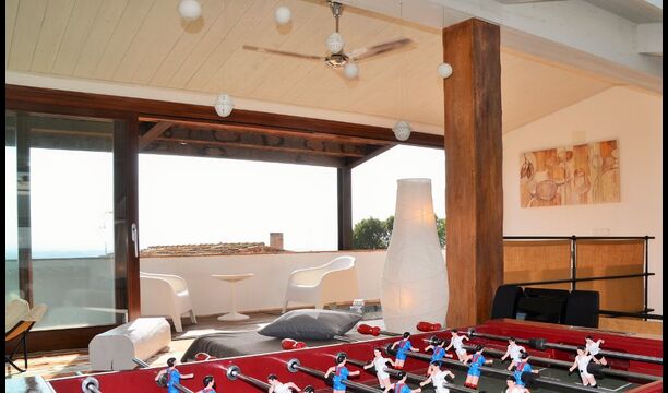 Le troisième étage ne fait qu'ajouter à la qualité d'excellente qualité. La zone ouverte est éclairée par la lumière du soleil à travers les fenêtres panoramiques à ouverture et fermeture. Les installations, telles que le baby-foot, le bar, la chaîne hi-fi, diverses chaises et bien sûr le grand canapé, contribuent à créer un environnement de détente idéal. Sans parler de la vue spectaculaire de la largeterrace en liaison avec la salle. Prenez un verre, remplissez-le de ce que vous voulez, allongez-vous sur le canapé et profitez du soleil catalan qui se couche au loin derrière les montagnes. Cette salle n'est pas différente des autres en termes de décoration; il est décoré de manière très à la mode et impressionnante. Le propriétaire de la maison est un professionnel de l'ameublement, organisant et décorant des marques reconnues - cela se reflète grandement dans la maison de bon goût.