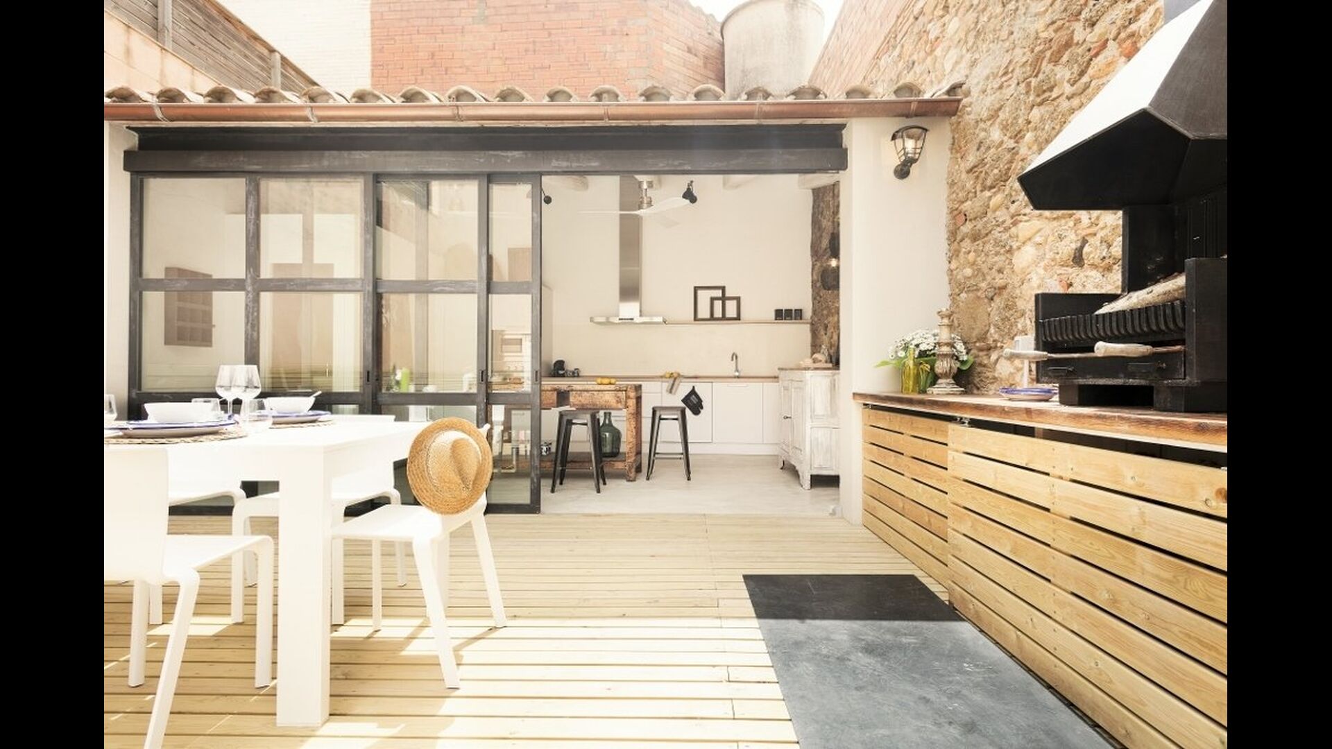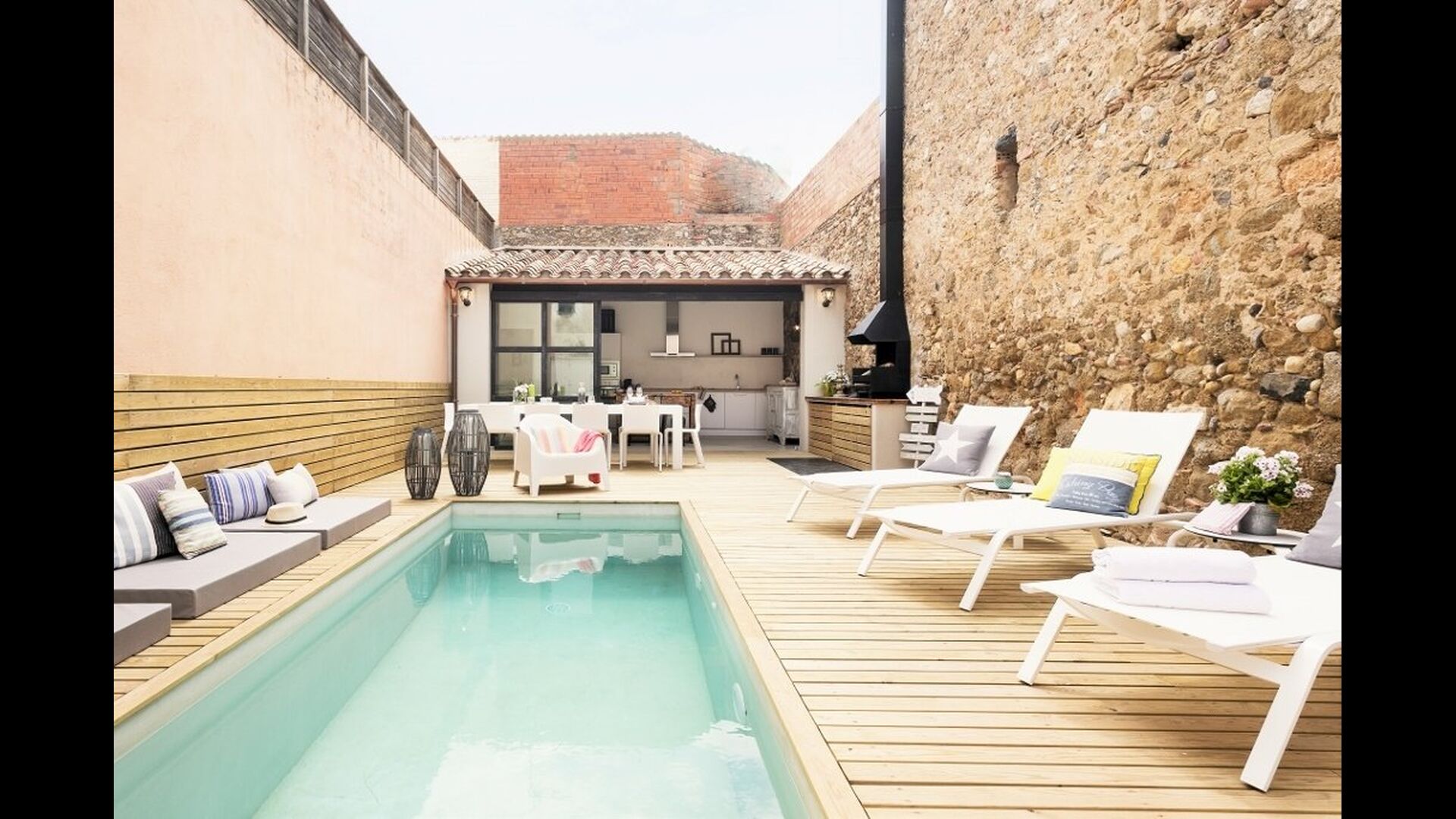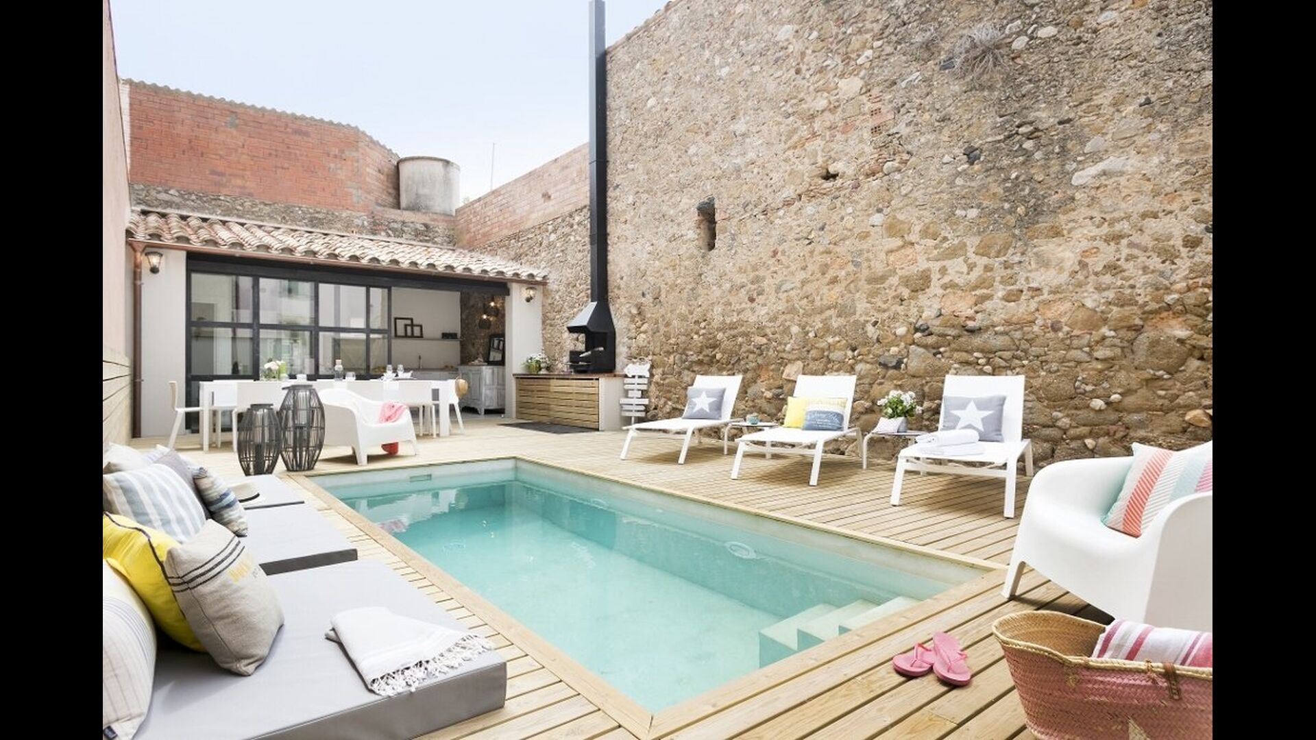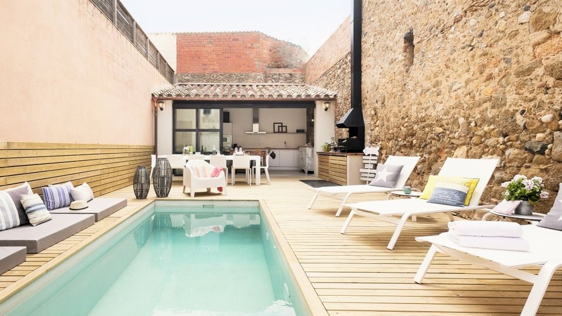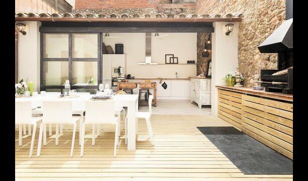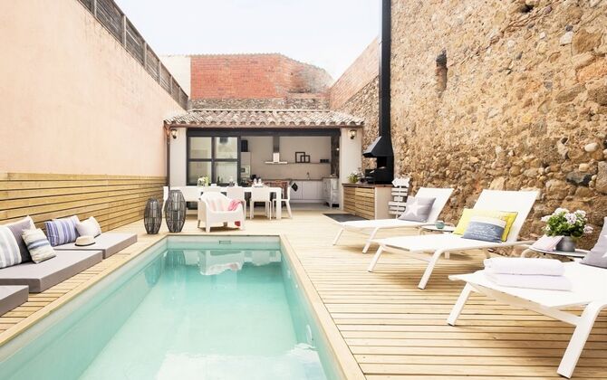 En vous promenant dans la rue du village catalan, vous remarquerez à peine Cal Mareña de la Costa Brava, qui se fond dans les maisons authentiques. Vous penserez probablement que rien de spécial dans cette maison, cependant, comme vous mettez votre main sur la poignée de la porte, cela va changer. L'intérieur de cette maison fait partie des plus belles maisons de vacances que nous ayons jamais vues.